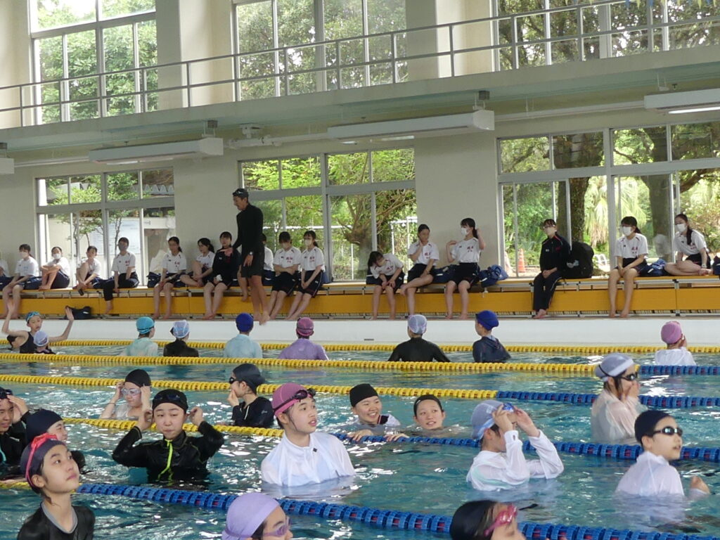 昨日は、水泳実習と体育大会練習が、ひなた宮崎総合運動公園で行われました。本日の投稿は女子生徒の様子になります。