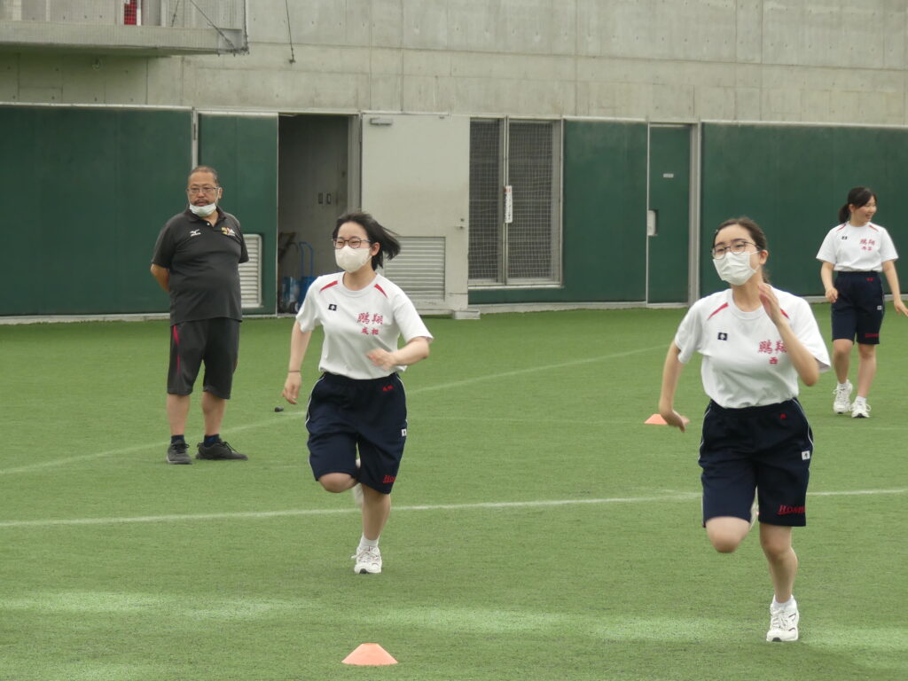 午後は、体育大会の練習をしました。ラジオ体操では、伸ばすところはしっかり伸ばすよう指示がありました。その後、50m走の計測をしました。少し恥ずかしそうにしながらも、真剣に走っていました。