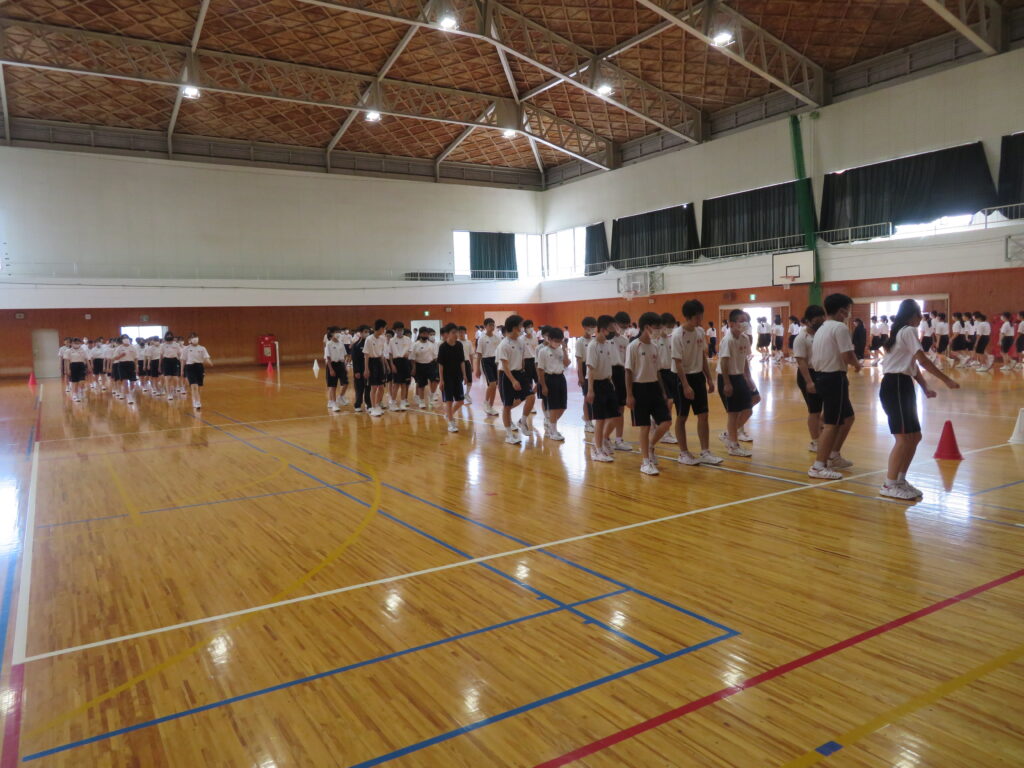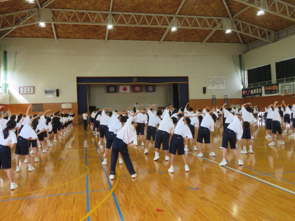 今回は、ラジオ体操、行進練習、ソーラン節の練習でした。