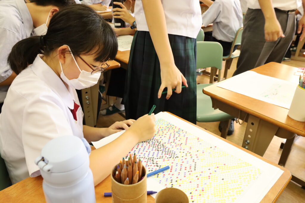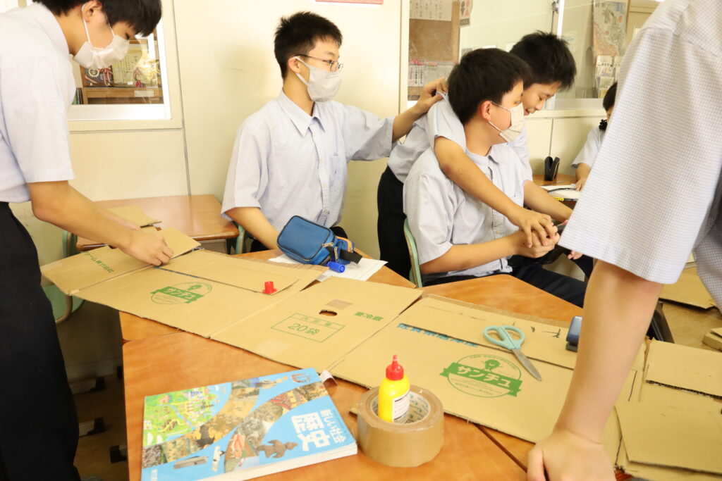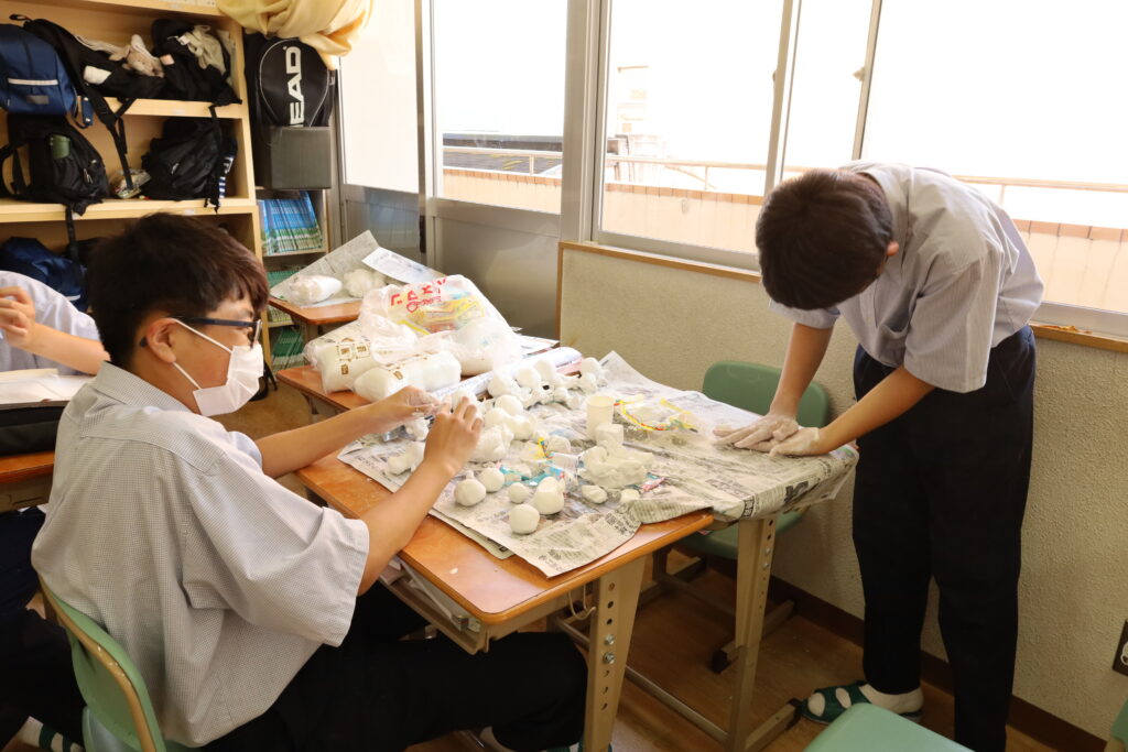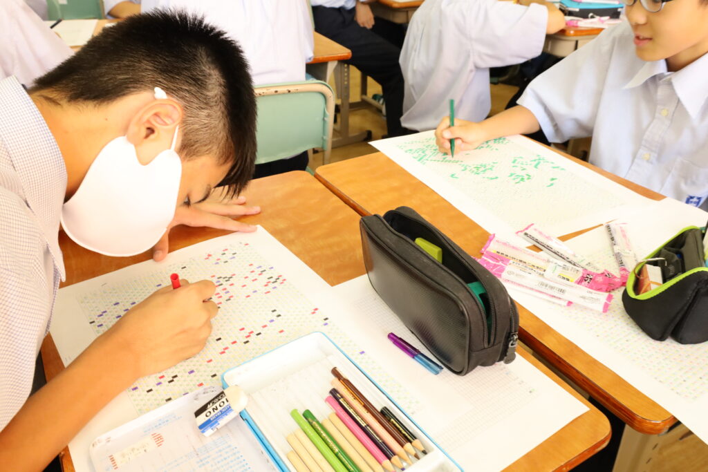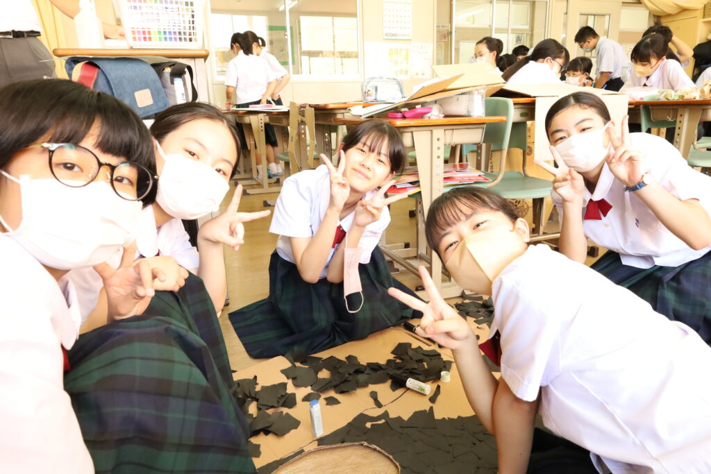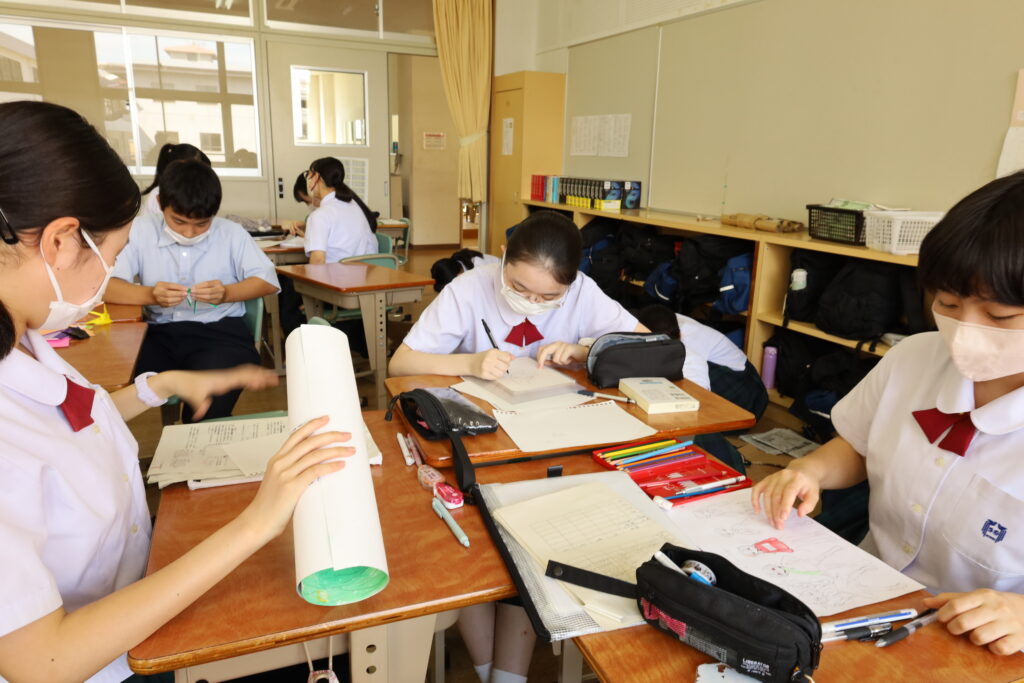 本日の午後は、明日4日と8日に実施される文化発表会の準備でした。今年のテーマは「楽(たのしめ)!」です。各教室で、クラス展示の作品を作成したり、NIEや水辺調査の発表の準備や練習ををしました。1年生は初めての文化発表会です。何ができるか楽しみですね!
