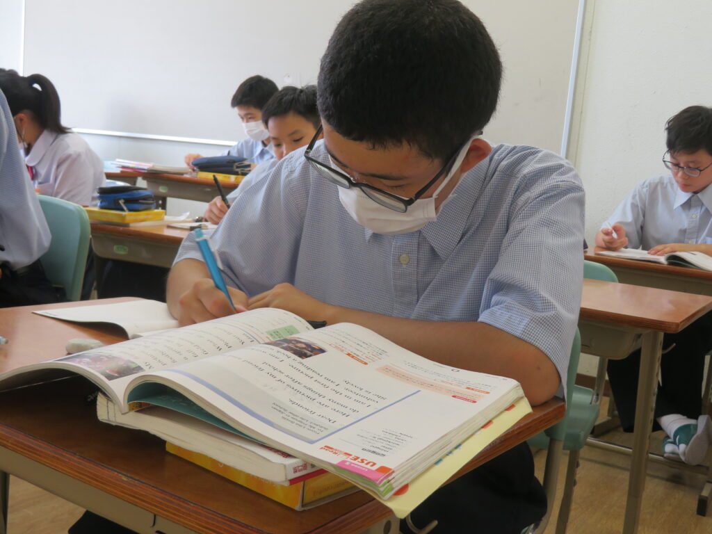 J1英語発展クラスでは、授業最初に毎回小テストを実施しています。さて、合格点をとることはできましたか?