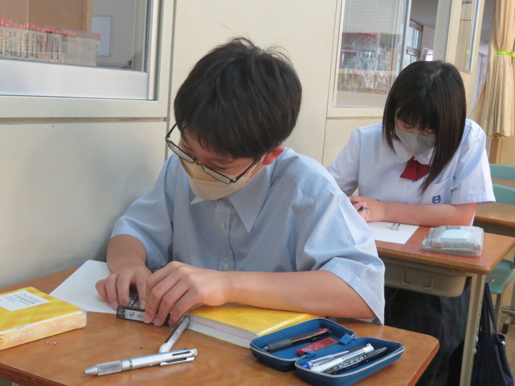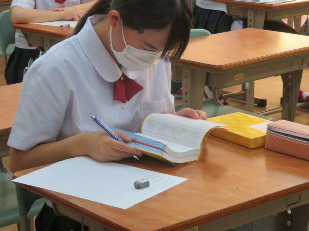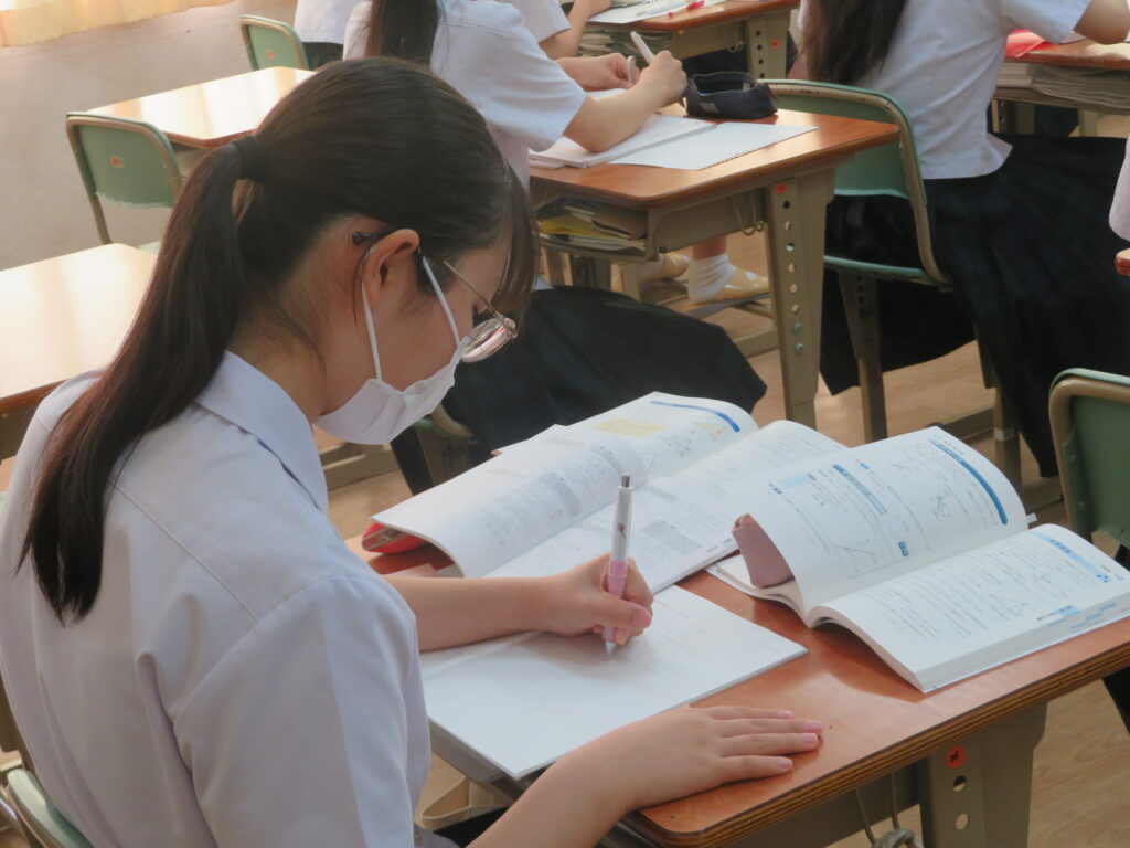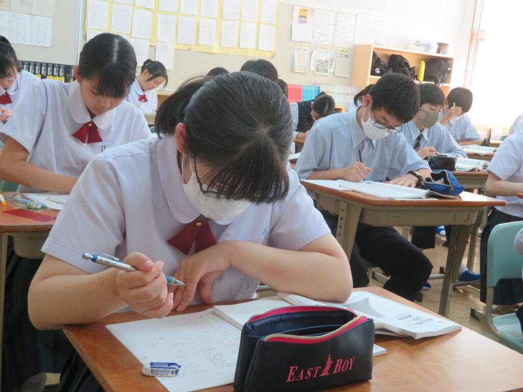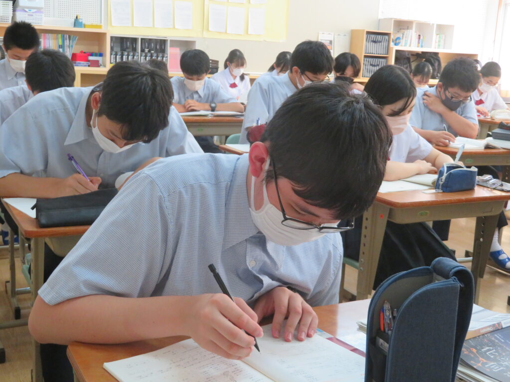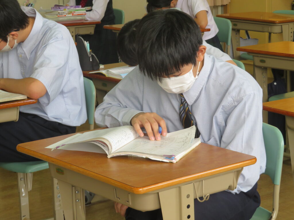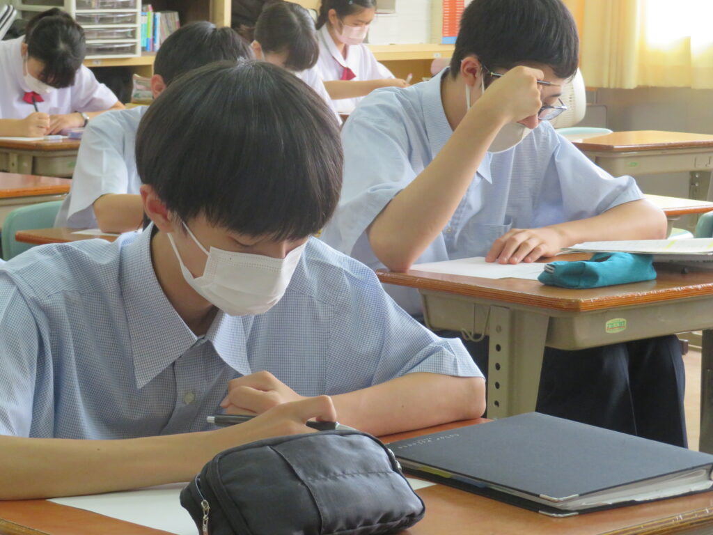 同じ時間、J3生の教室では、次の定期考査に向けて、黙々と自学に取り組む様子が見られました。日々の授業を大切に、目標を決めてこつこつと対策に努めましょう!
