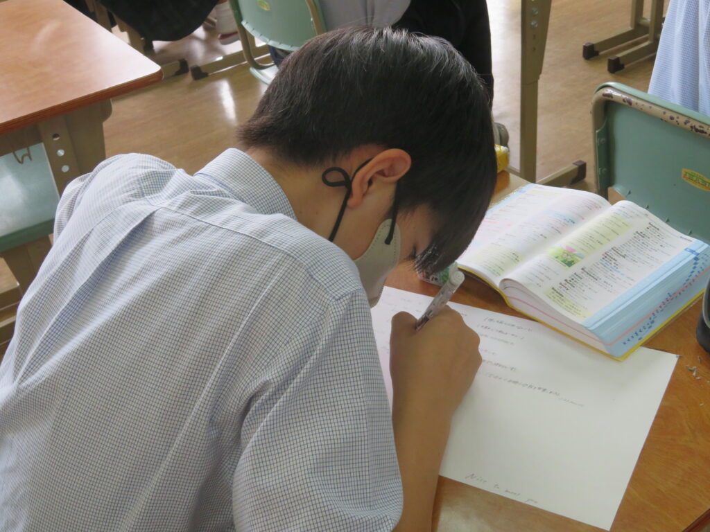 本日3,4時間目、J2生の教室では、10月に予定されている英語研修に向けて、自己紹介を作成していました。教科書や辞典を活用し、英文を考える姿が見られました。相手に自分の伝えたいことがしっかりと伝わるといいですね。
