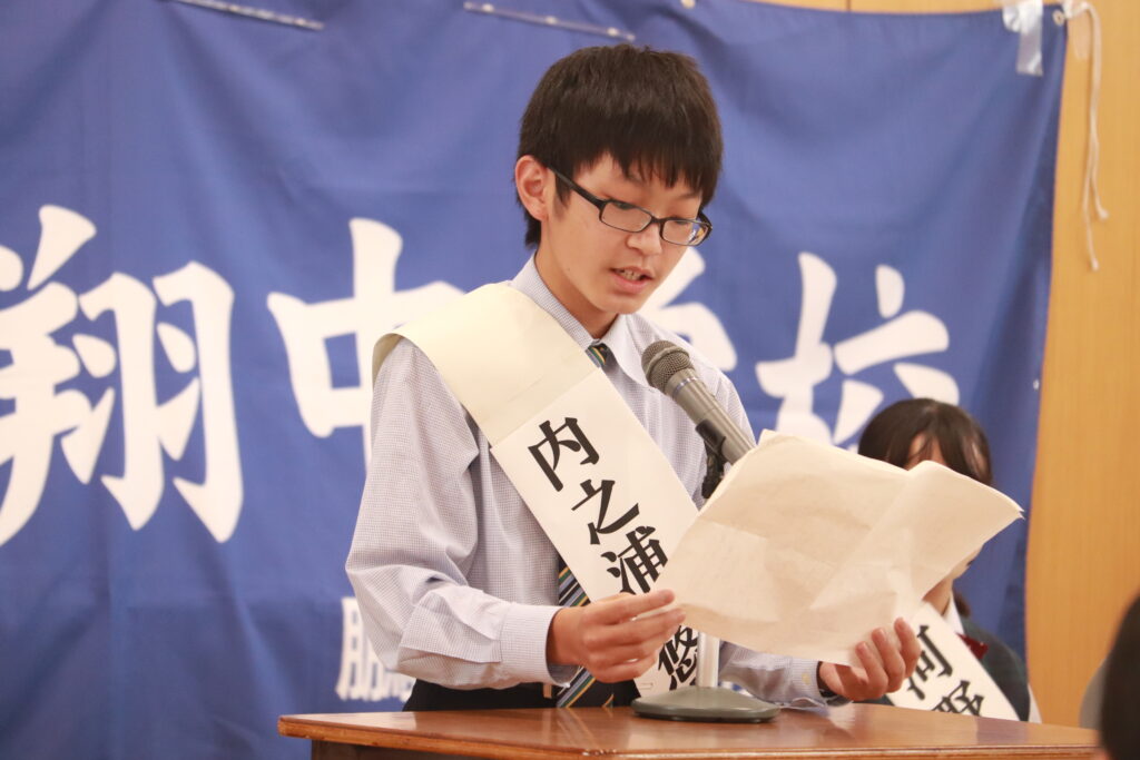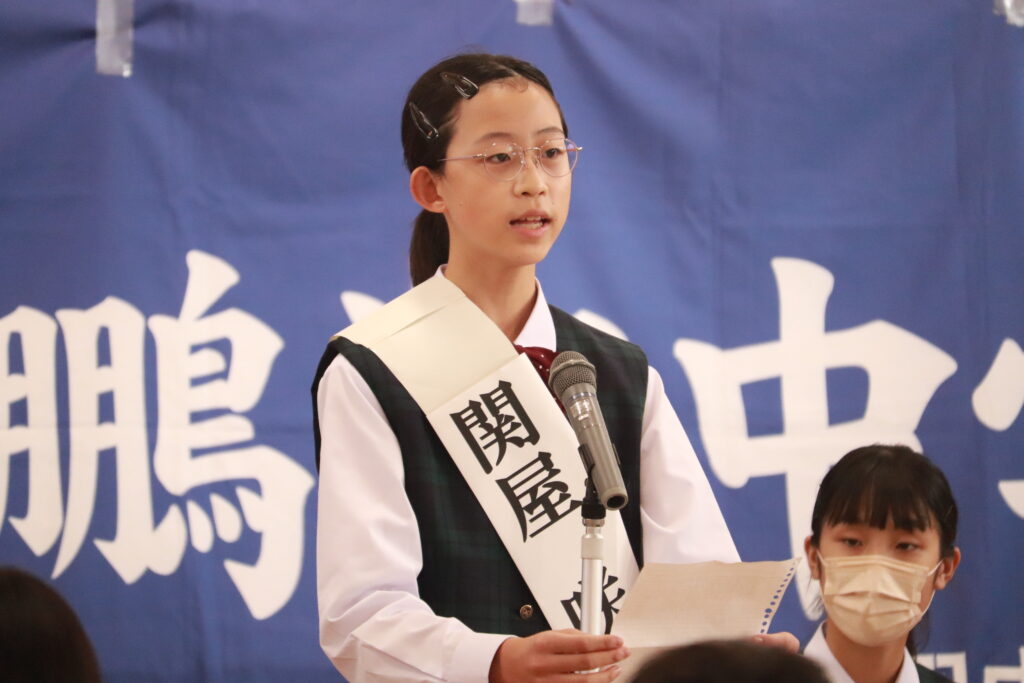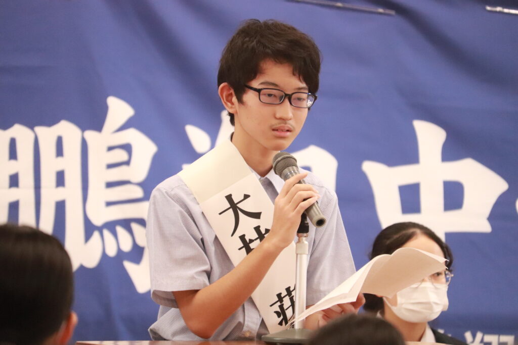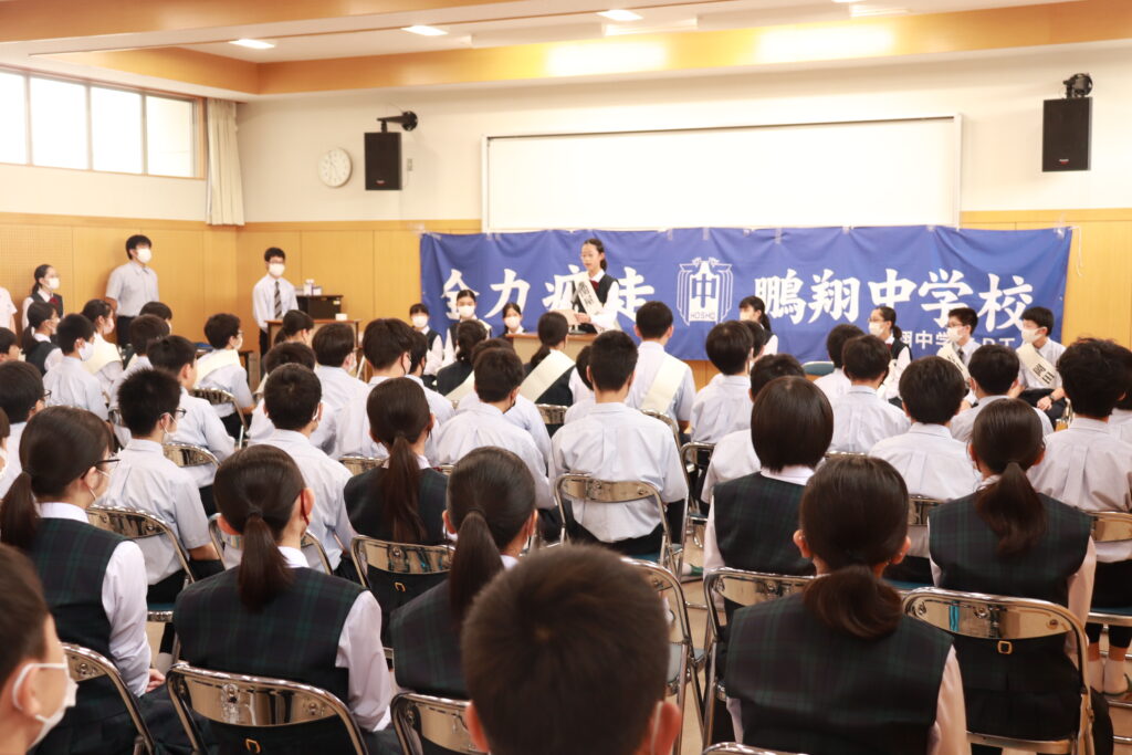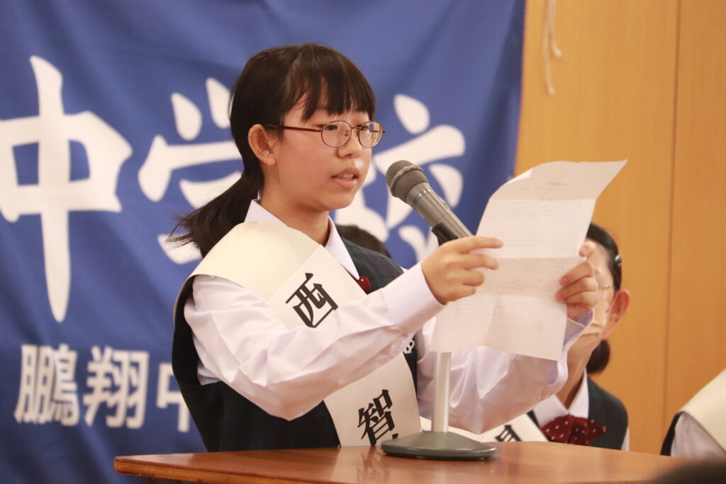 出馬した生徒の演説は、どれも希望に満ち溢れ鵬翔中学校をより良くしていくんだという熱い思いのこもったものでした。当選発表はまだされていませんが、誰が当選することになっても鵬翔中学校の明るい未来を作ってくれるのではないかなと期待感でいっぱいです。