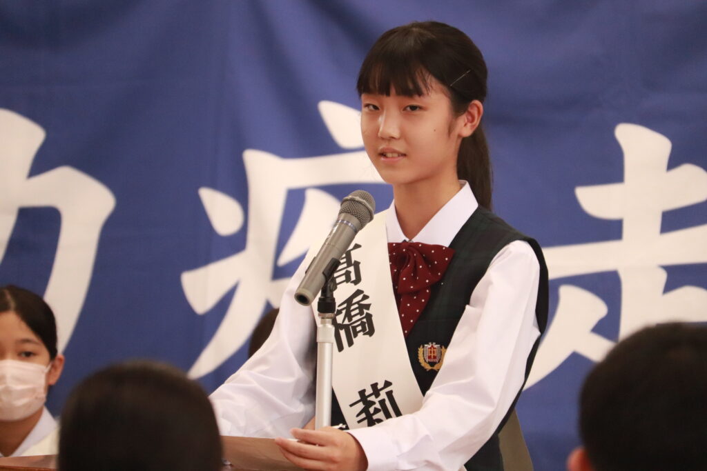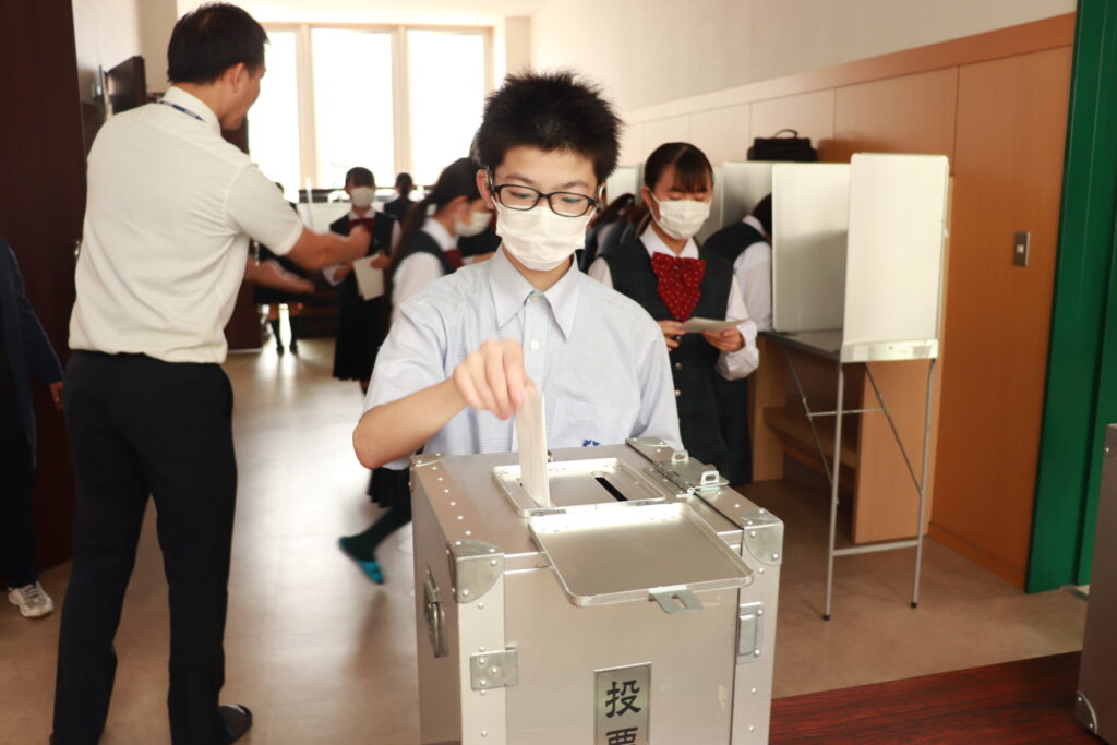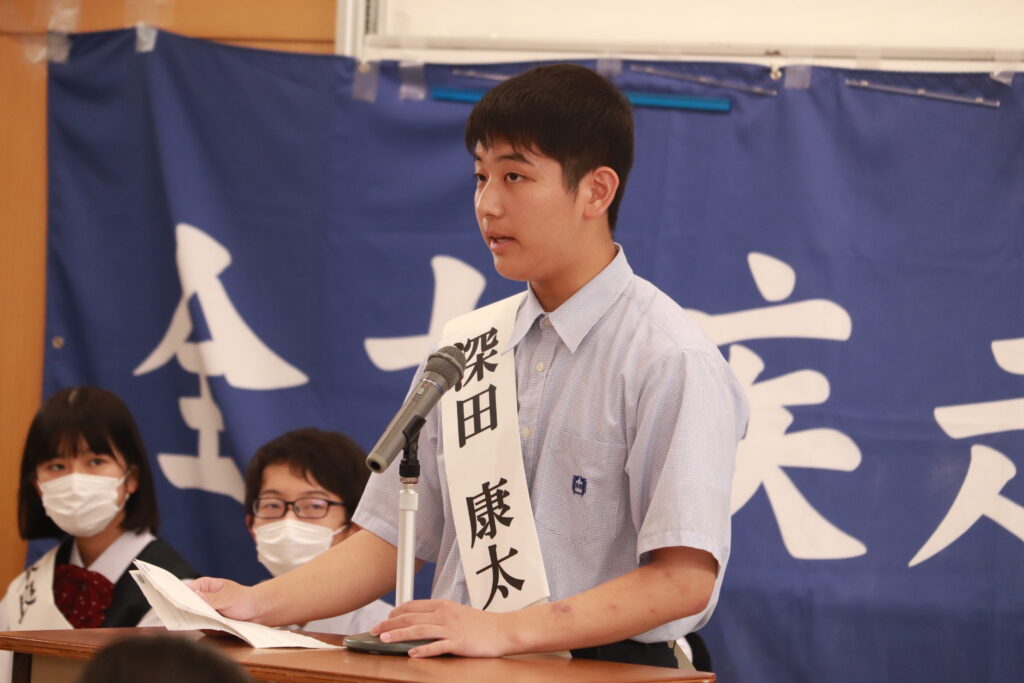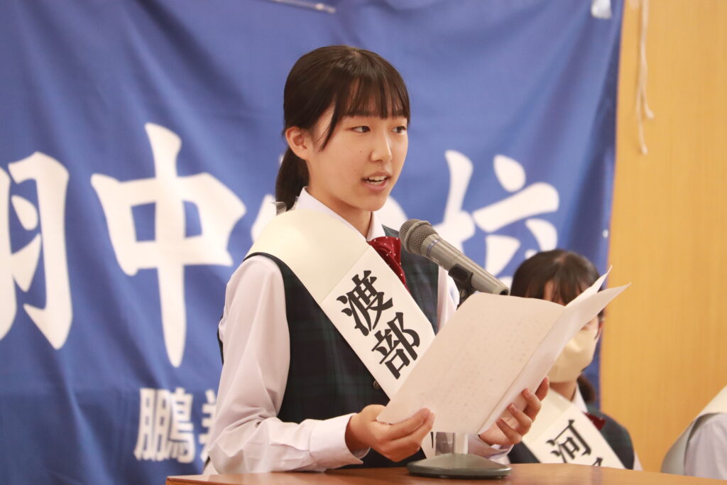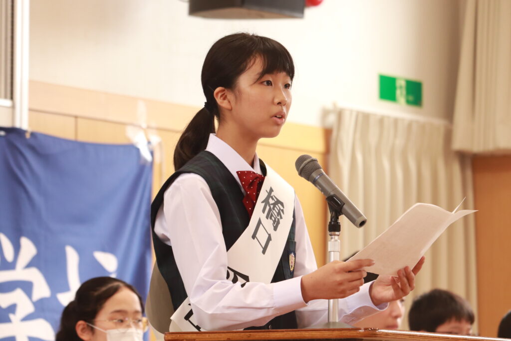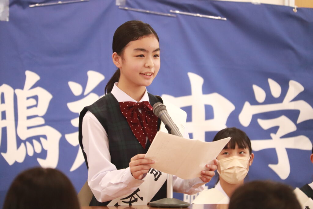 出馬した生徒の演説は、どれも希望に満ち溢れ鵬翔中学校をより良くしていくんだという熱い思いのこもったものでした。当選発表はまだされていませんが、誰が当選することになっても鵬翔中学校の明るい未来を作ってくれるのではないかなと期待感でいっぱいです。