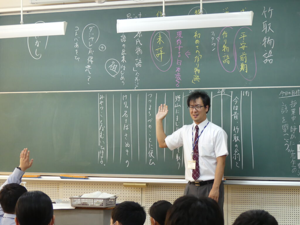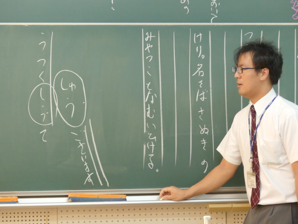 今日の3限目の時間は、J1で国語の研究授業が行われました。内容は竹取物語です。