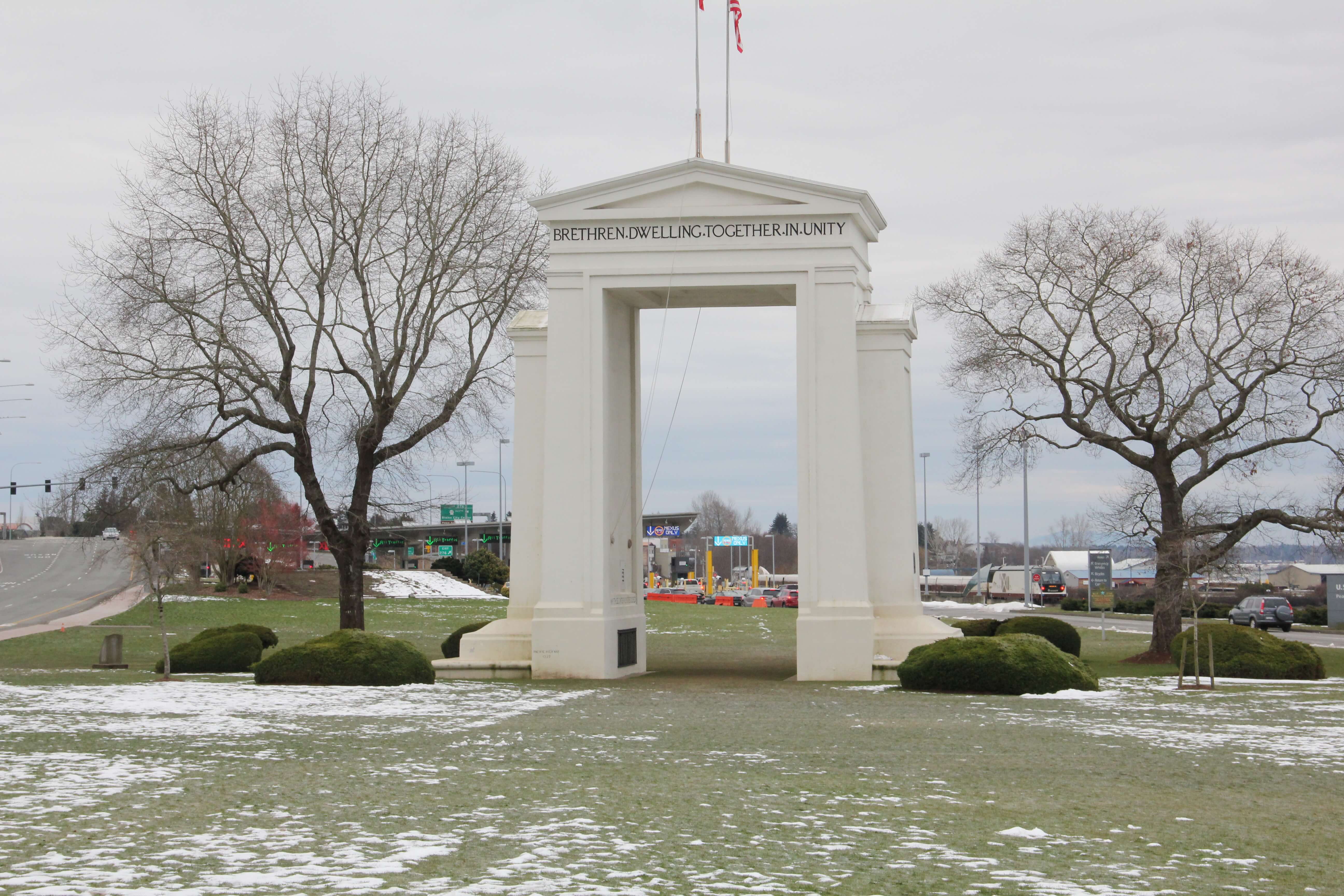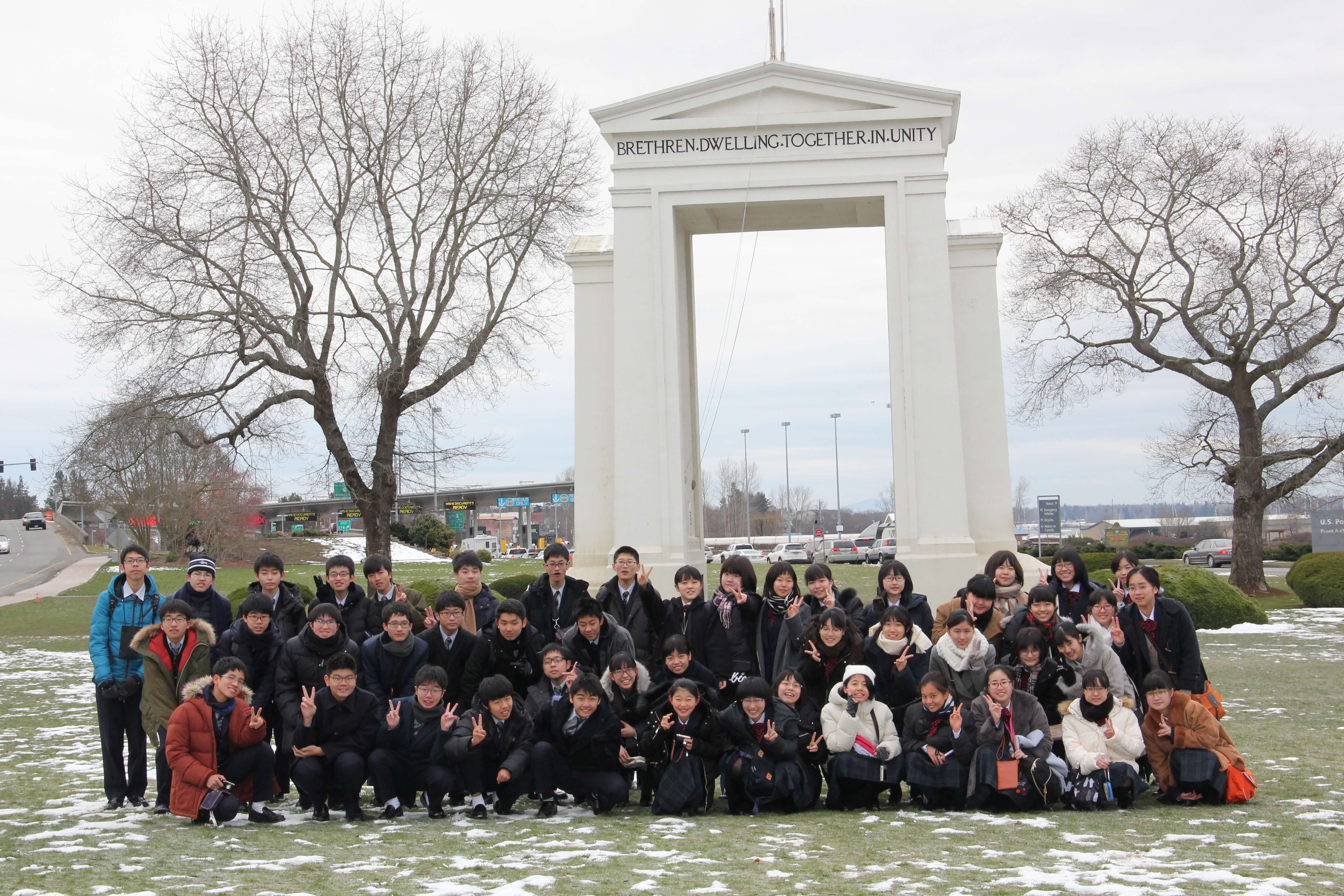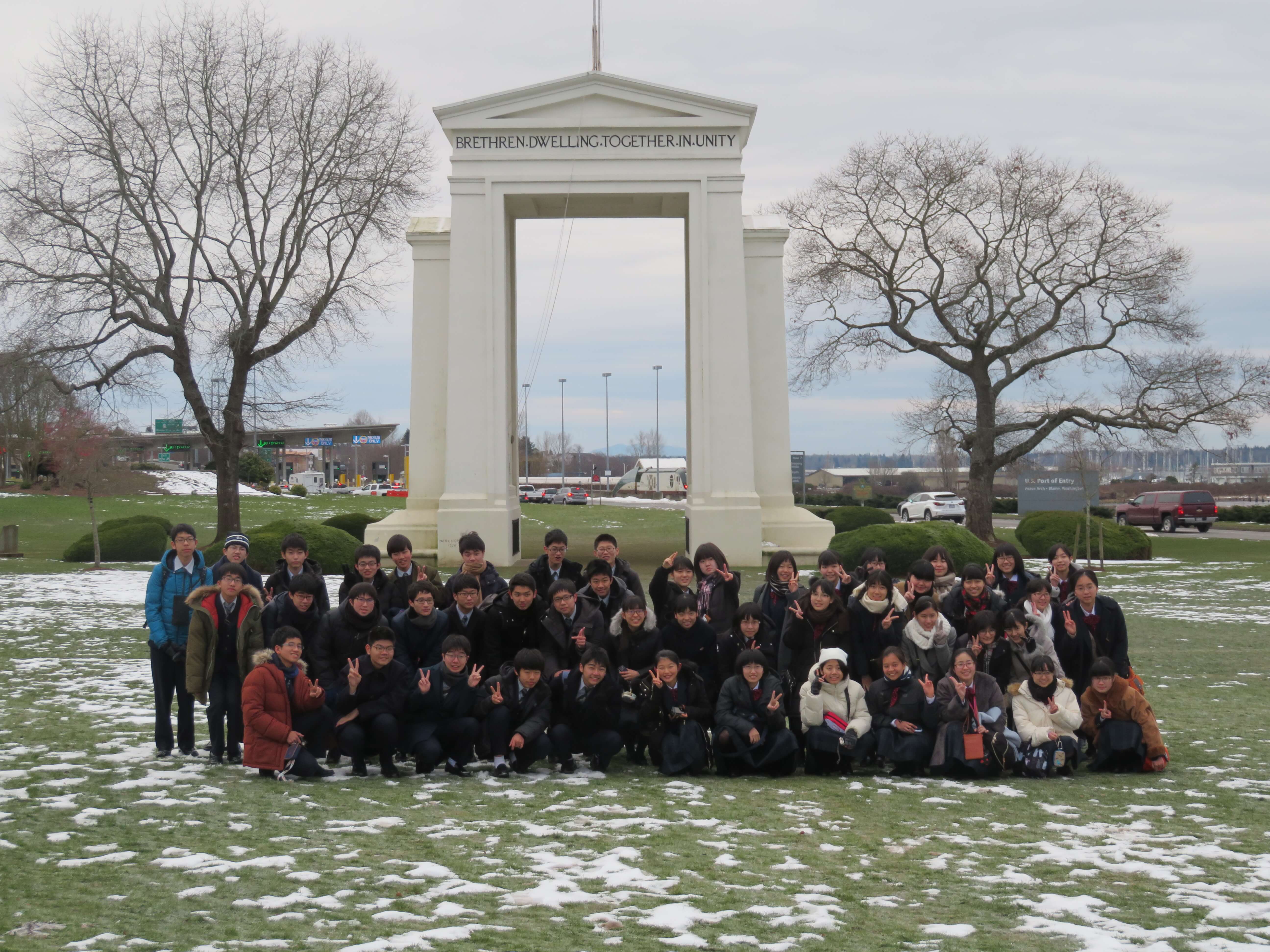 2019.2.19 J3修学旅行「ピースアーチ」国境線を歩きました。 は