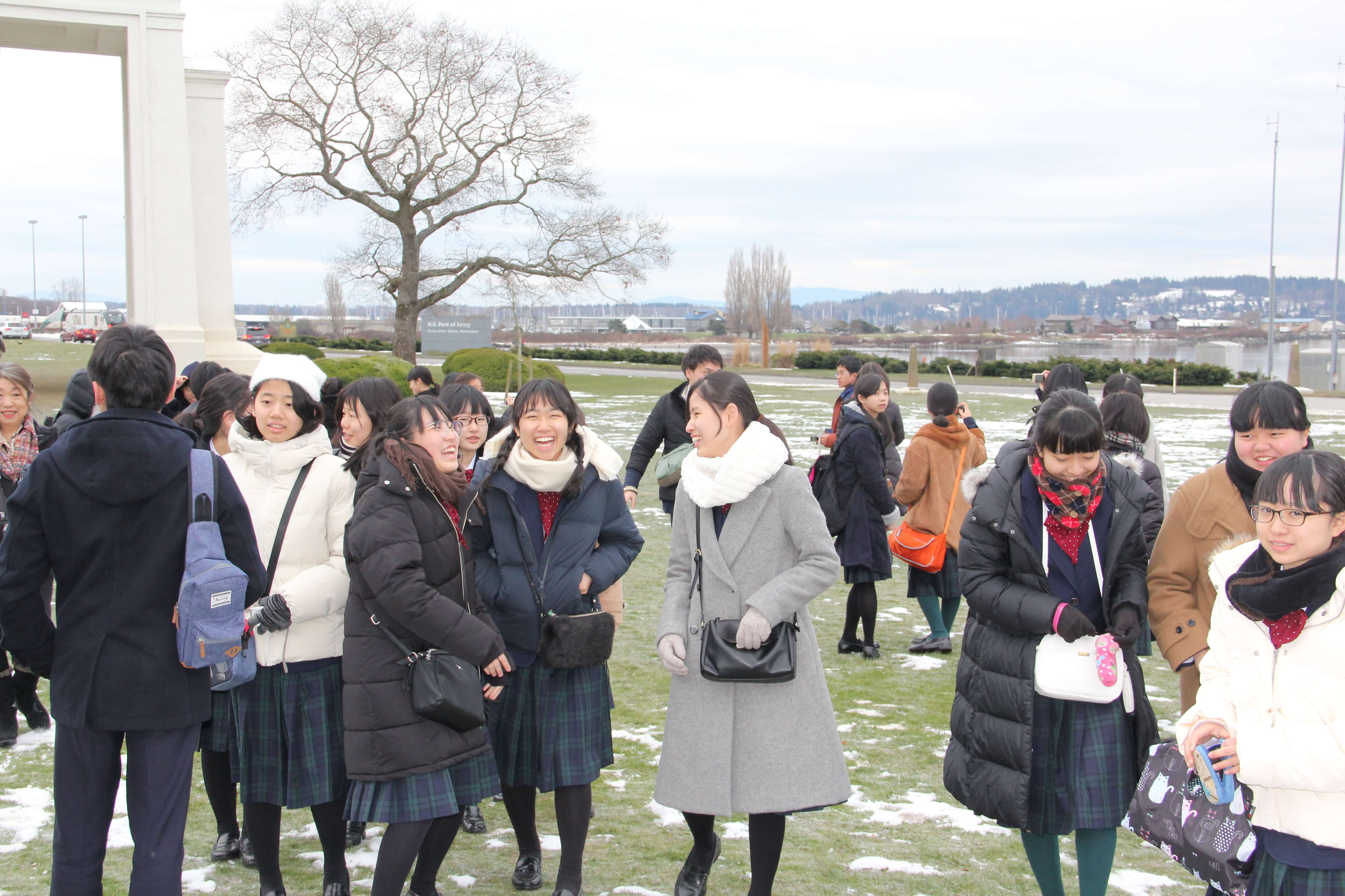 2019.2.19 J3修学旅行「ピースアーチ」国境線を歩きました。