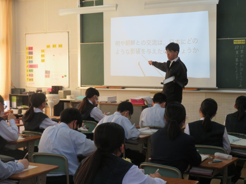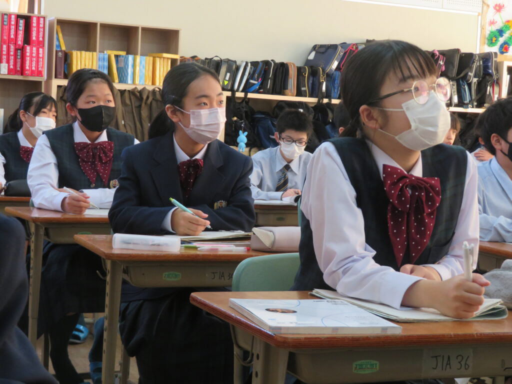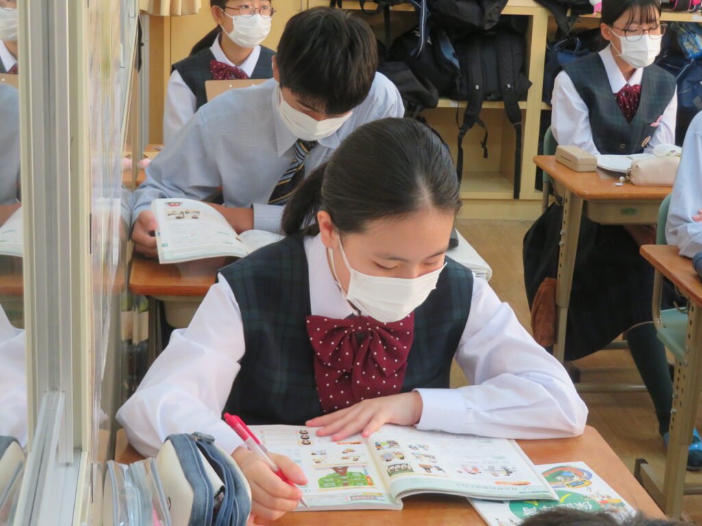 J1-Aは、社会(地理的分野)。J1-Bは、保健体育。J3は、英語の授業です。