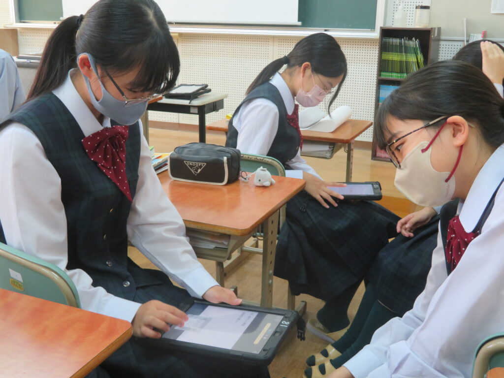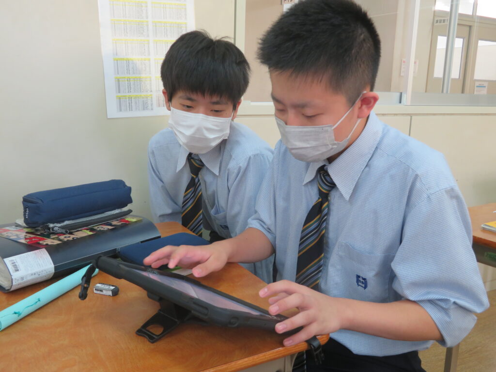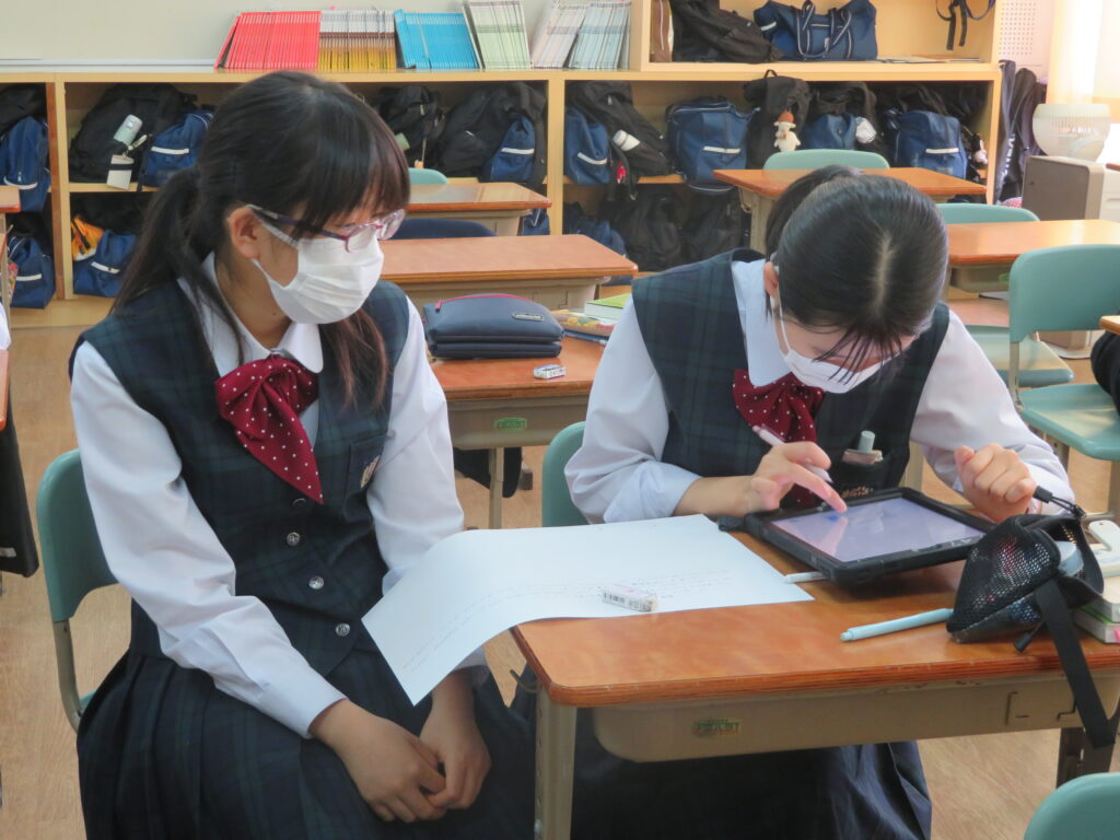 本日4時間目、J3の英語では、来週行うディベートに向けて準備を進めました。初めて、英語での討論に挑むため、グループで話し合い、辞書や今までに学んだことを活用する姿が見られました。本番が楽しみです!