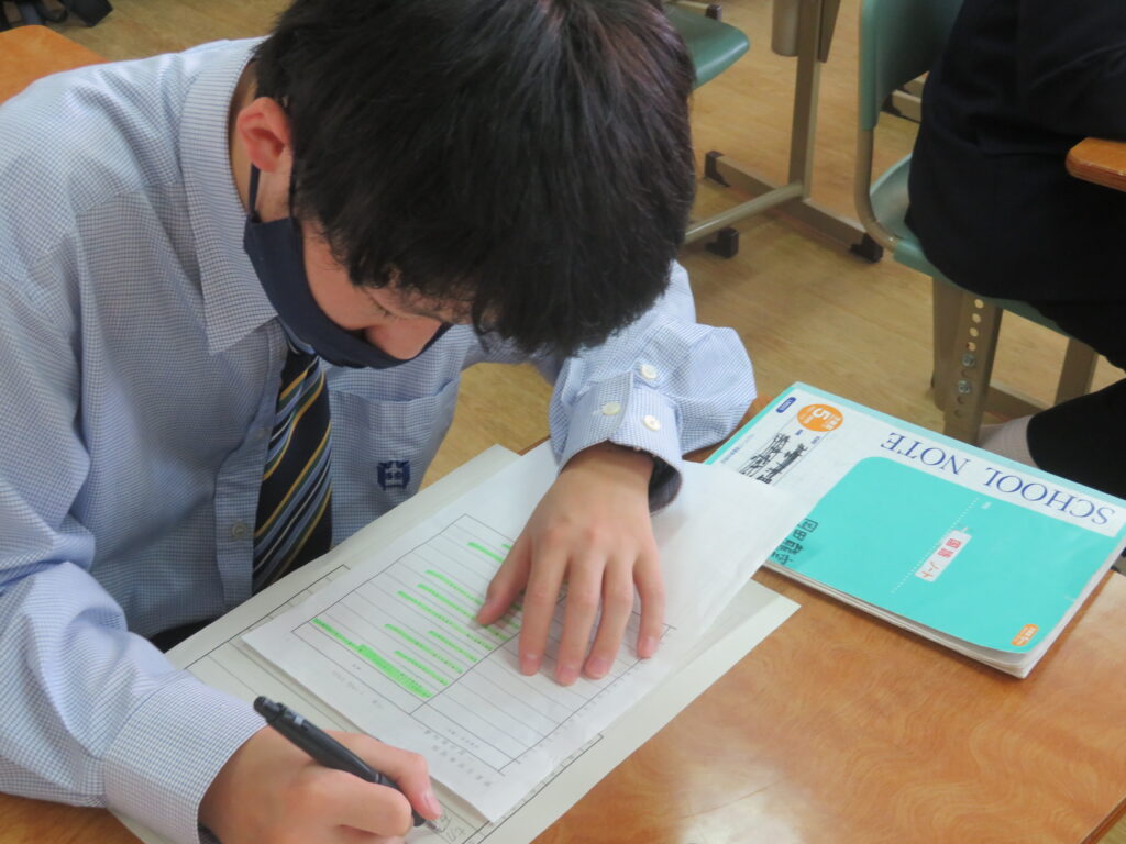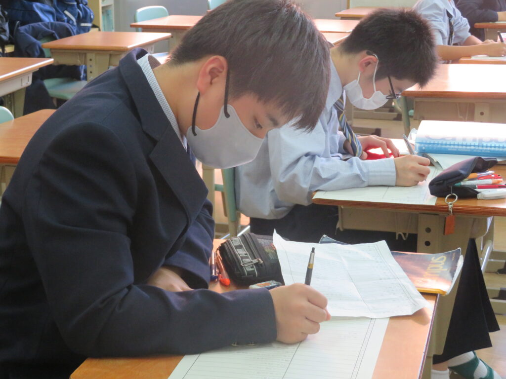 また、7時間目、J1の国語の時間では、漢文を読む生徒たちの姿が見られました。返却された定期テストの結果に一喜一憂せず、次を見据えて学習に取り組む様子が感じられます。