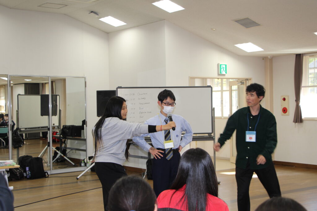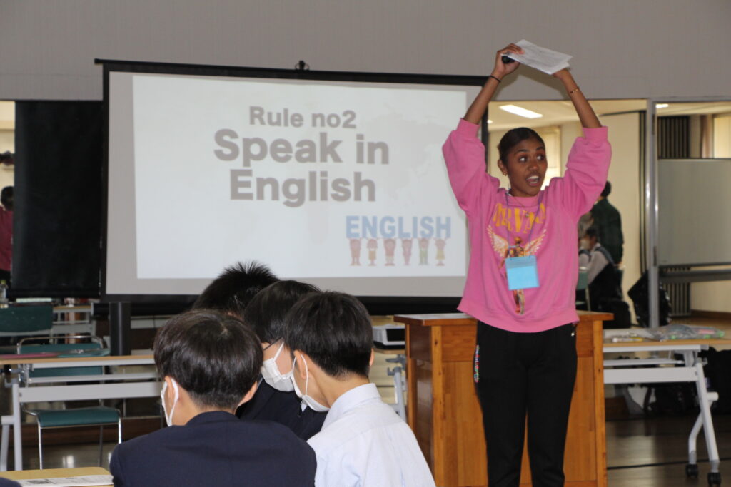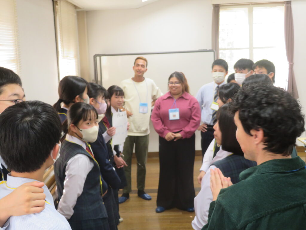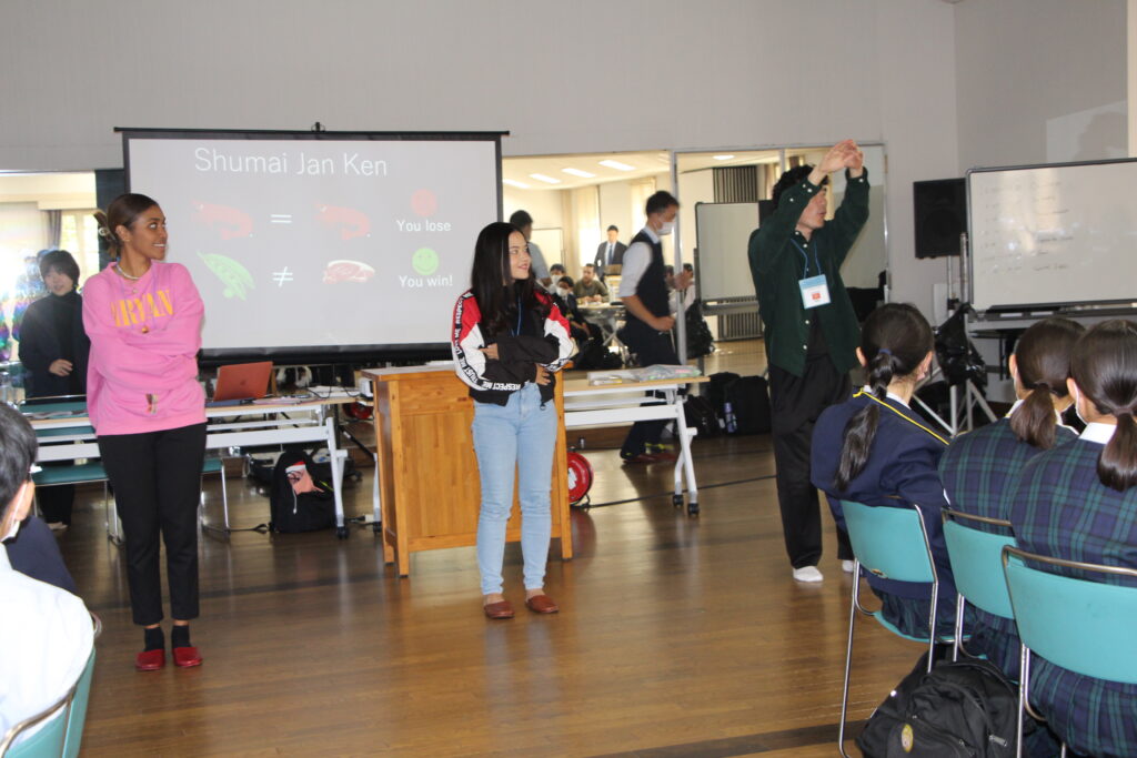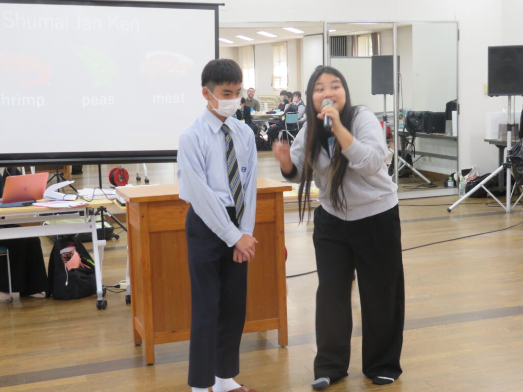 アイスブレイクでは、「シューマイじゃんけん」が行われました。この「シューマイじゃんけん」は、鵬翔中中高一貫の先輩も英語研修で行ってきたものです。