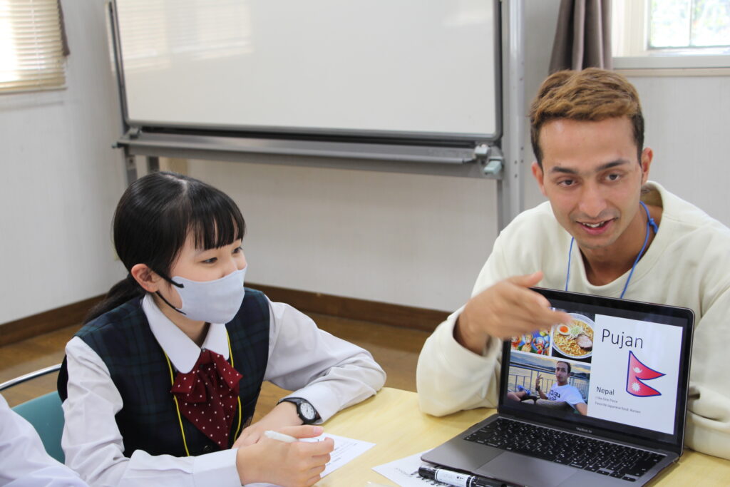 リーダーはフィジー、ミャンマー、キルギス、トーゴ、インドネシア、イラク、ベトナム、バングラデシュ、ネパールなど様々な国の出身の方々で、各国の文化を英語で紹介してもらいました。また、聞くだけでなく、疑問に思った点を積極的に英語で質問する姿もありました。