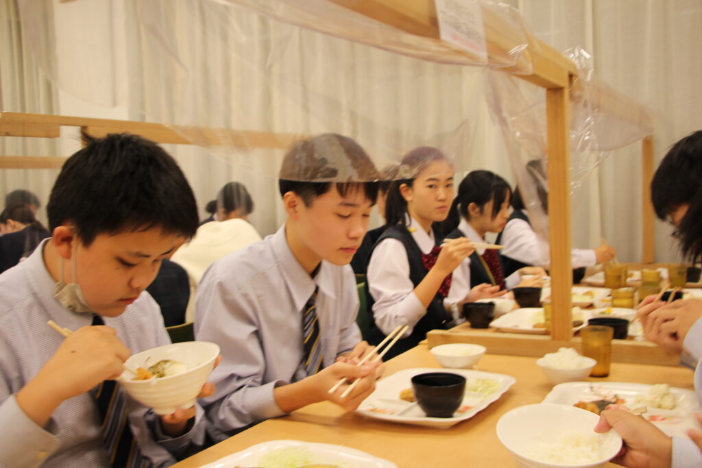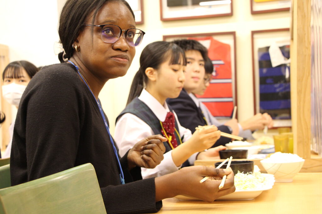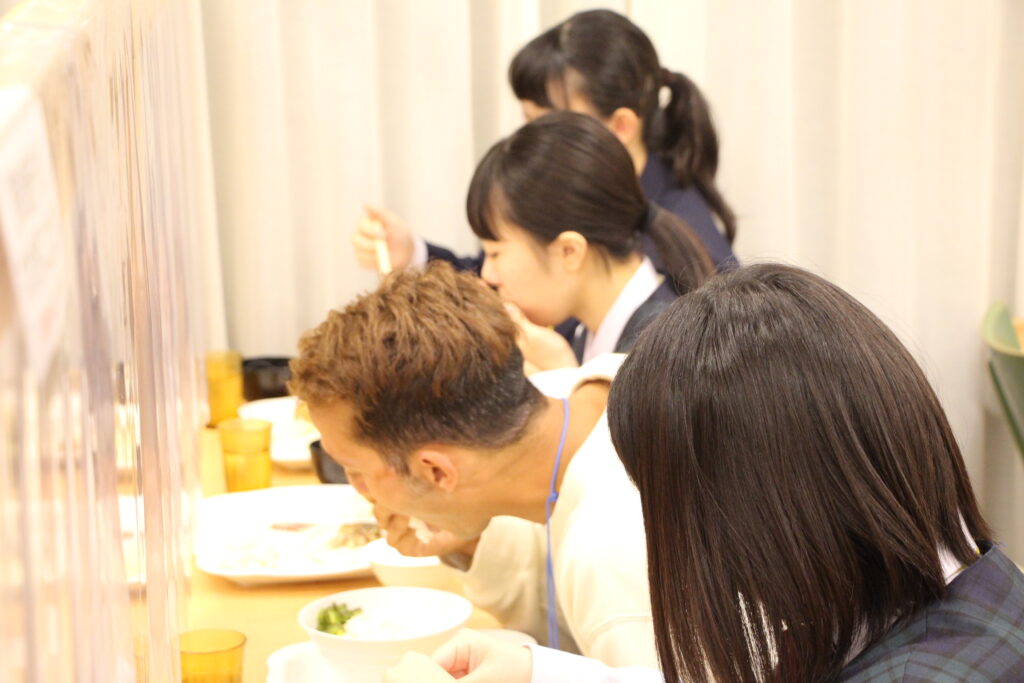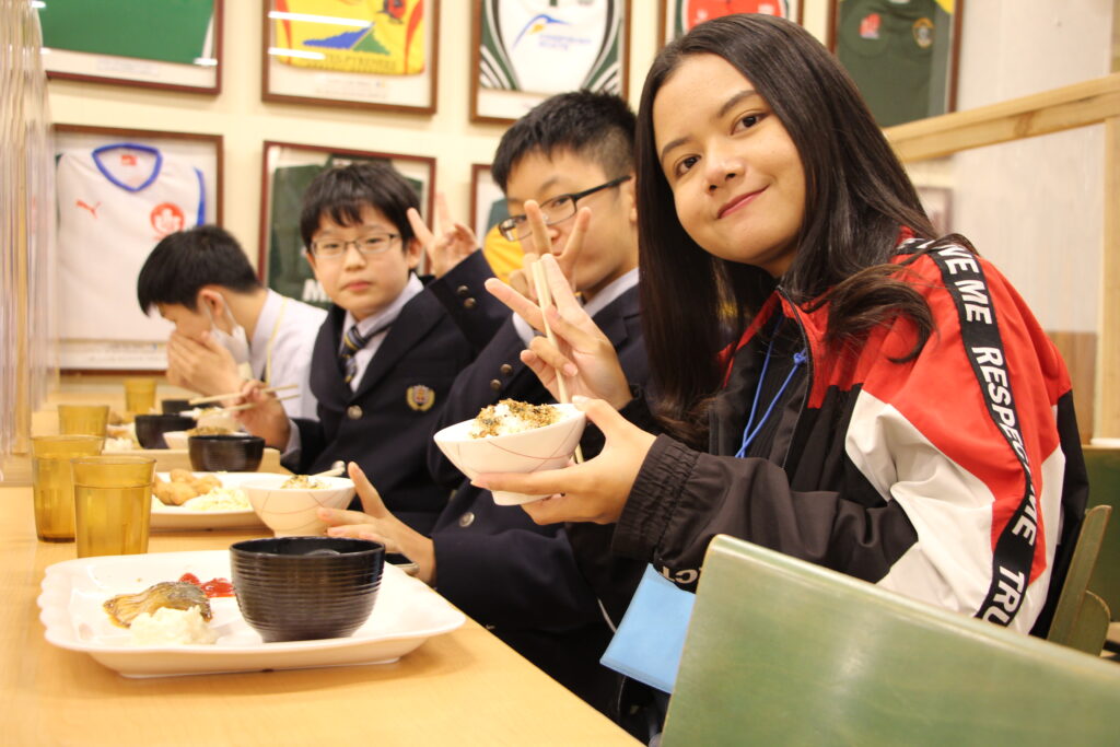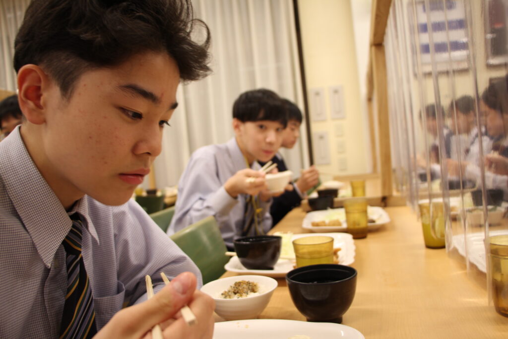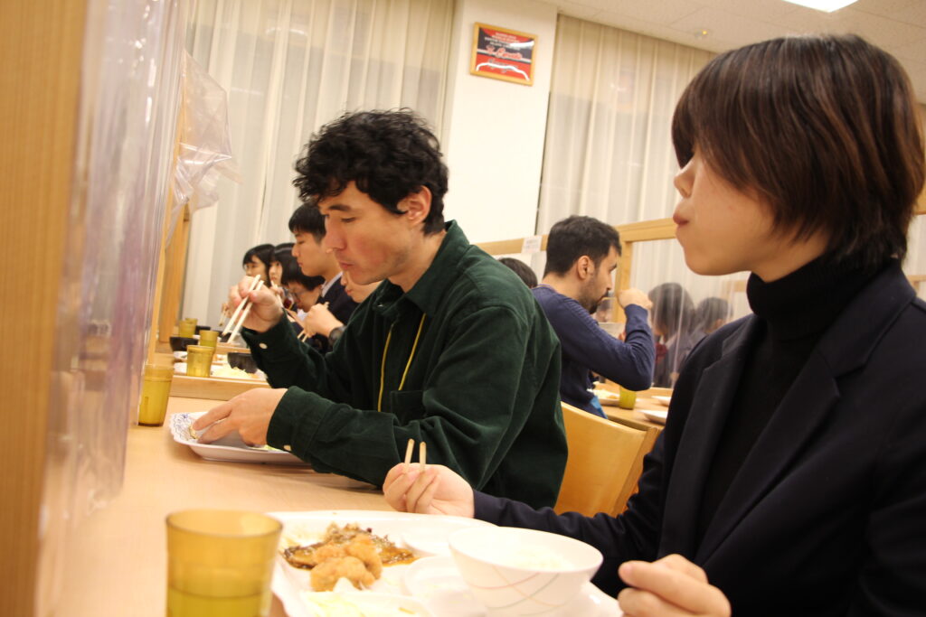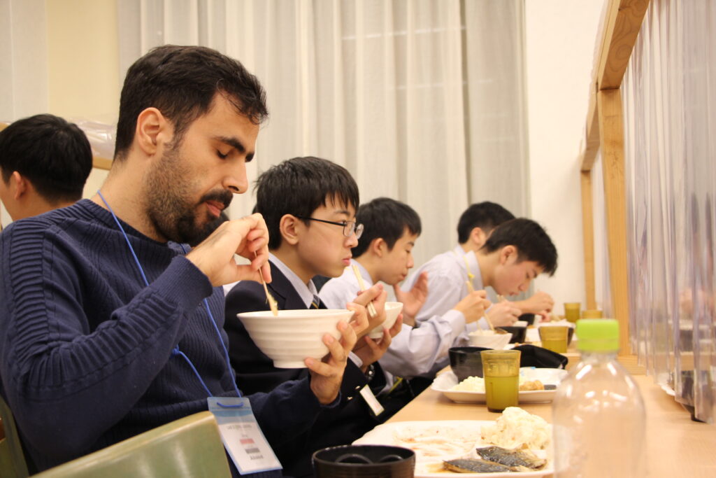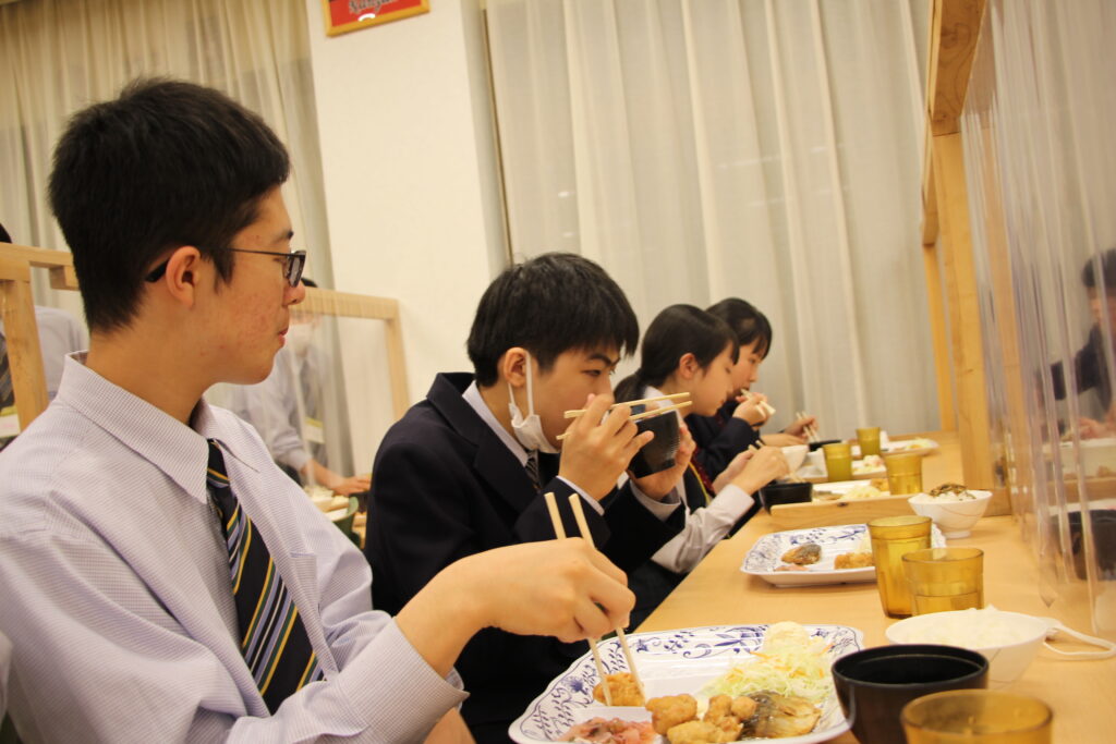 夕食はグローバルリーダーの皆さんと一緒に取り、班で和気あいあいと食事する姿が見られました。