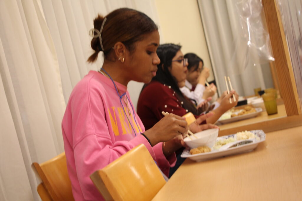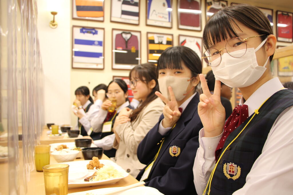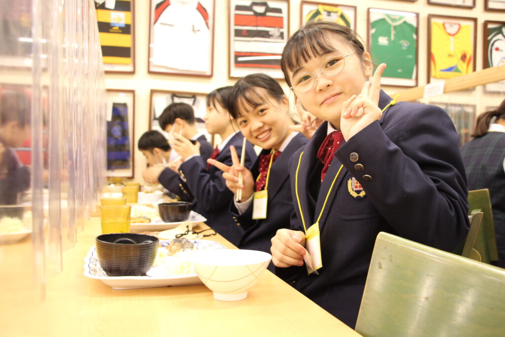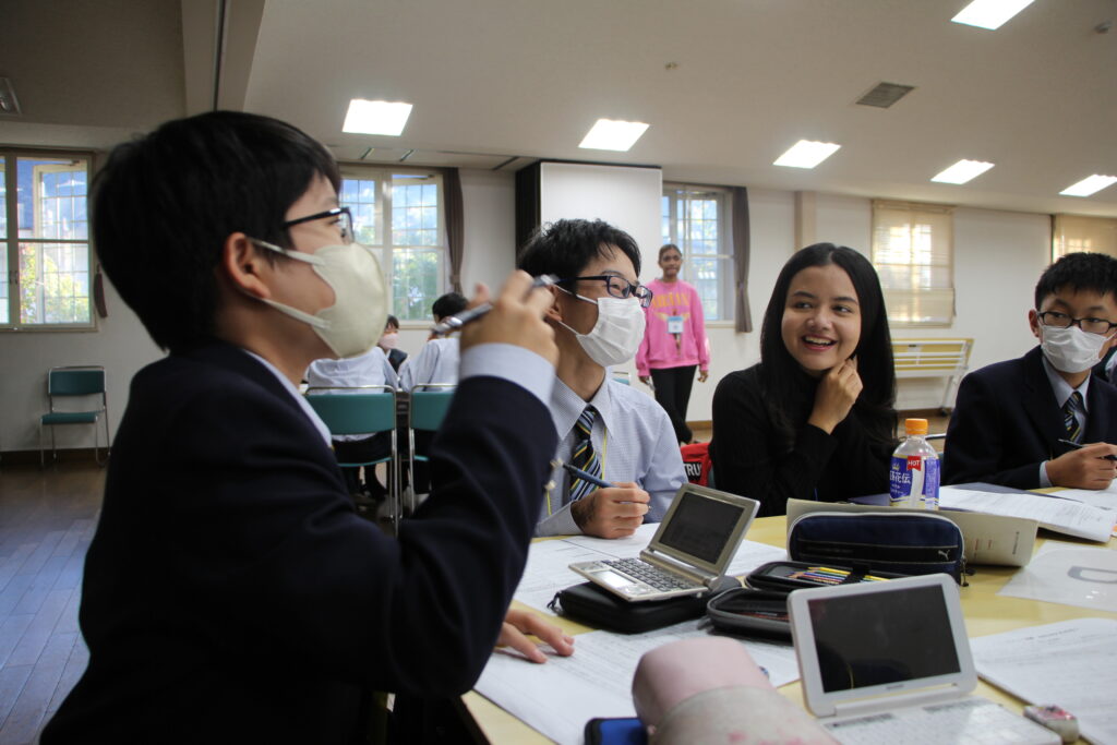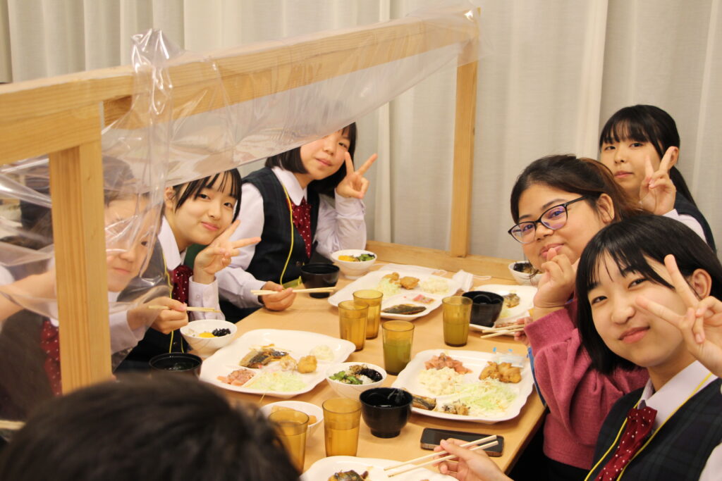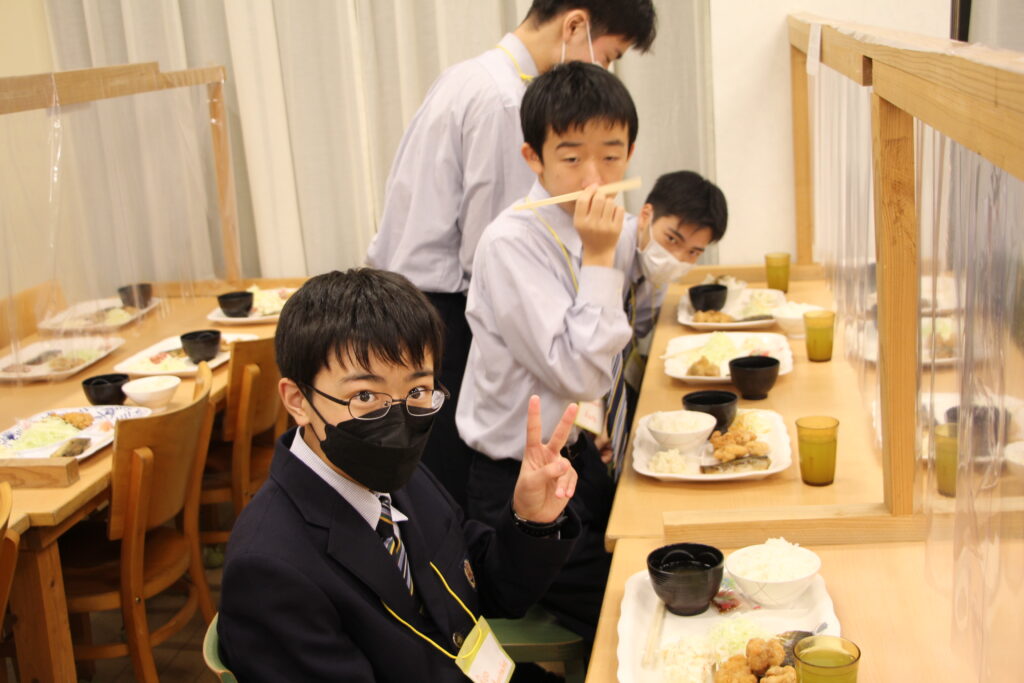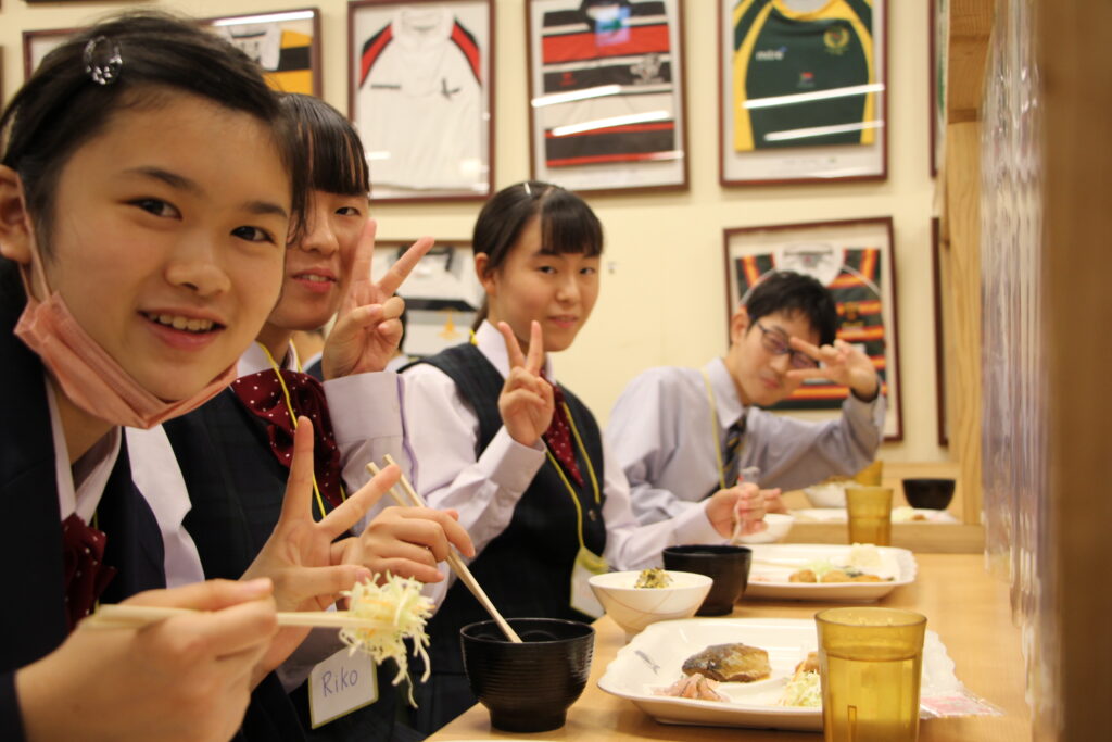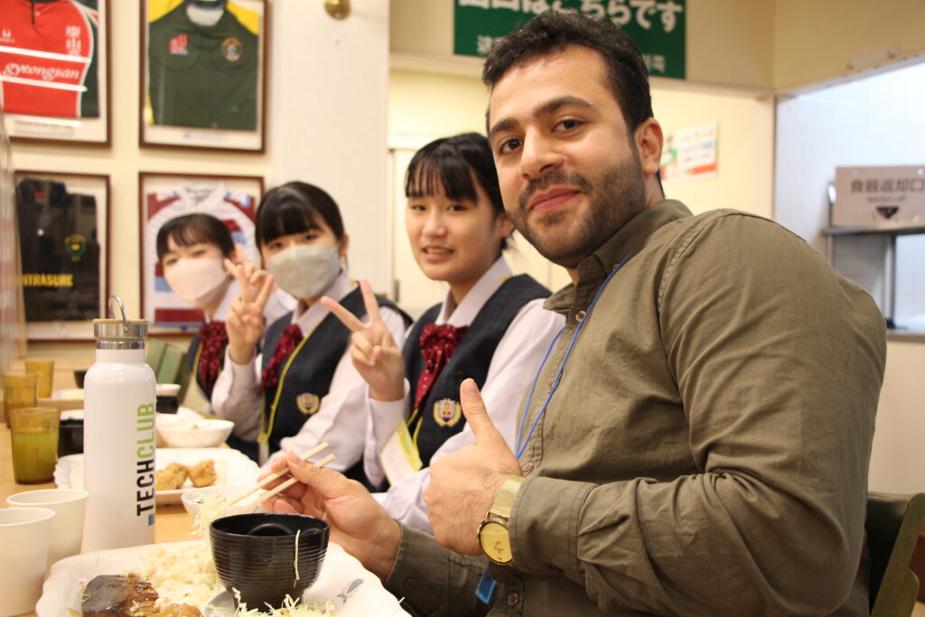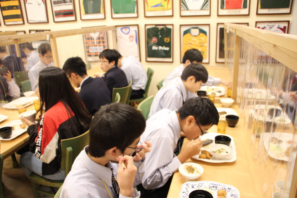 夕食はグローバルリーダーの皆さんと一緒に取り、班で和気あいあいと食事する姿が見られました。