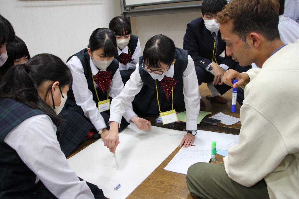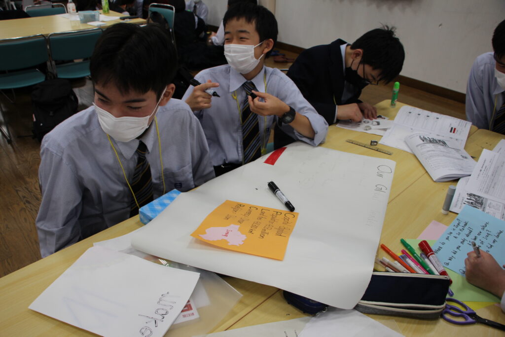 16時すぎから各班でグローバルリーダーを紹介するためのポスター作りが始まりました。