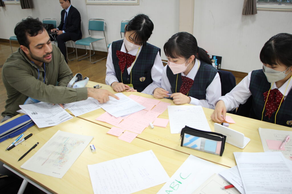 リーダーの出身国の地図を書く班から、リーダーの似顔絵やお互いの食文化、リーダーの好みの絵を書く班まで様々でした。