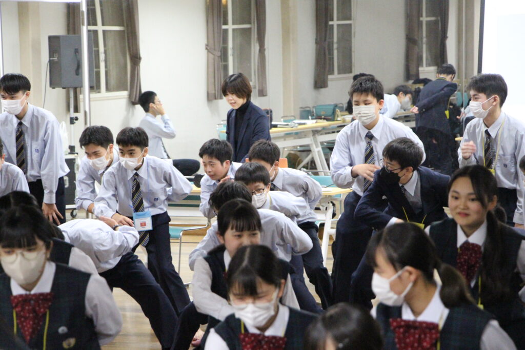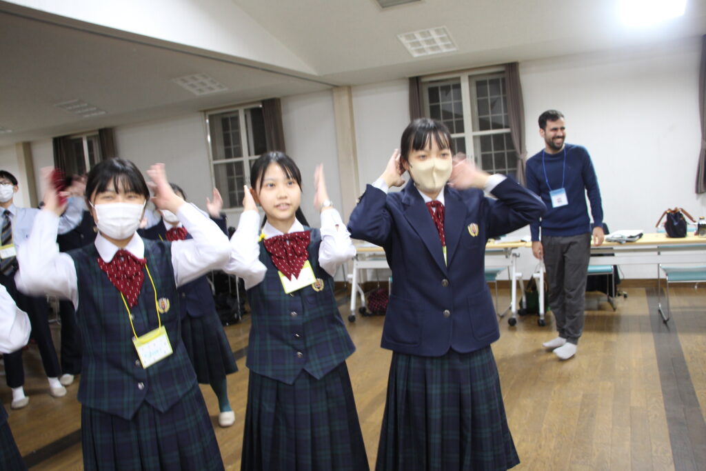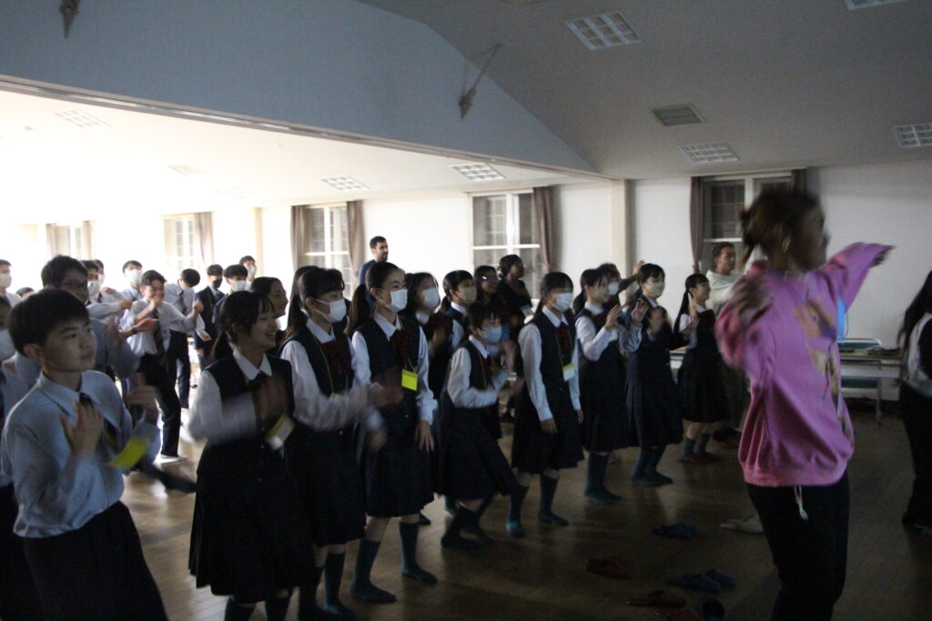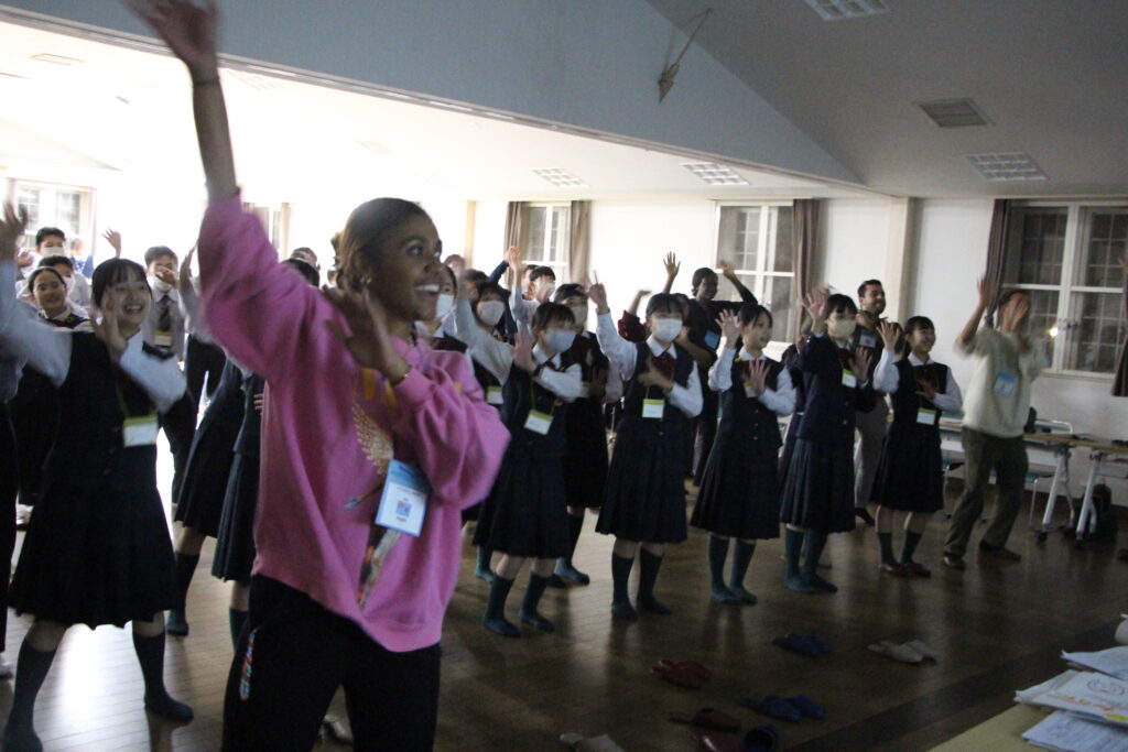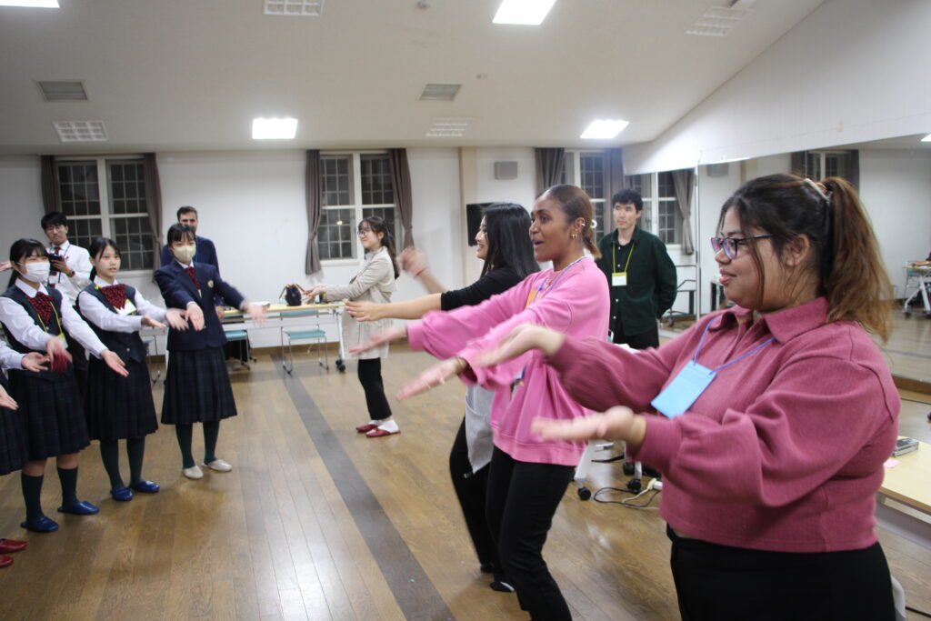 グローバルリーダーの方々の用意したダンスを一通り踊った後に、本校の体育大会などで踊る、ソーラン節を踊ってグローバルリーダーの皆さんに日本の文化を紹介しました。