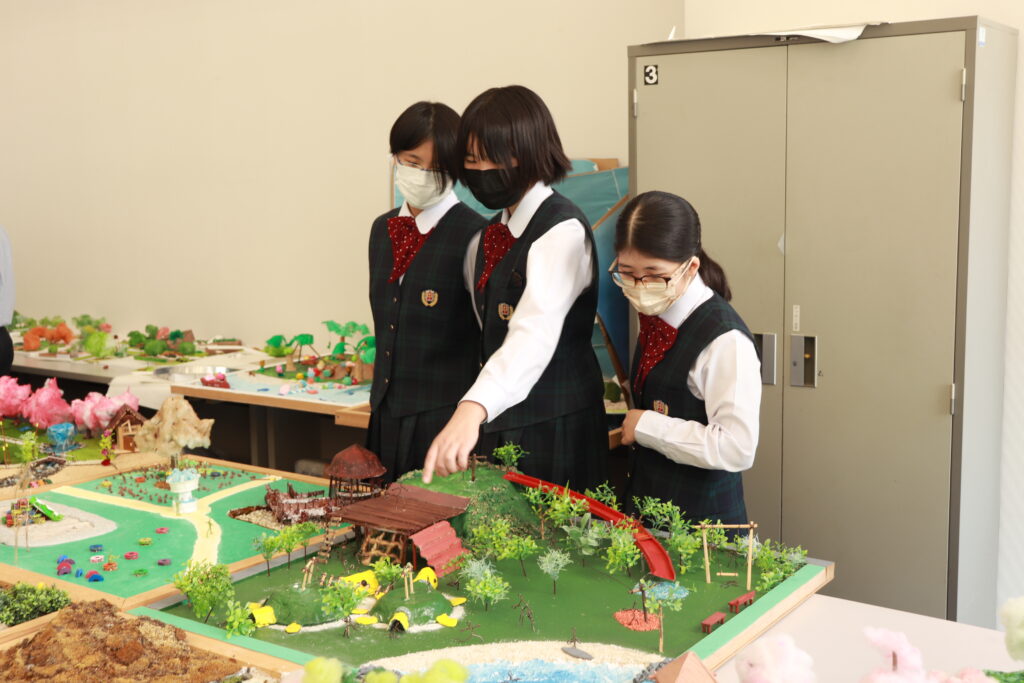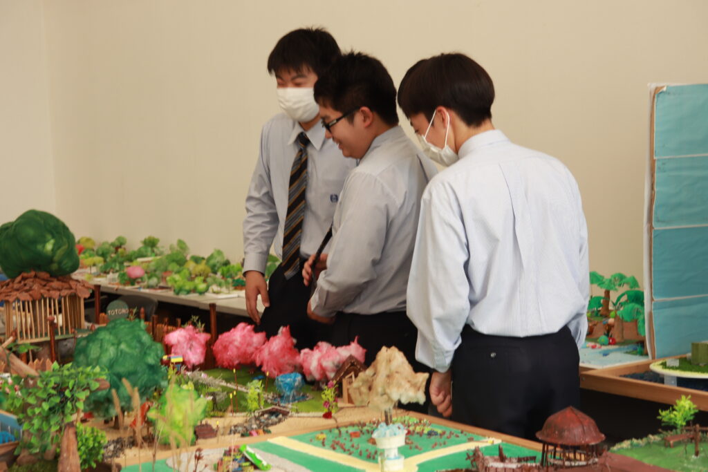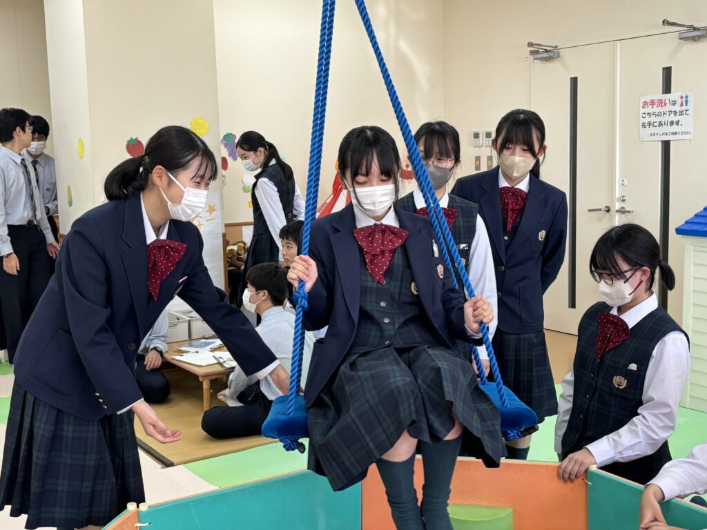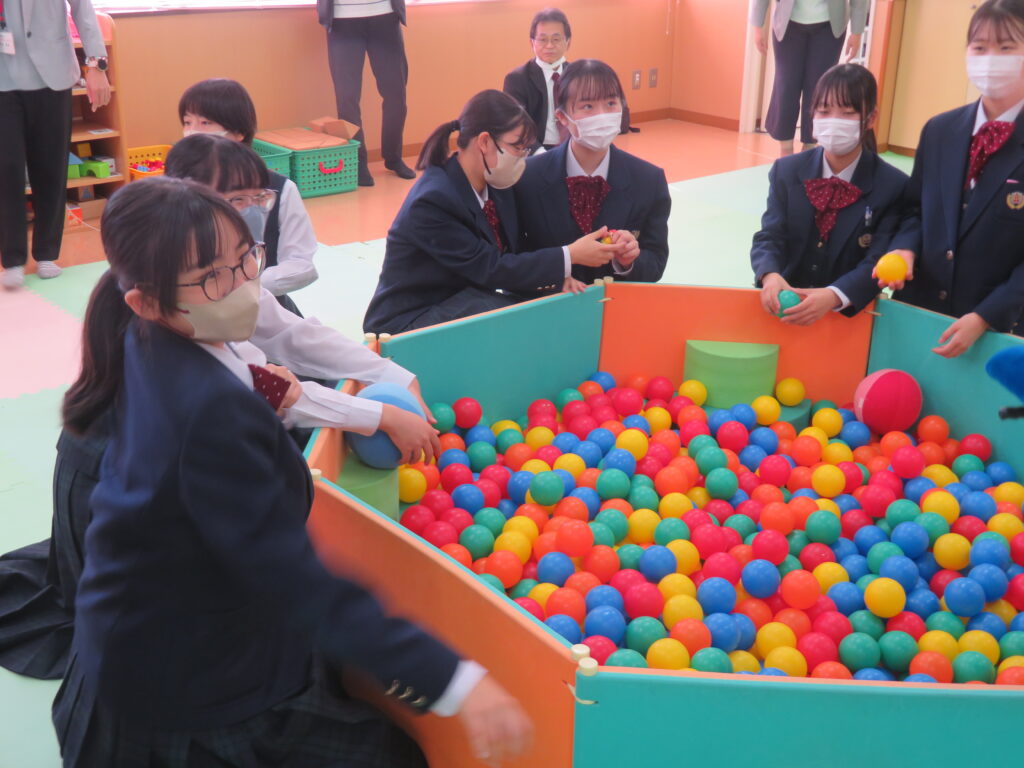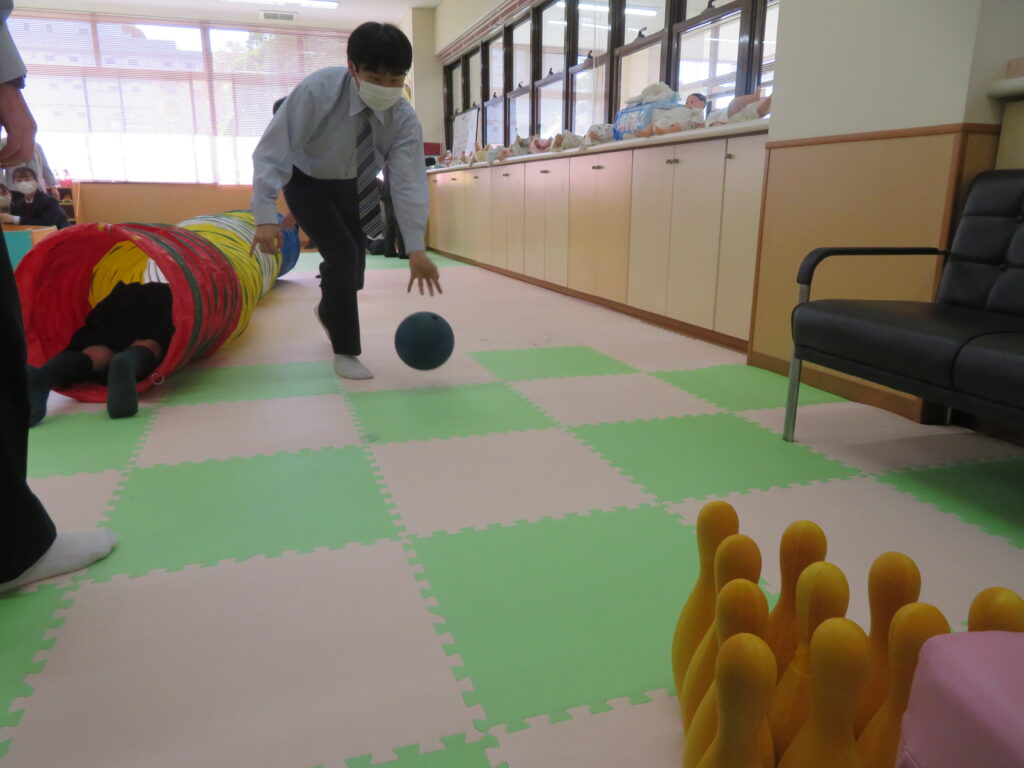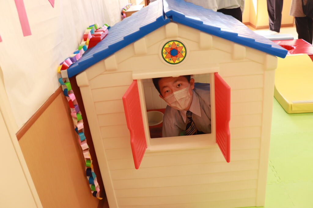 その後、キャンパス内の散策を行いました。小児保健実習室で実際に遊具で遊んだり、模型室で大学生が作成した作品を見たりと、自分たちで直接見て触れる良い時間になりました。