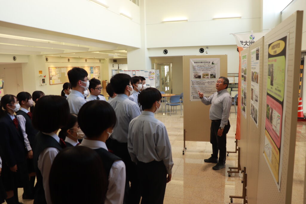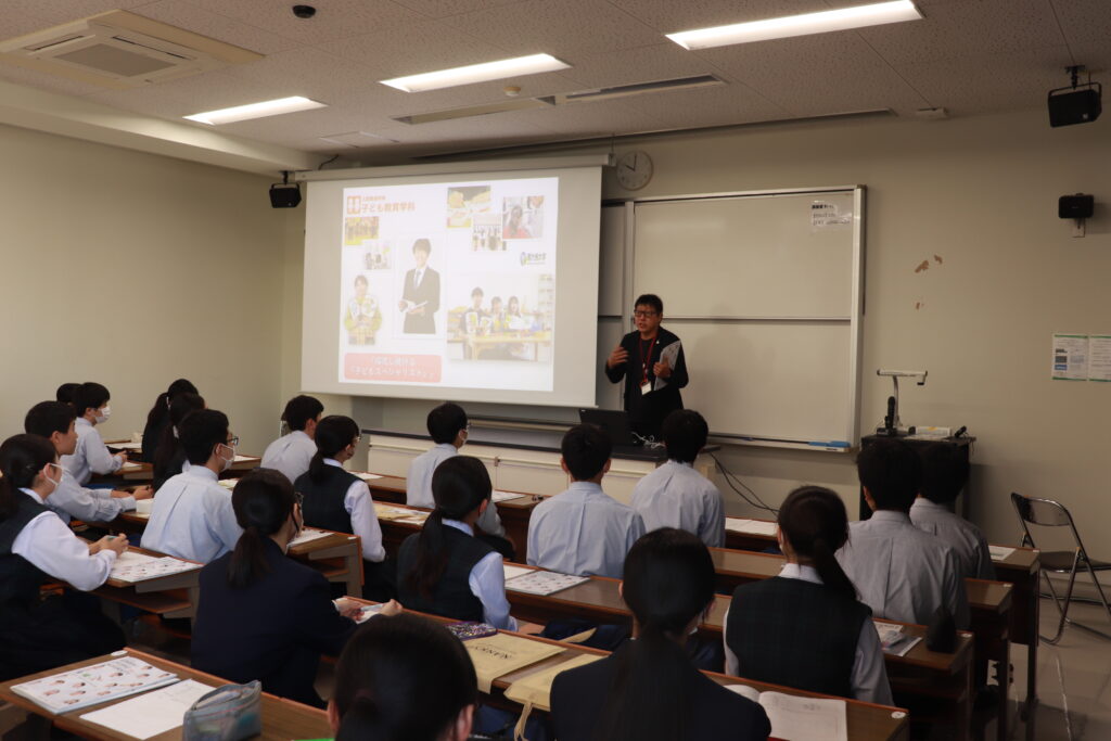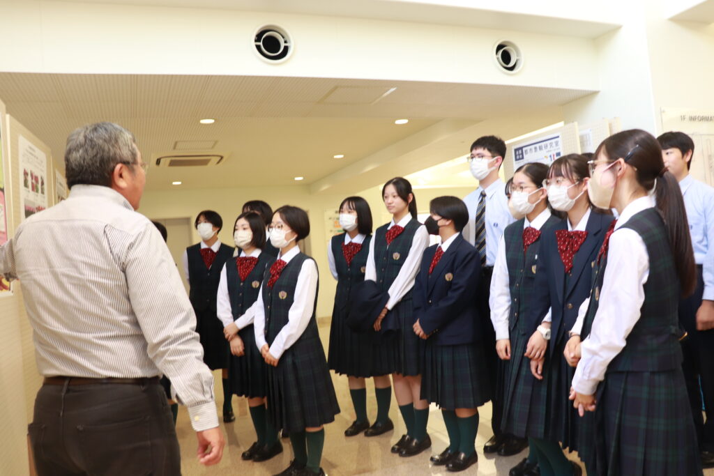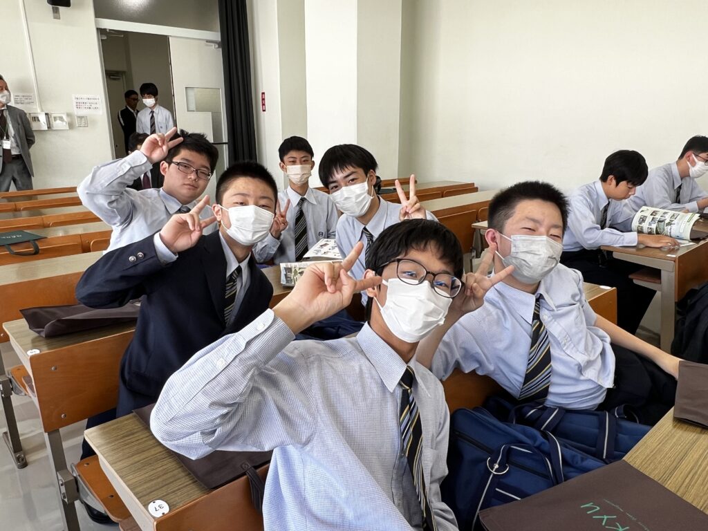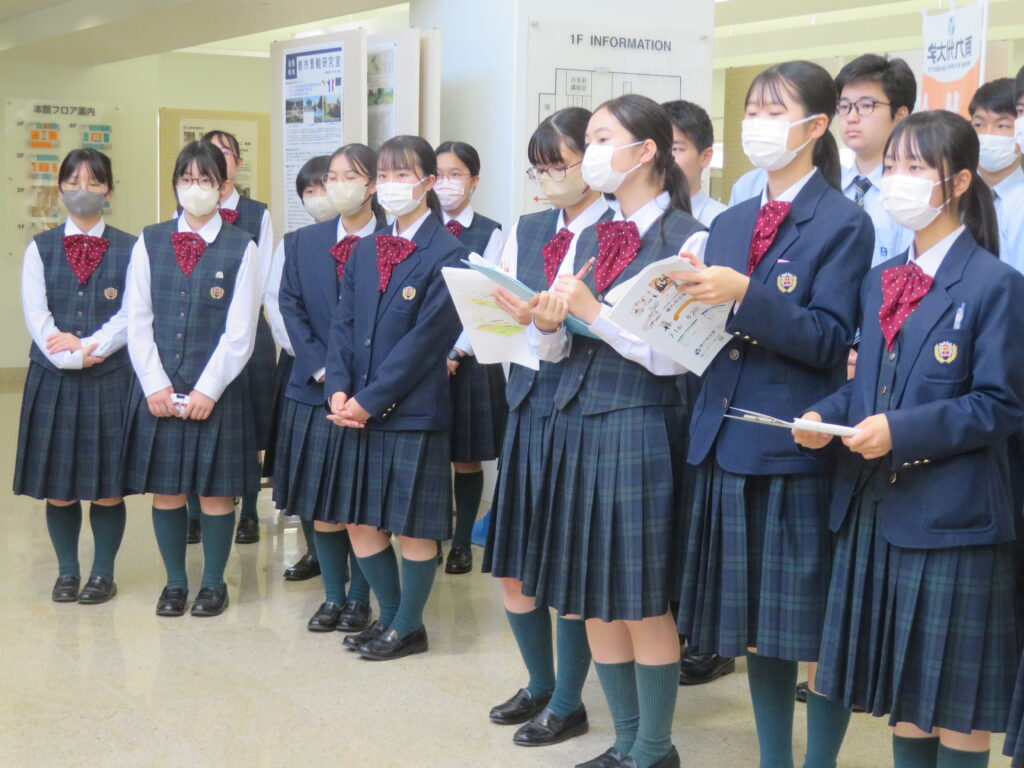 本日は、昨日のJ3校外学習の様子をお届けします。まず、南九州大学(都城キャンパス)に向かいました。子ども教育学科や環境園芸学科の紹介があり、生徒たちは耳を傾けていました。大学の先生方からお話しを頂き、将来の選択を広げる良い機会になったのではないかと思います。