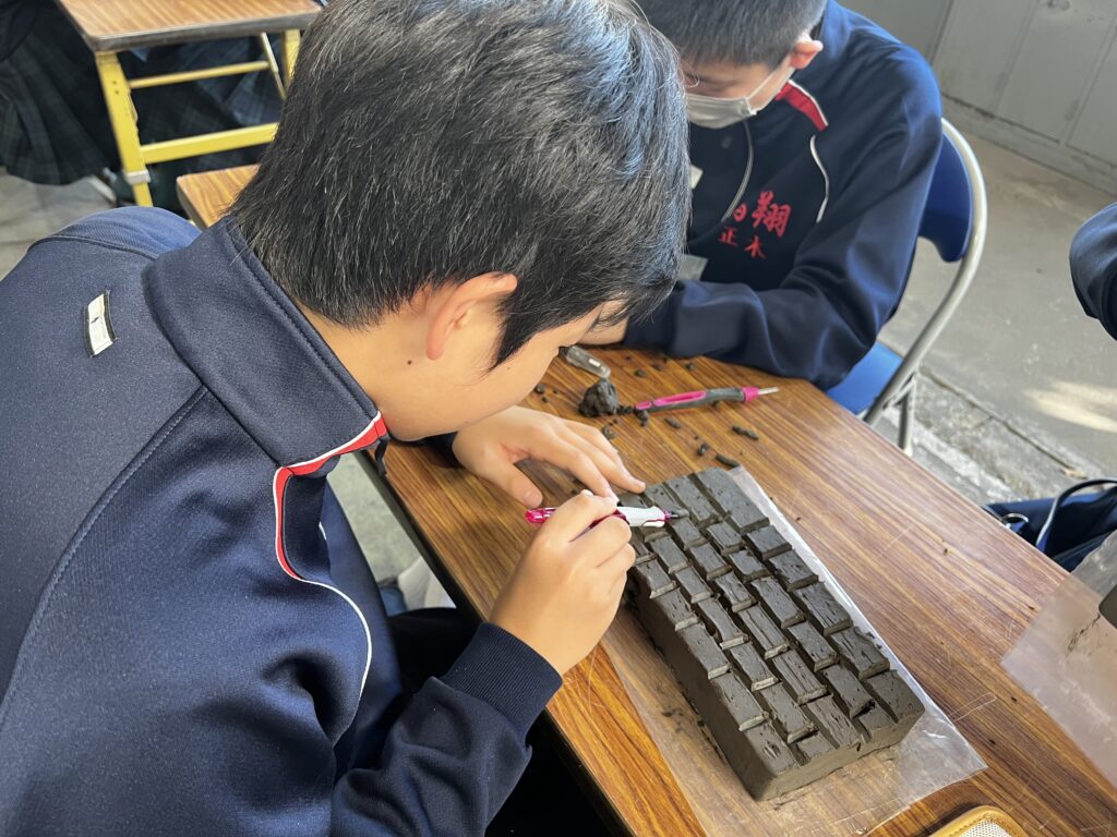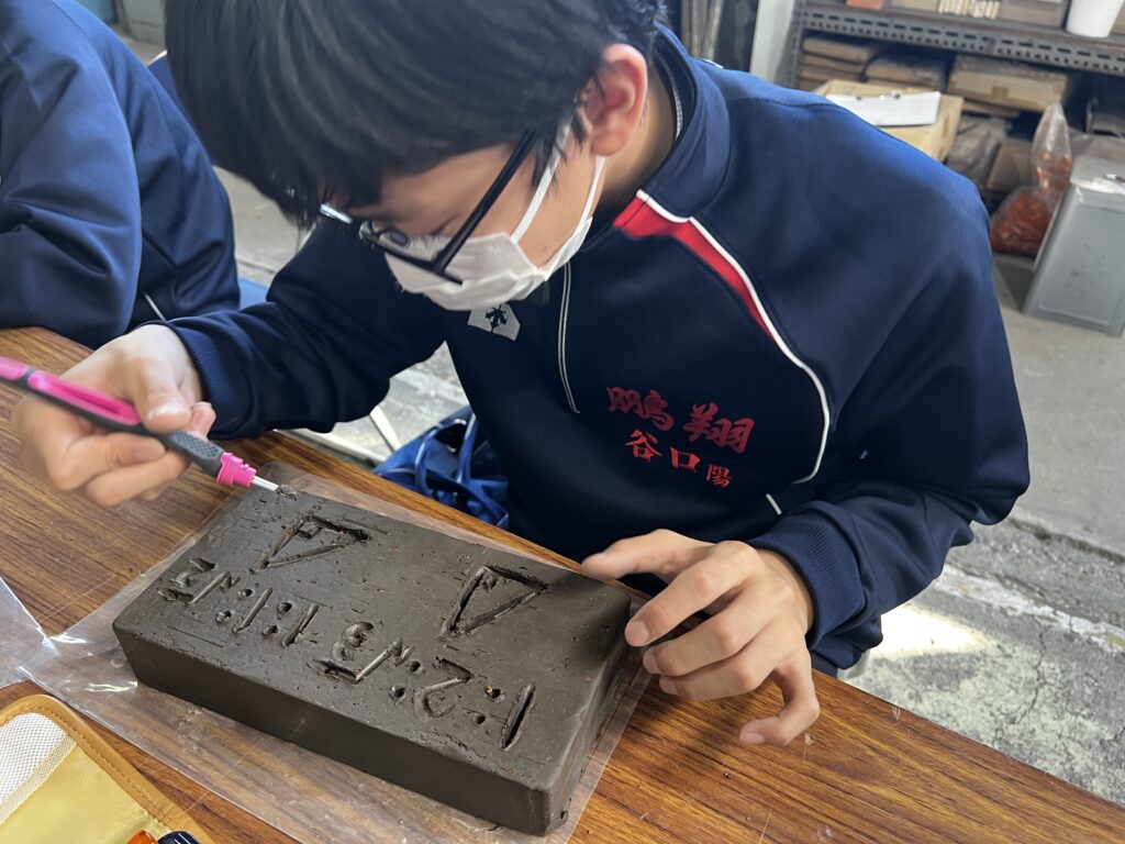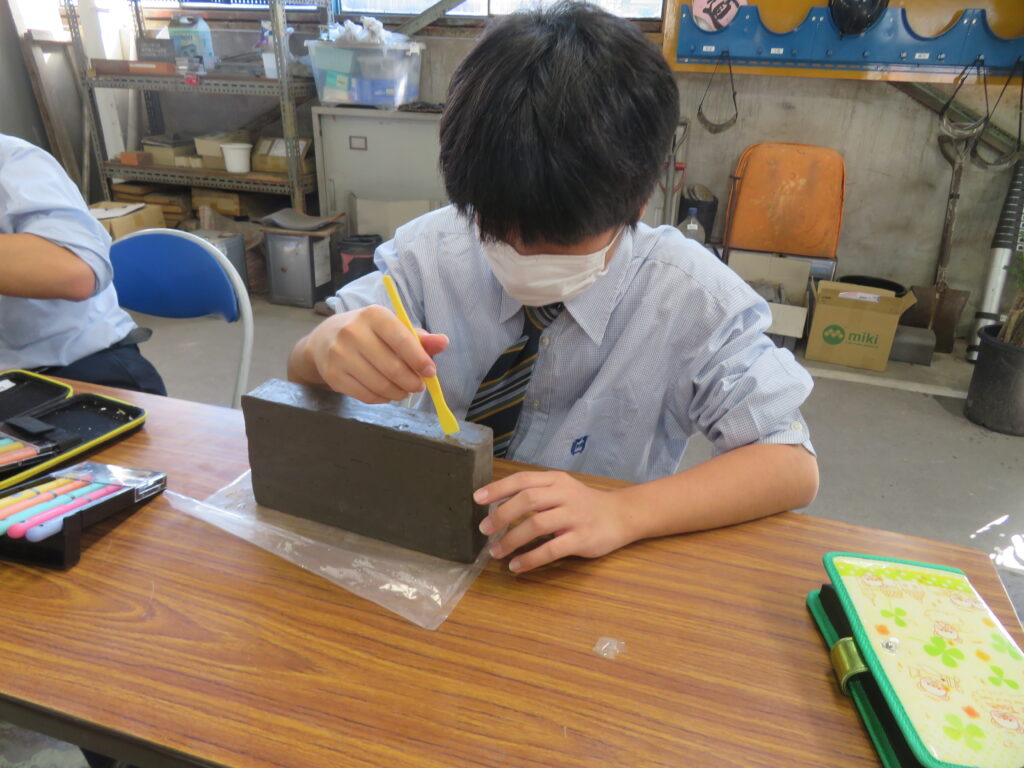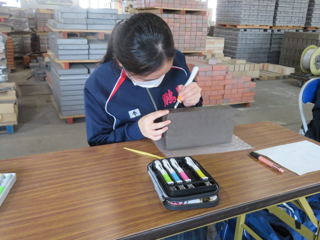 また、彫レンガ体験では、熱心に彫刻を行っていました。何を彫るのか、事前に下書きを行い、時間いっぱい活動に取り組む様子が見られました。それぞれの想いが詰まった、世界に1つのレンガ🧱。完成したものを見るのが楽しみです!