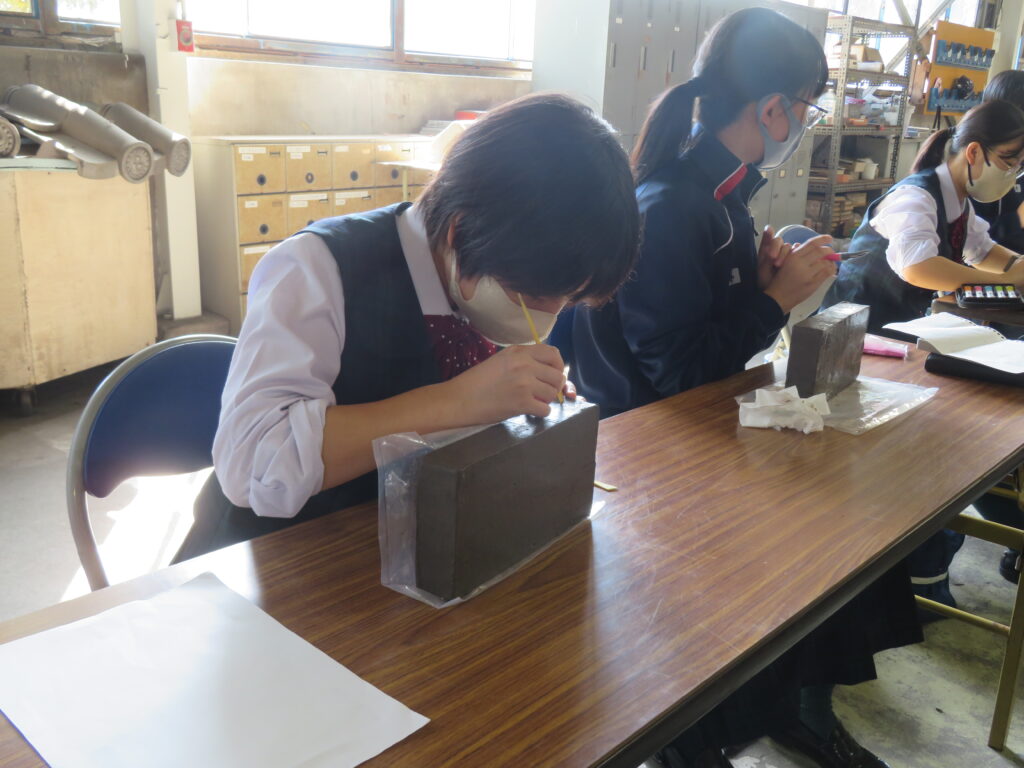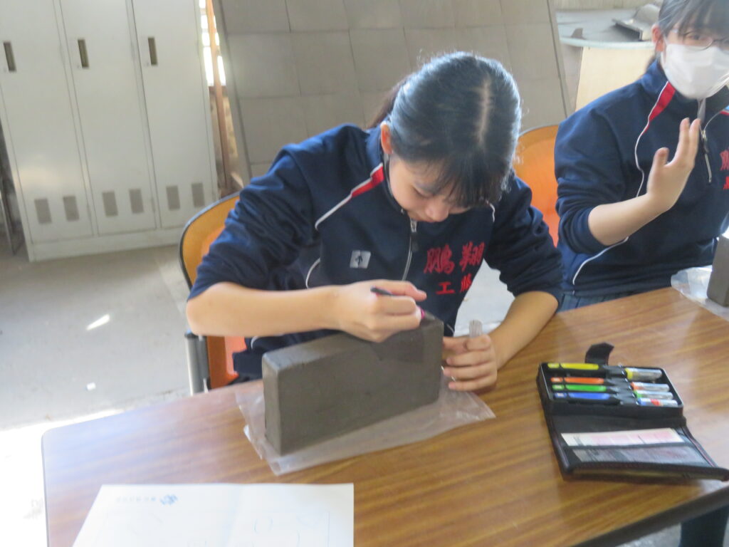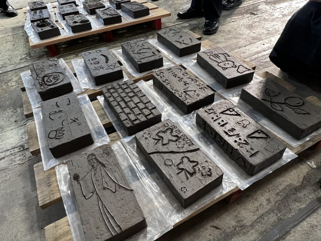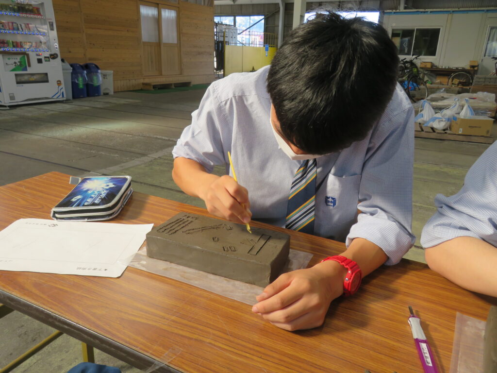 また、彫レンガ体験では、熱心に彫刻を行っていました。何を彫るのか、事前に下書きを行い、時間いっぱい活動に取り組む様子が見られました。それぞれの想いが詰まった、世界に1つのレンガ🧱。完成したものを見るのが楽しみです!