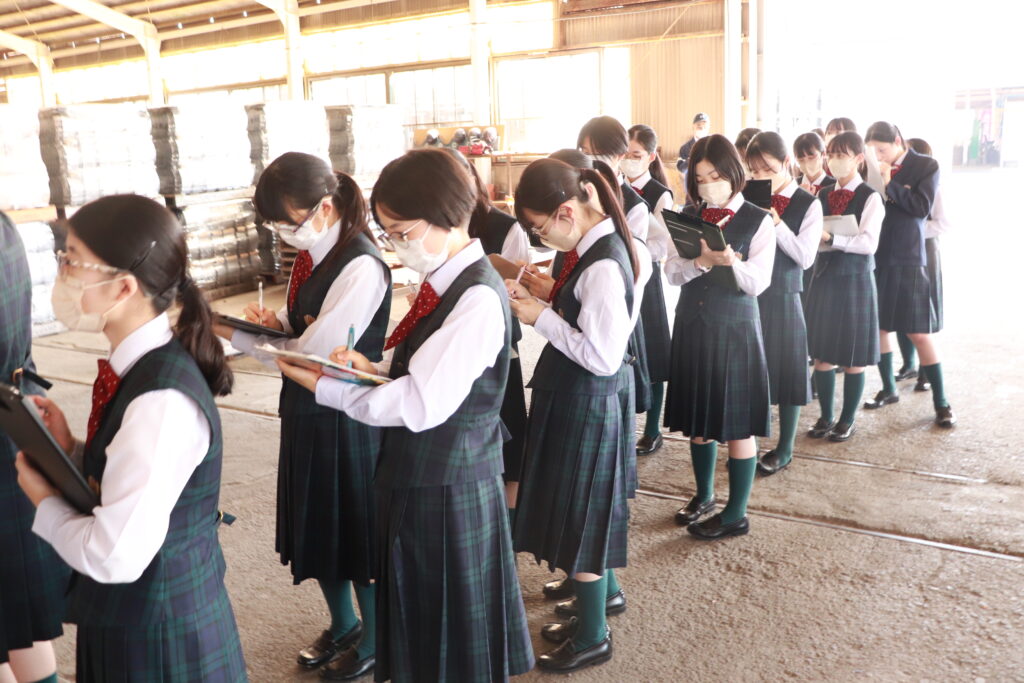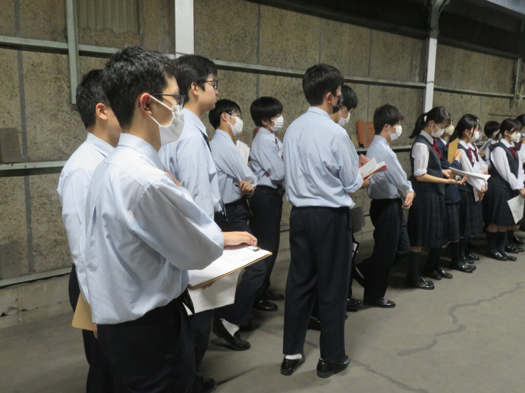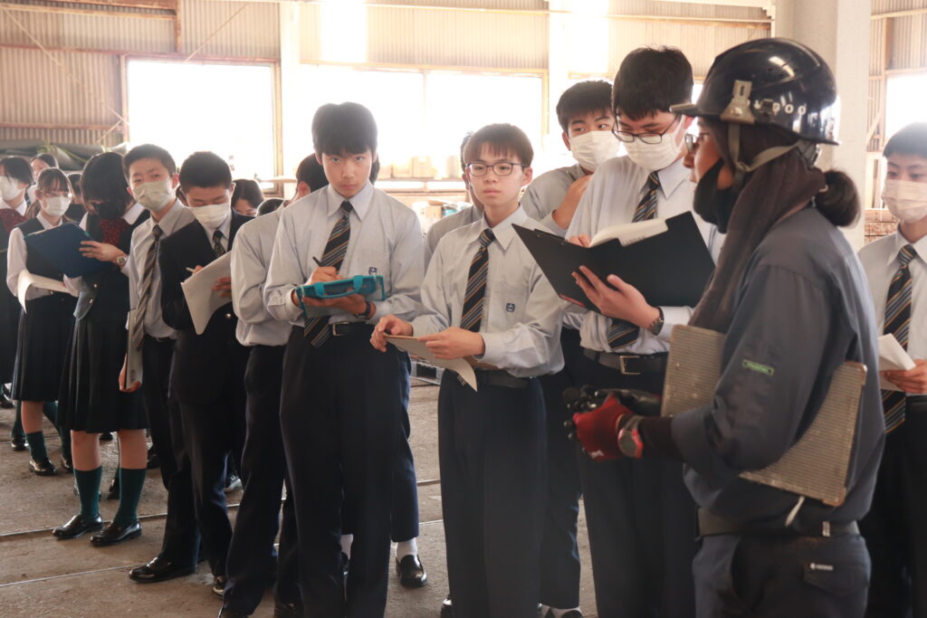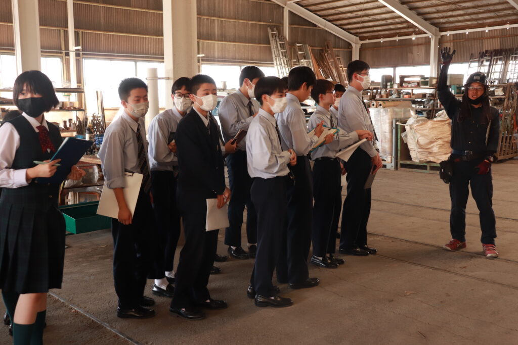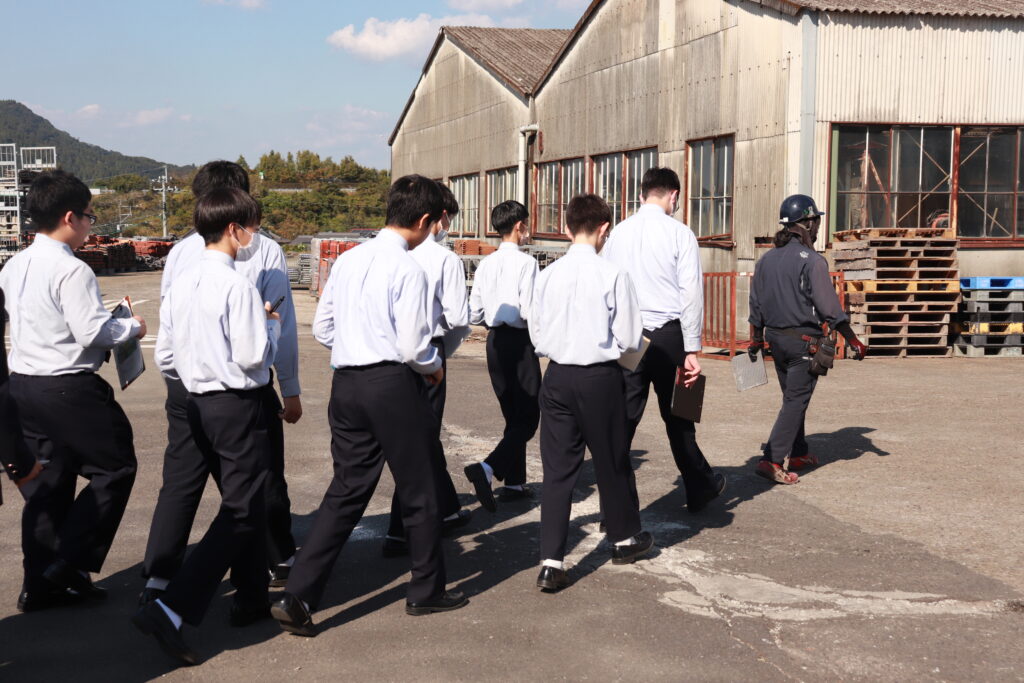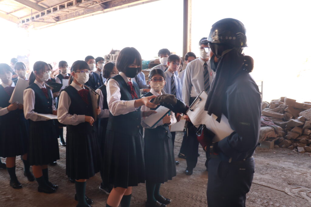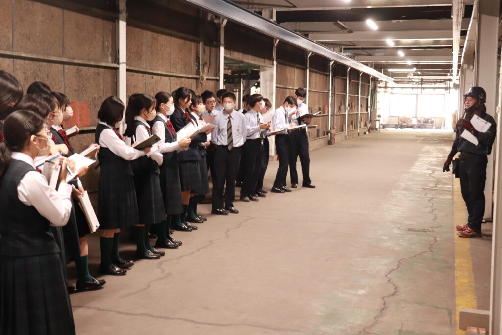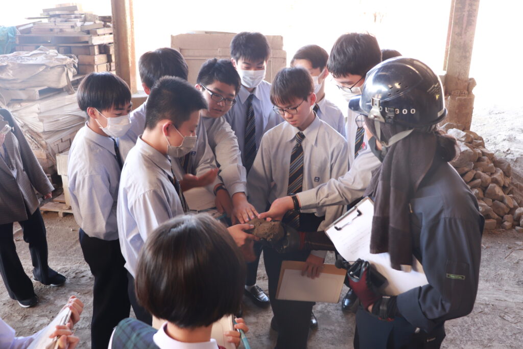 午後は、創宮株式会社にて施設見学を行いました。初めて見るものばかりで、生徒たちは興味津々な様子でした。様々な工程を見学し、粘土を触ったり質問をしたりと、教科書からは学ぶことのできない有意義な時間になりました。