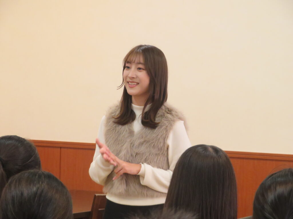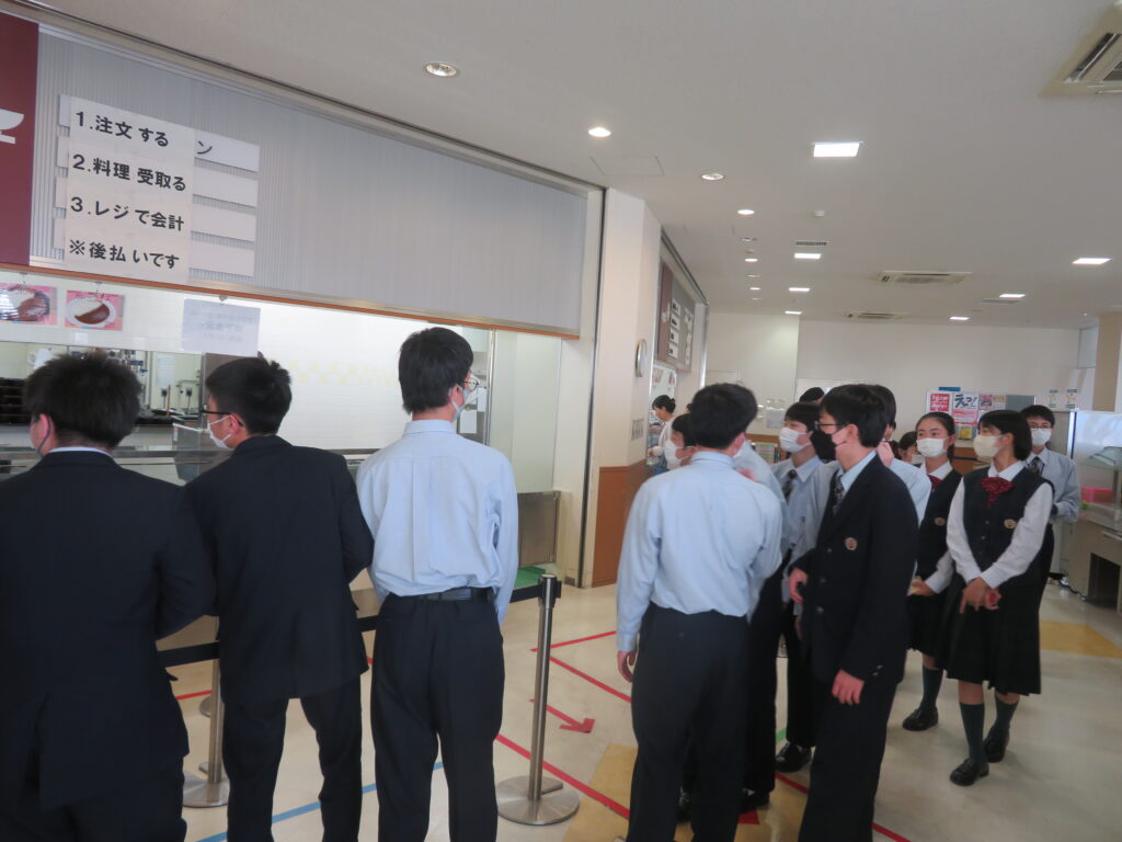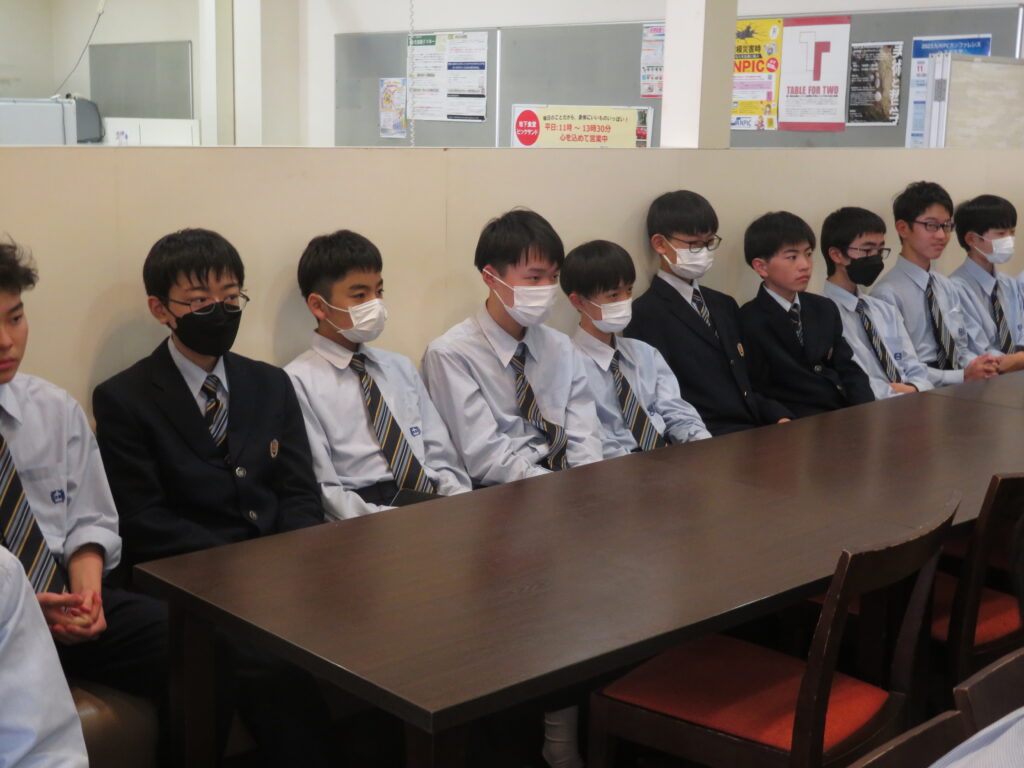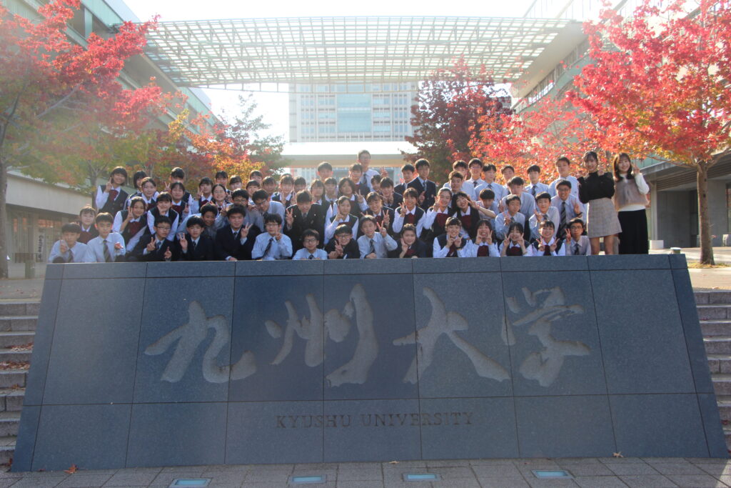 最後の目的地、九州大学に到着しました。学食で昼食を食べ、中高一貫第12期生の日髙美優さんより、中学時代の話や大学受験に向けての心構えなどについて話をしてもらいました。生徒たちはよい刺激をもらったようでした。