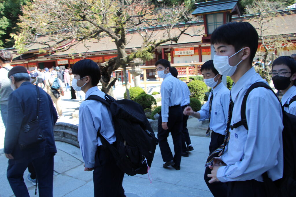グローバルリーダーに見送られ、次の活動場所、大宰府天満宮に向かいました。
