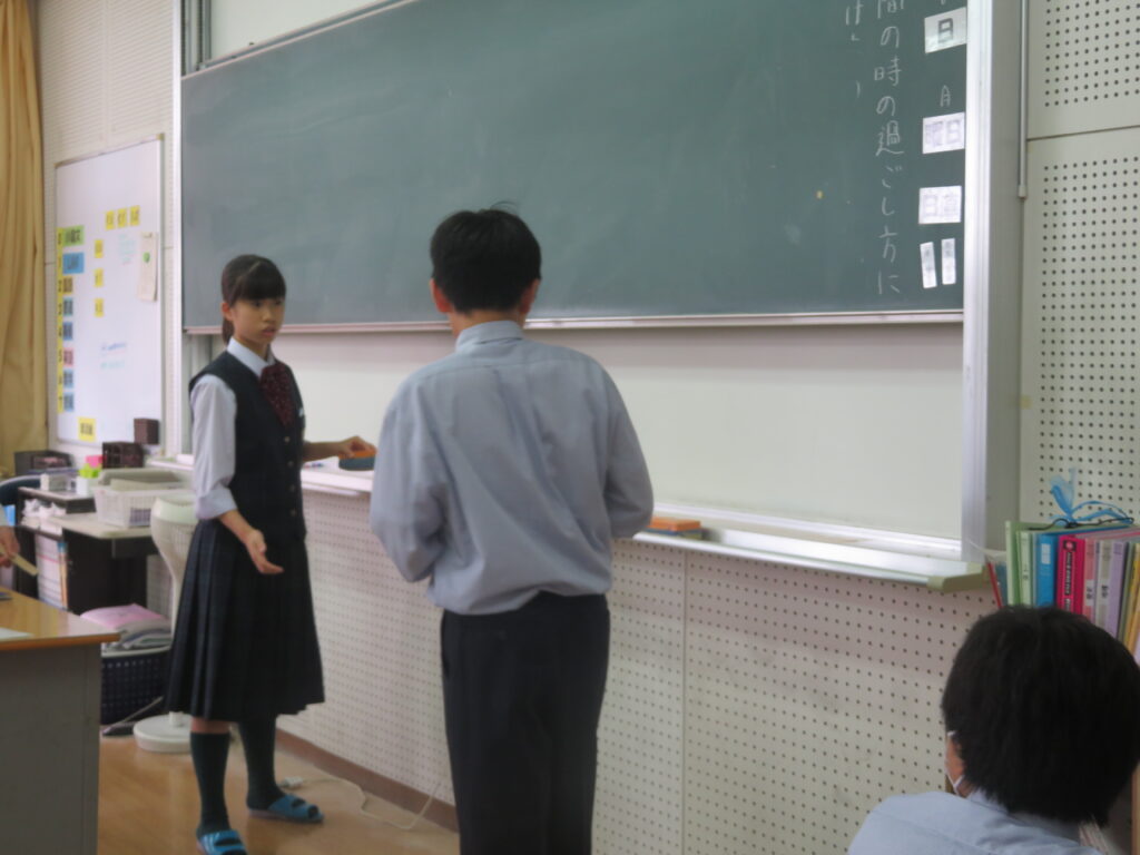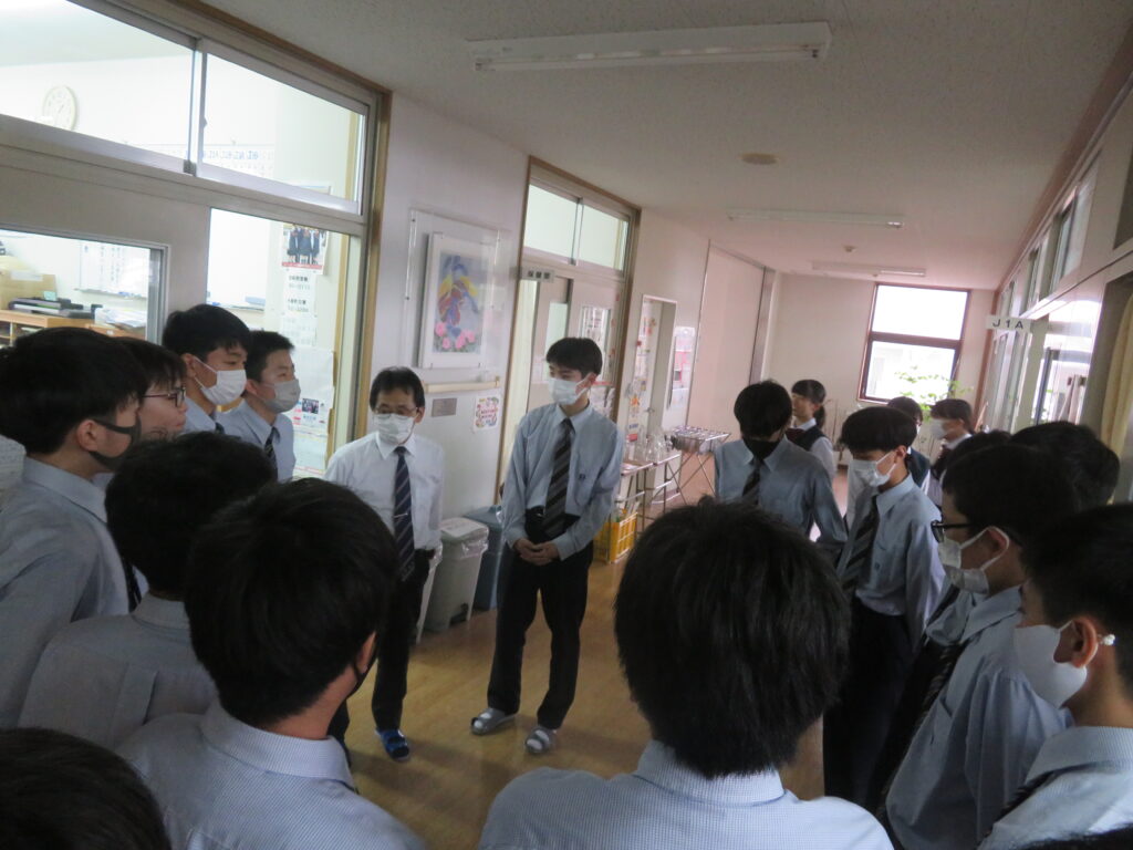 15分間の清掃の後は、ファミリー集会です。チューターを中心にファミリーごとに集合します。お誕生日を祝ったり、授業への取り組みの意気込みを表したり、注意事項を伝えたり、ファミリー独自の趣向と内容で、毎日ファミリー集会を行っています。