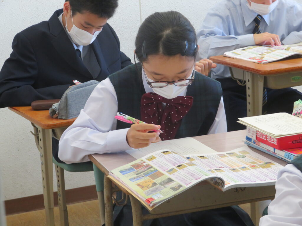 J1生の国語の授業では現代語訳を学んだり、クイズ形式で覚えたりしています。