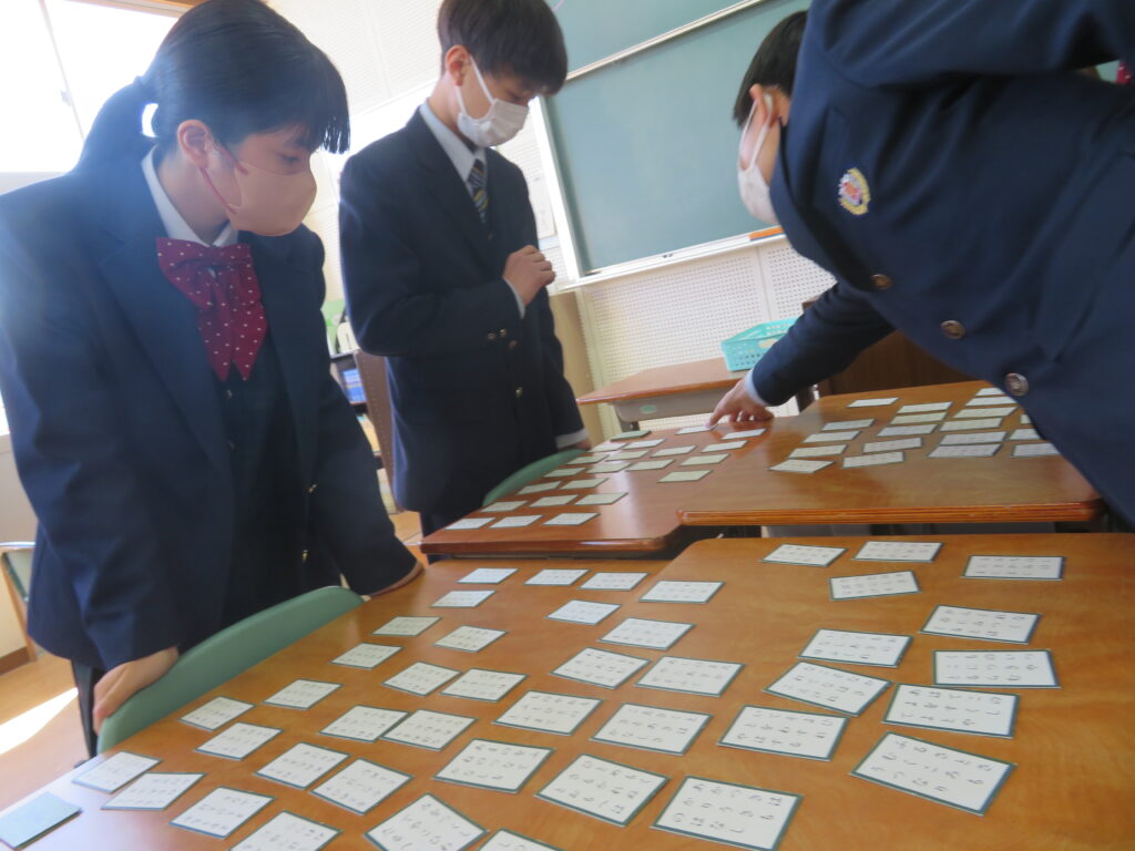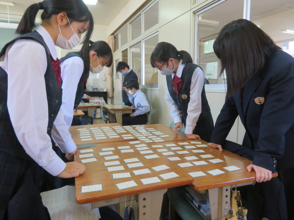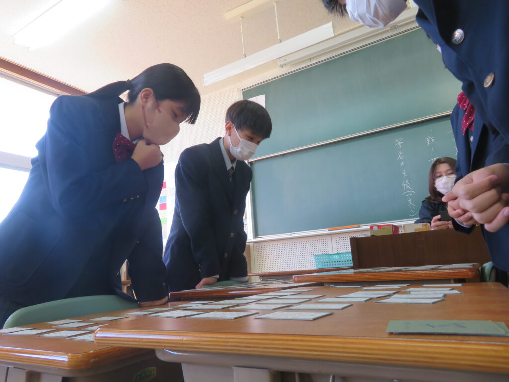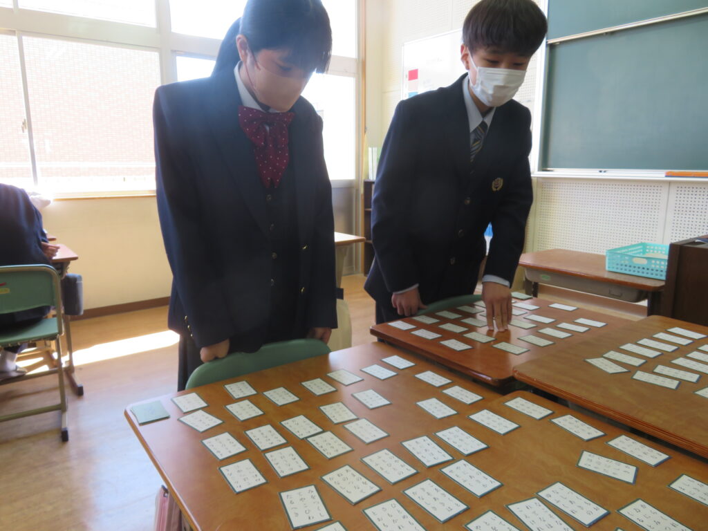 教室から和歌が聞こえてくると、今年もこの時期がやってきたな~と感じます。鵬翔中学校では毎年12月に百人一首大会を実施しています。古典に親しむ態度を育て、日本文化や伝統について関心を深めるために百人一首について学習します。