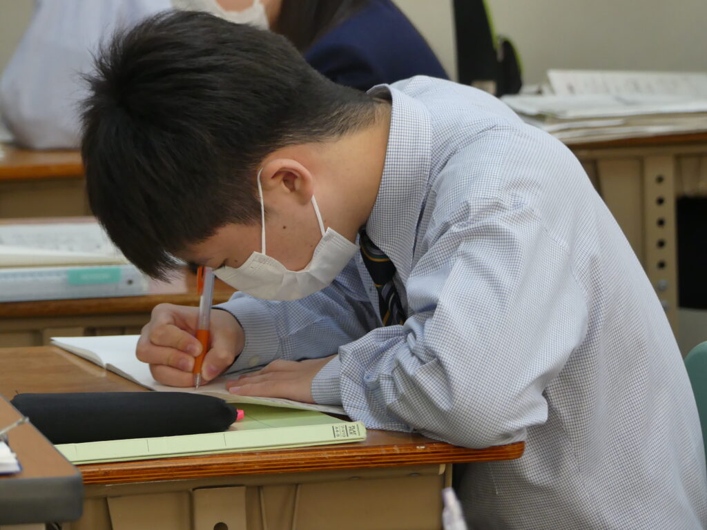 定期テストまでの期間も2週間を切り、以前に増して集中力が高まっているように感じられます。切磋琢磨しながら、今後も真剣に学習に取り組んでもらいたいです。
