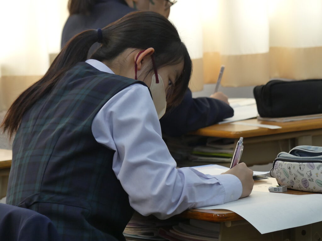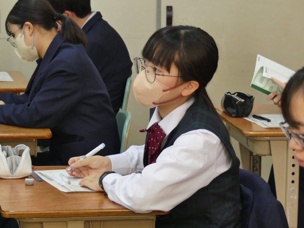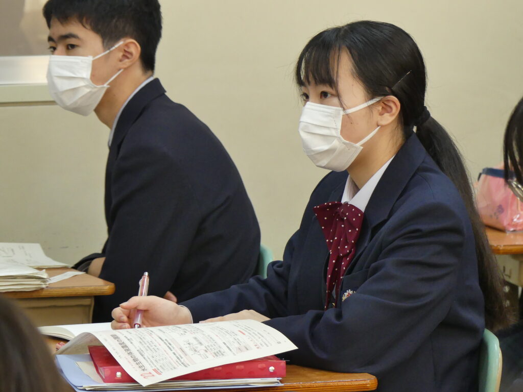 授業では、生徒たちの真剣に聞き、書く姿が見られました。