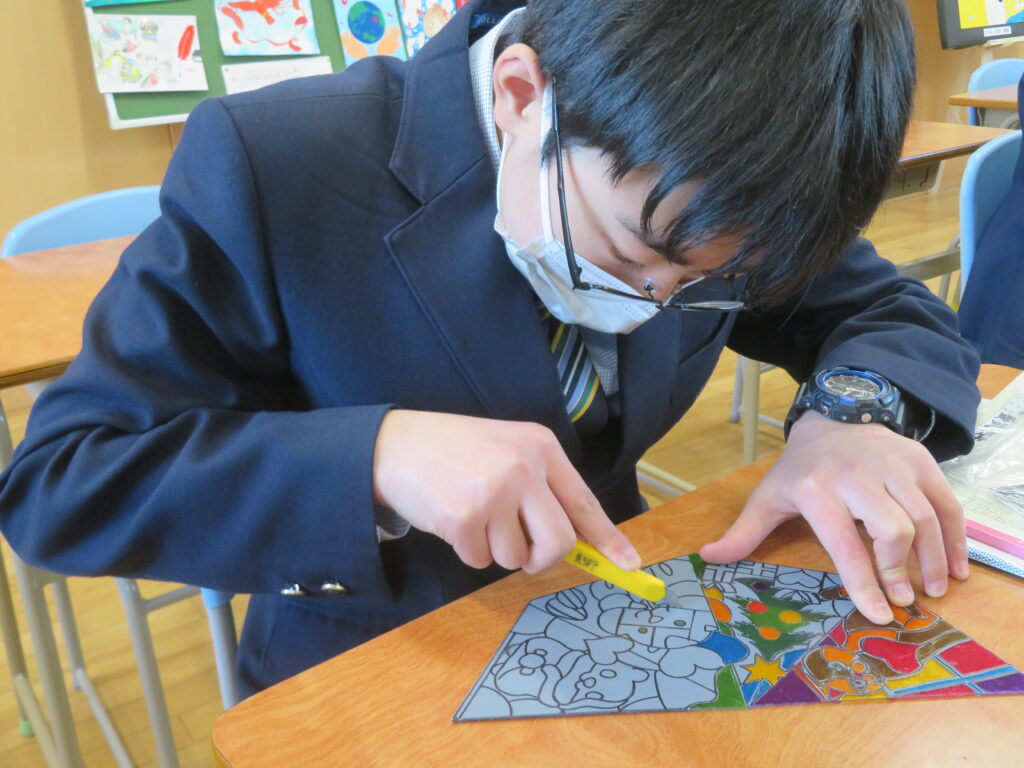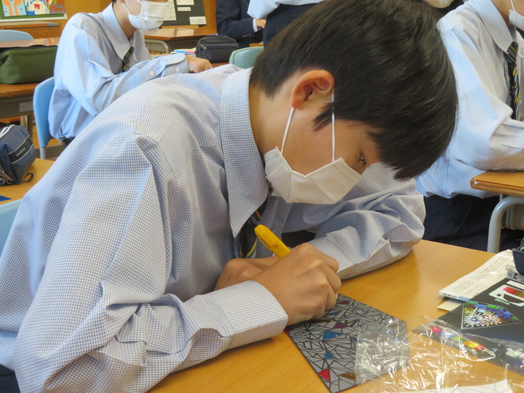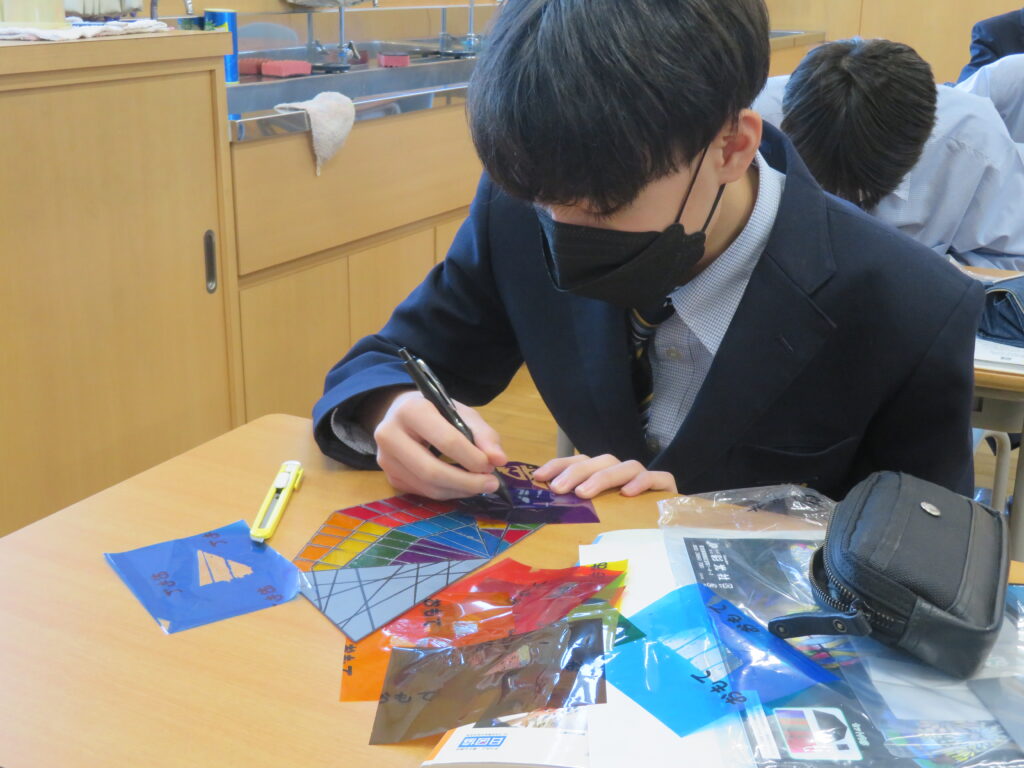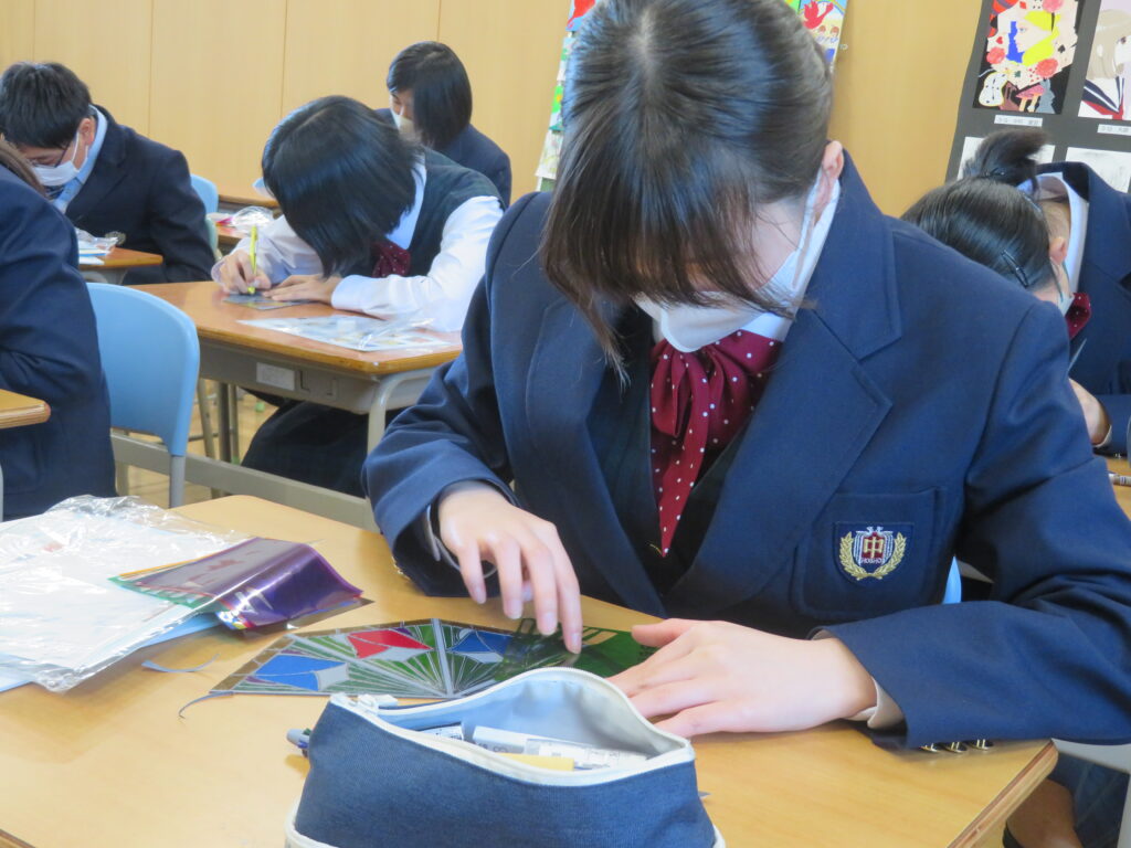 授業の後半では、以前から取り組んでいるステンドグラスの作成を進めていました。