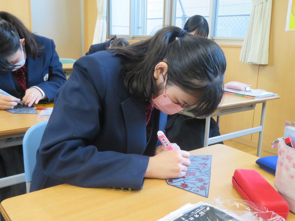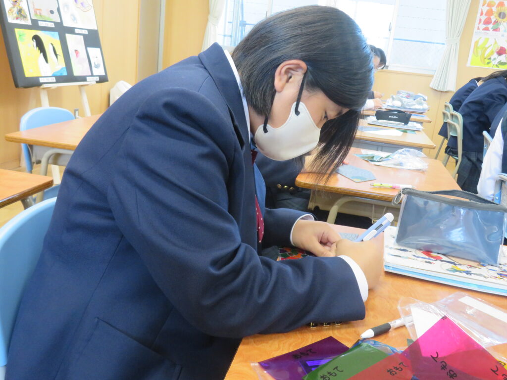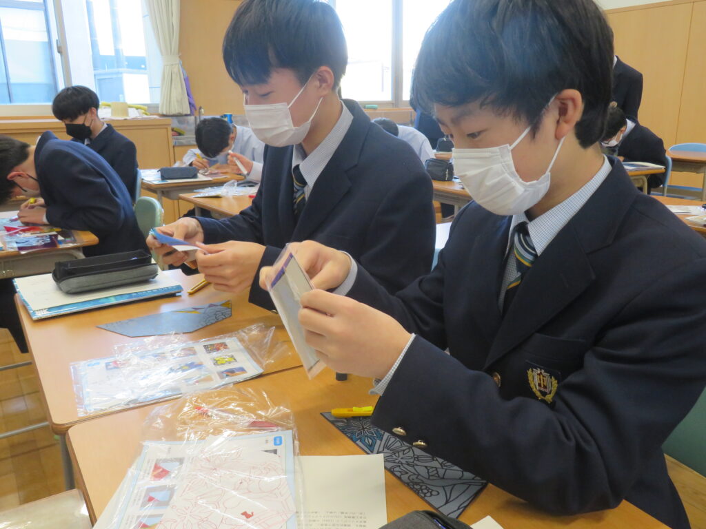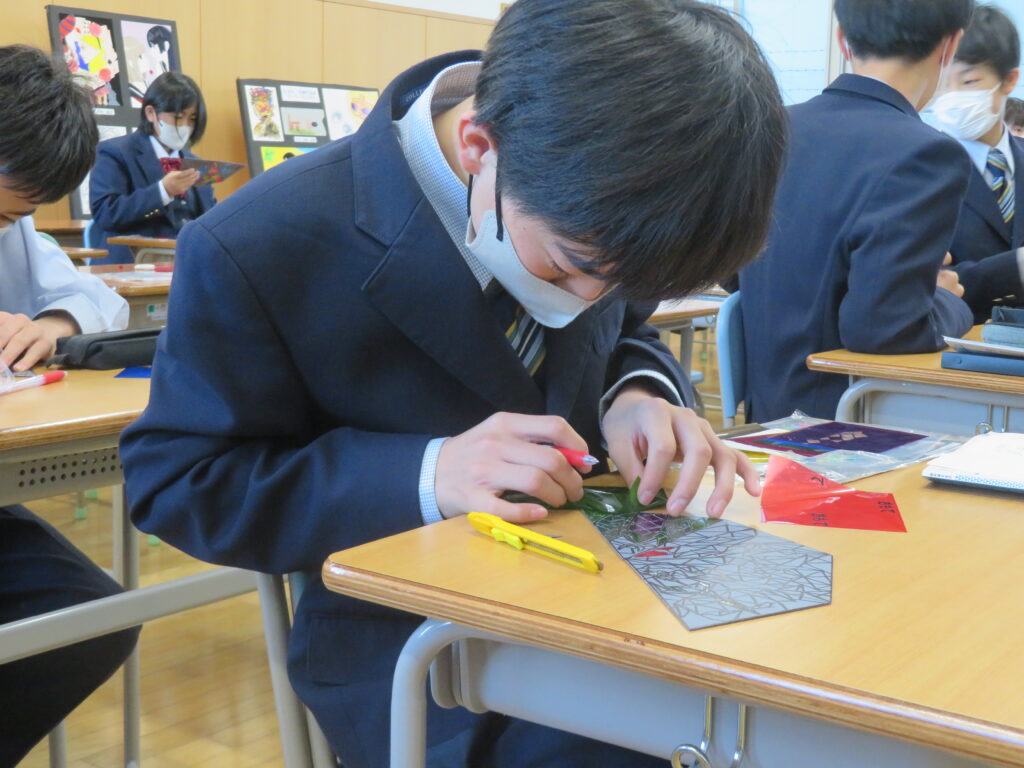 授業の後半では、以前から取り組んでいるステンドグラスの作成を進めていました。