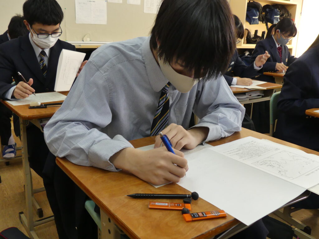 各学年とも今日は英語と社会科が行われ、3年生はそれに加え生物基礎が行われました。