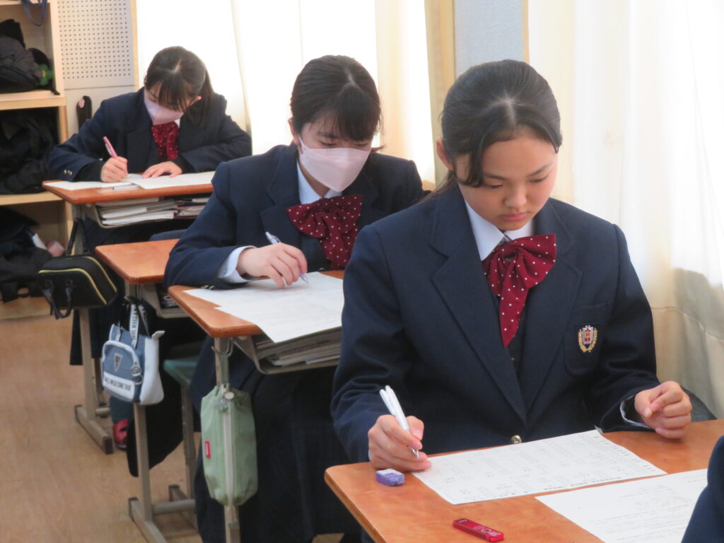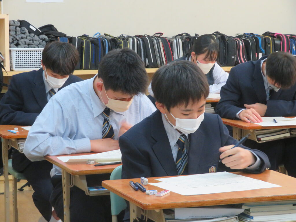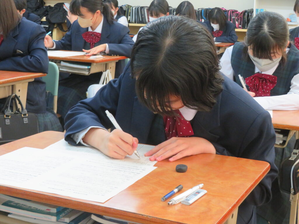 その後、最後の教科まで1つも妥協することなく、時間いっぱいテストに臨む姿はとても立派でした。 4日間にわたって行われた定期考査。日々の学習の成果を発揮することができたでしょうか。1人ひとりが目標を立て、一生懸命取り組んでいたと思います。