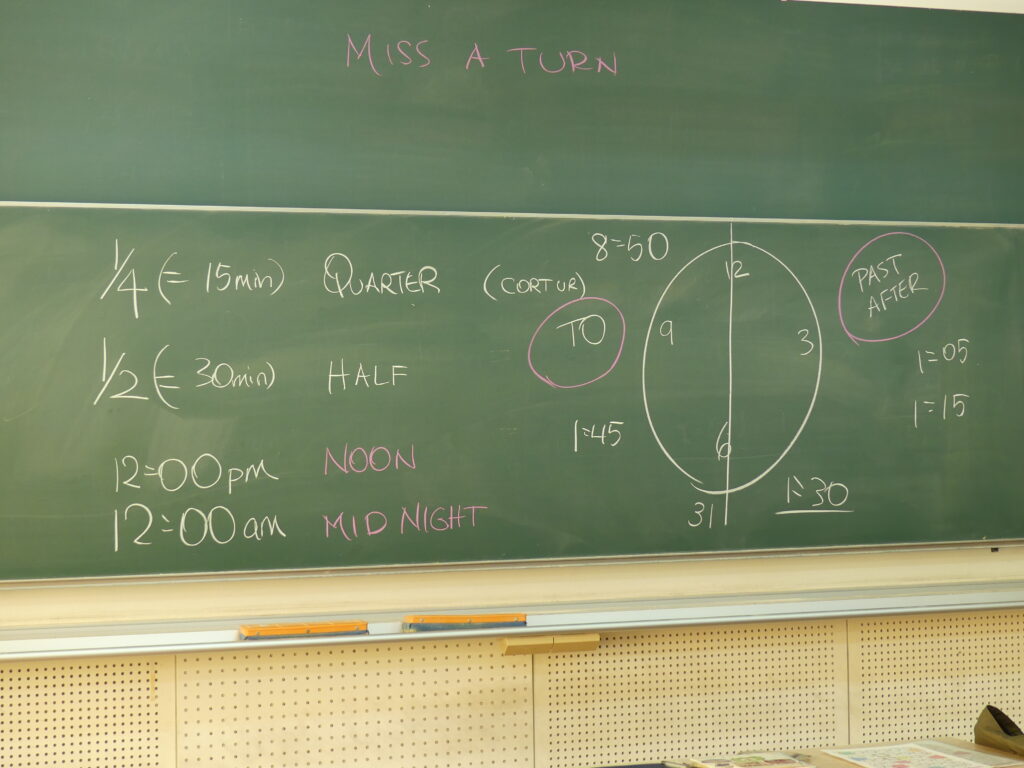 本時は、時間を英語でいう際の表現方法について学ぶことが目的でした。