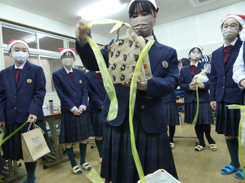 プレゼント交換です。誰からのプレゼントなのか考えながら袋のなかに入ったプレゼントを選んでいました。