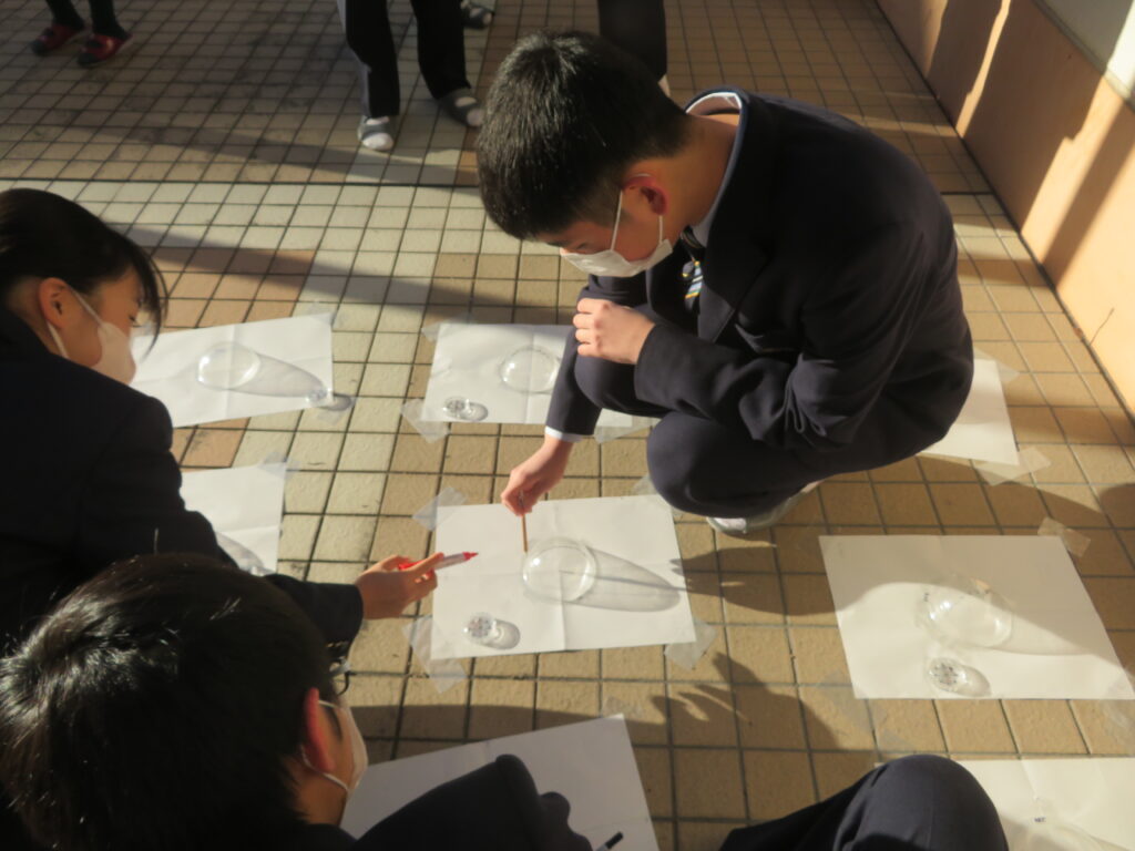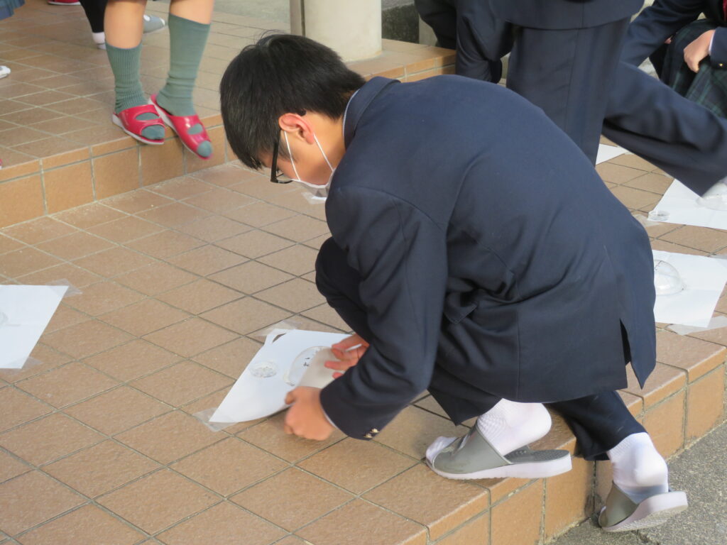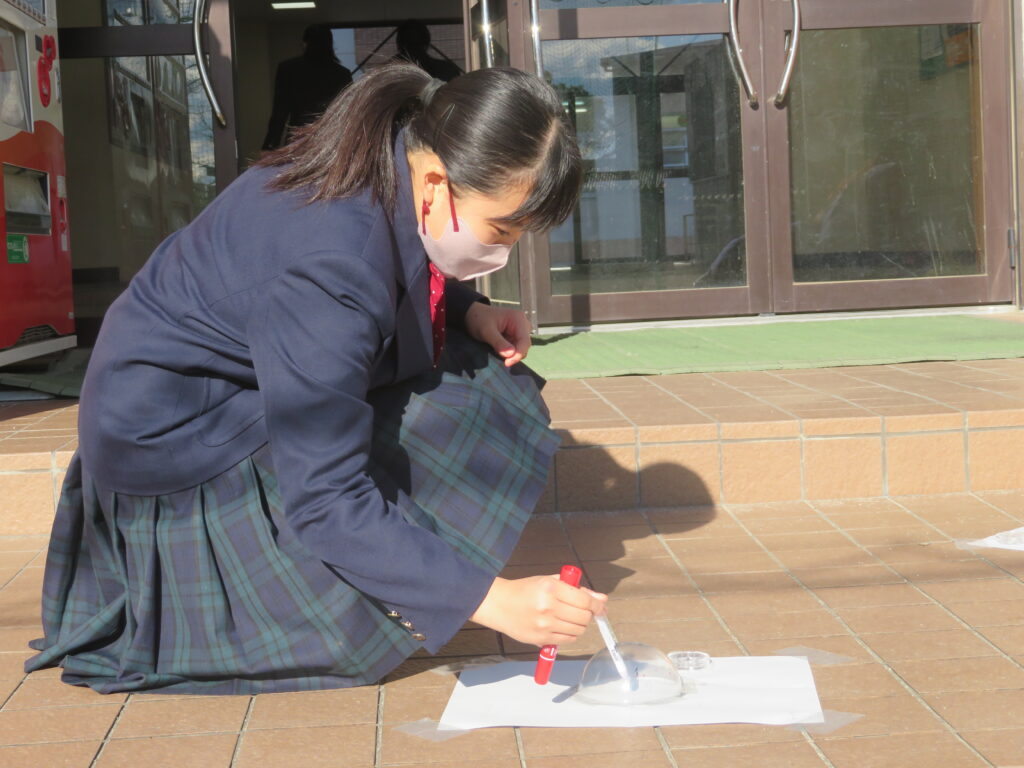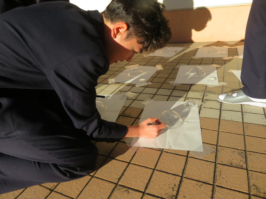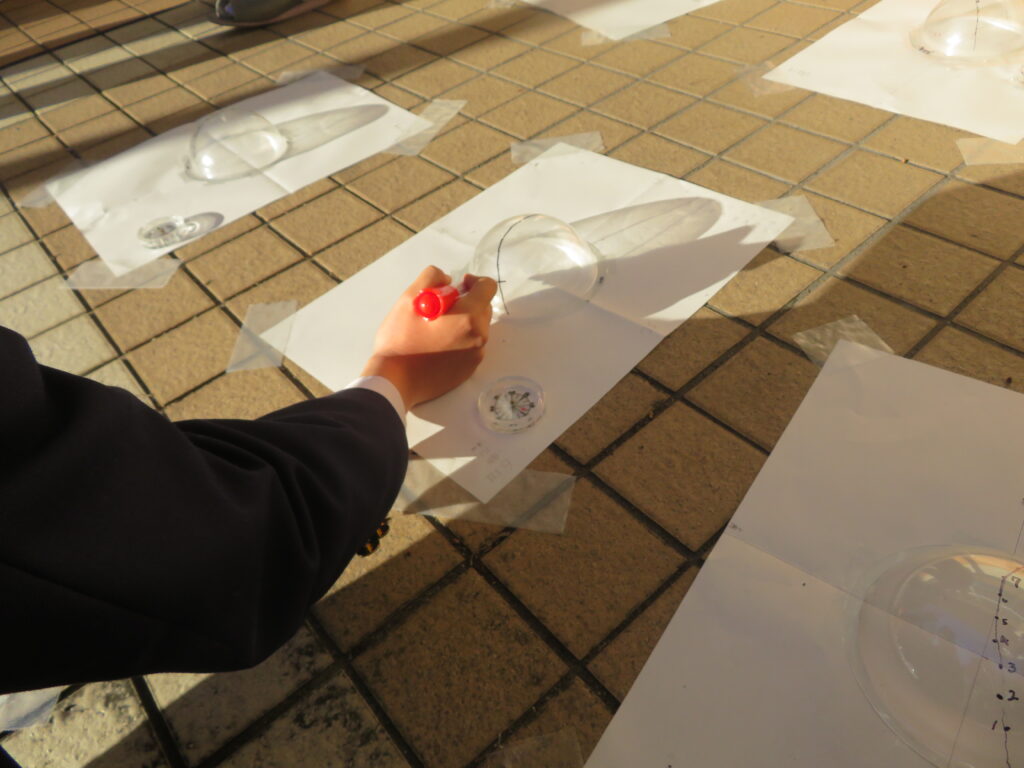 本日J2-Aの生徒たちは、1日を通して太陽の動き(理科の授業)を観測しました。同じ観測を7月にも実施しています。さて、どんな記録になるでしょうか。観測の様子を写真にて紹介します。