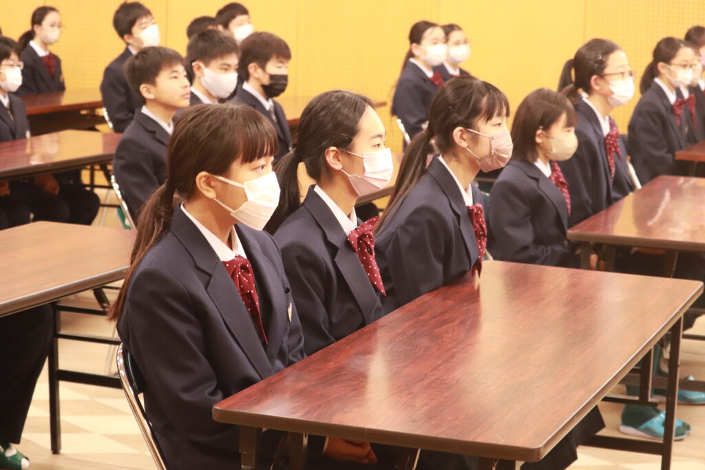 校長先生から、「3学期はまとめと準備の期間である」「当たり前と思っていることは当たり前ではない」といった言葉をもらい、生徒たちはこれから始まる3学期に向けて気を引き締めている様子でした。