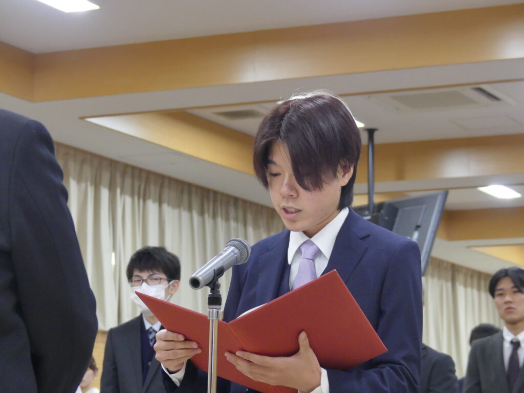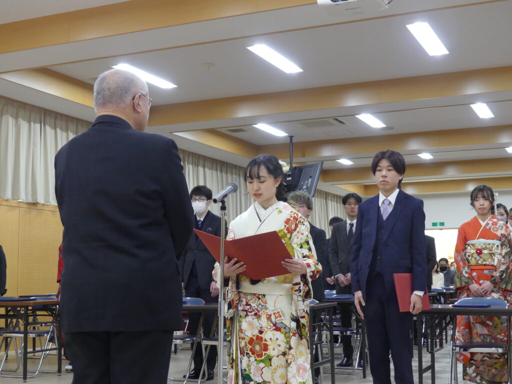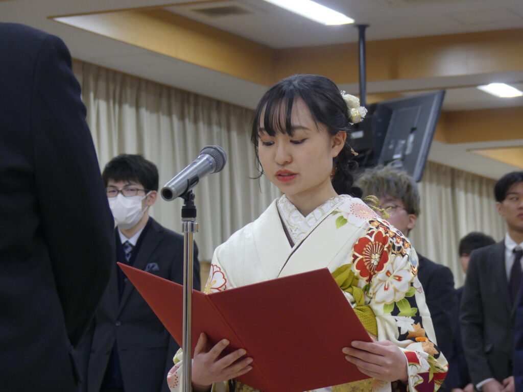 成人の誓いの言葉を長友悠悟さんと加藤愛望さんが行いました。これまでお世話になった方々への感謝、そしてこれかからの抱負を述べてくれました。