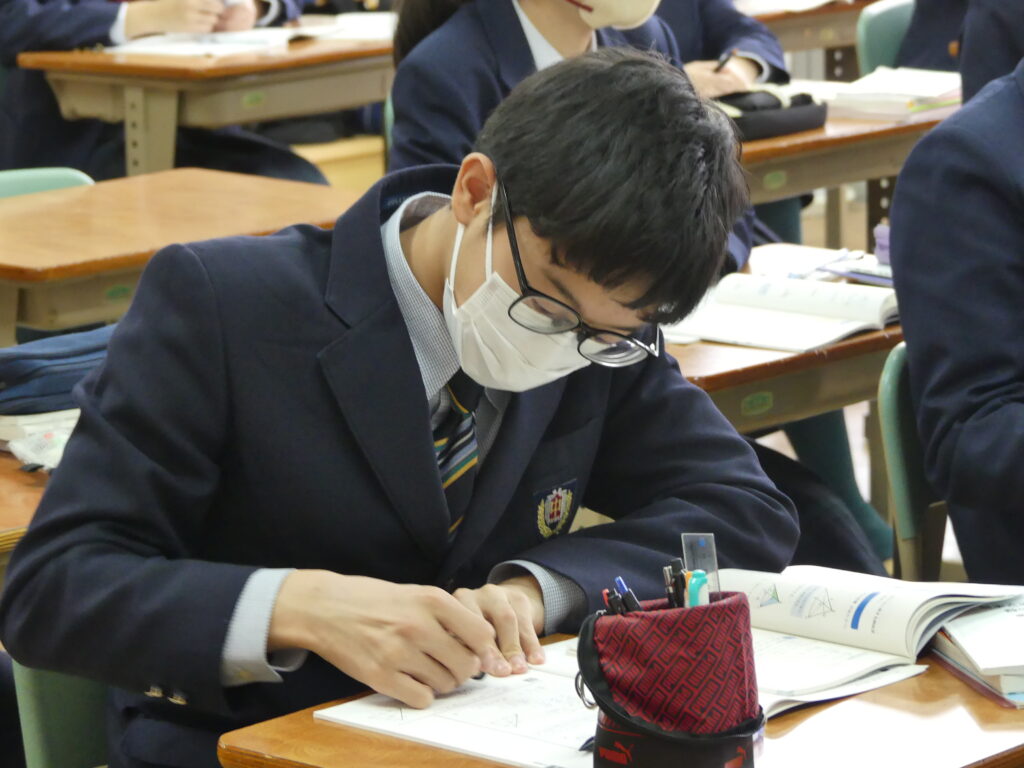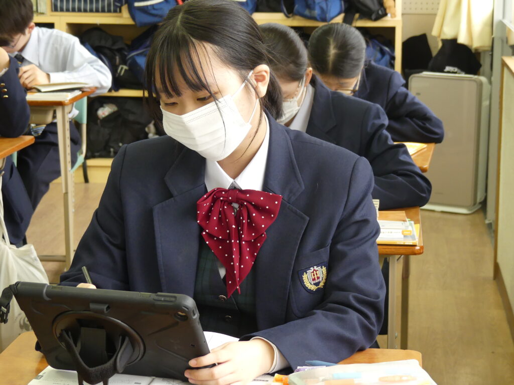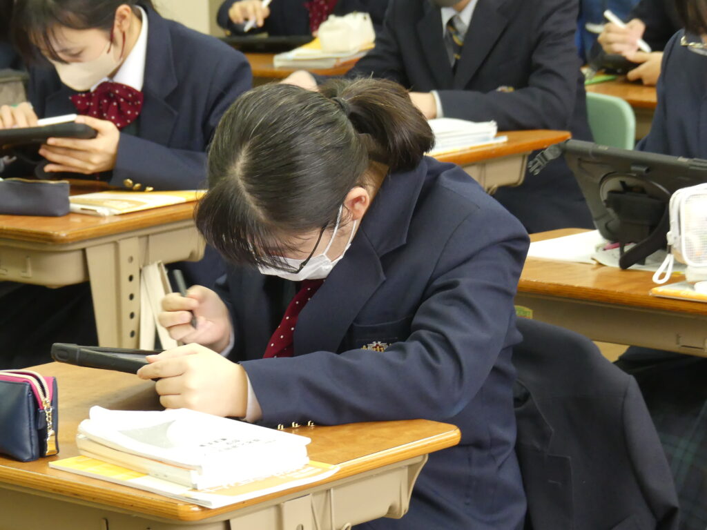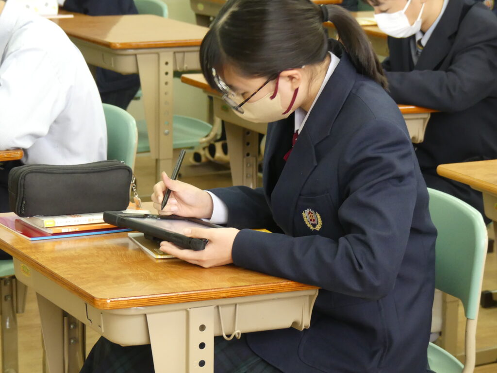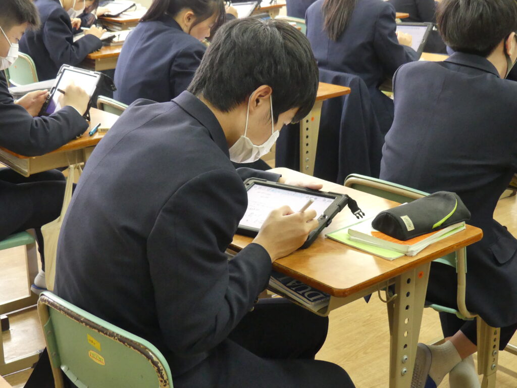 各クラスとも集中して取り組んでおり、中萬先生のクラスではタブレットを使って解答を交換する様子も見られました。