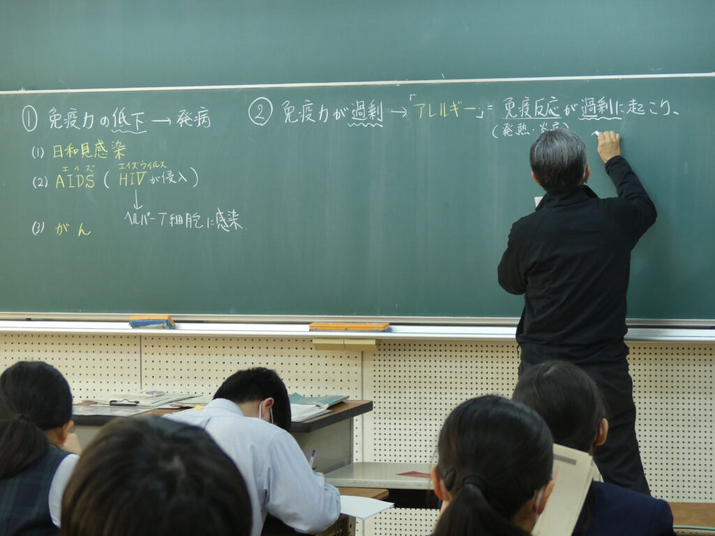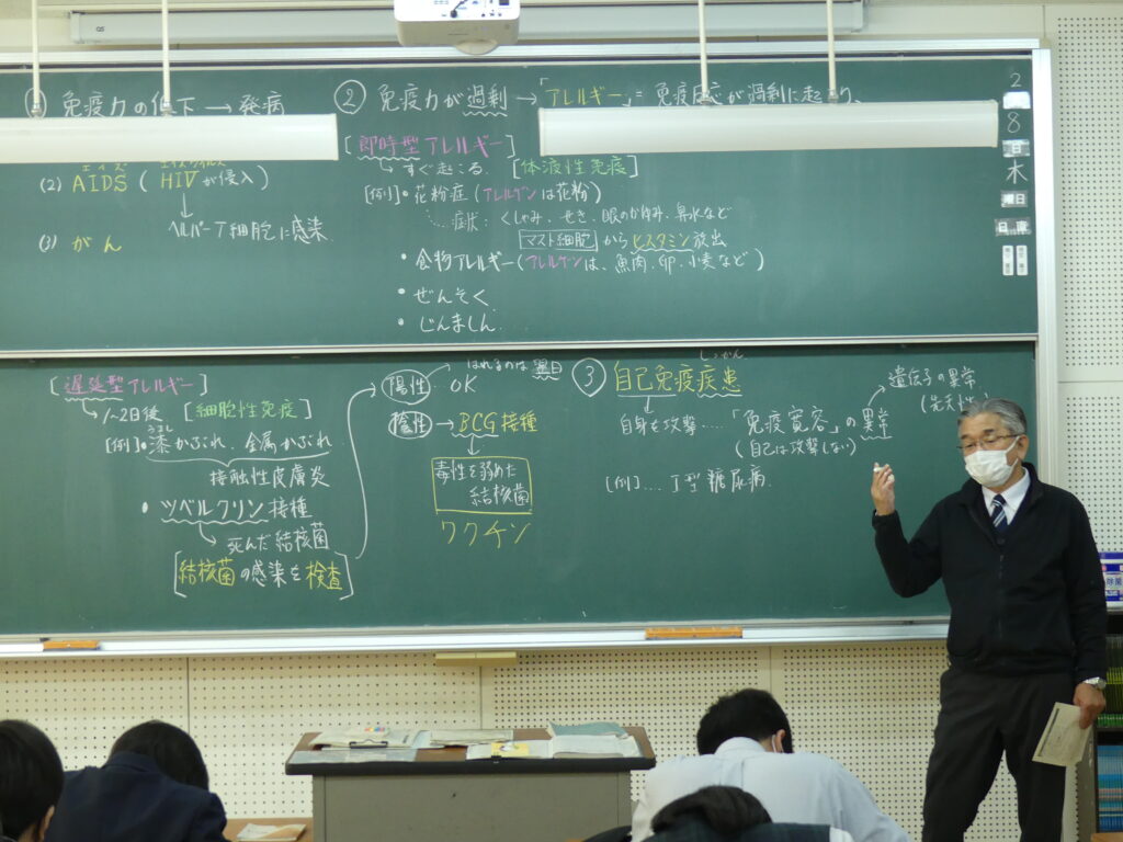 J3生の生物基礎では、アレルギーのしくみと作用について学習していました。