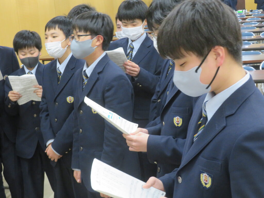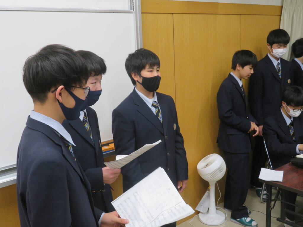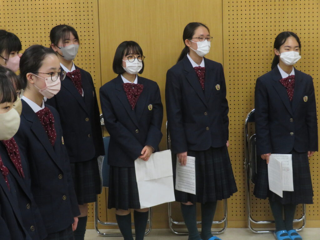先輩方にとって良い思い出となる修了証書授与式にするために、どんな思いや態度で臨むと良いか考えながら、合唱の練習に取り組んでほしいと思います。