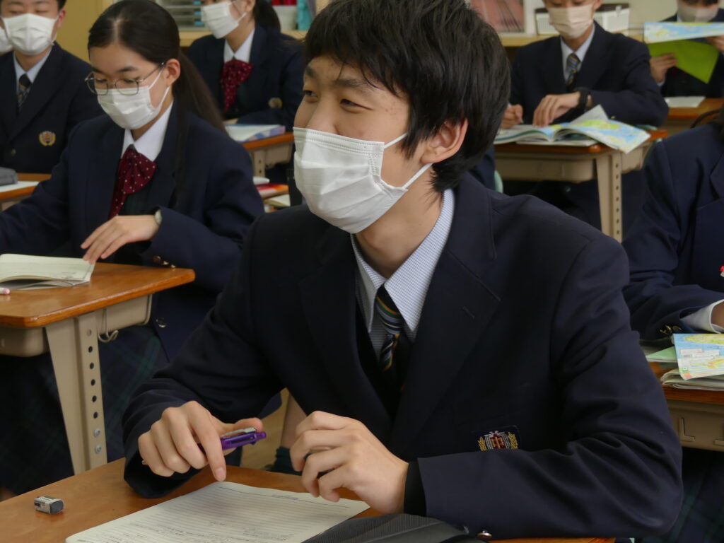 本日のJ3生の授業は J3Aでは地理、J3Bでは公民と両教室とも社会科の授業が行われていました。