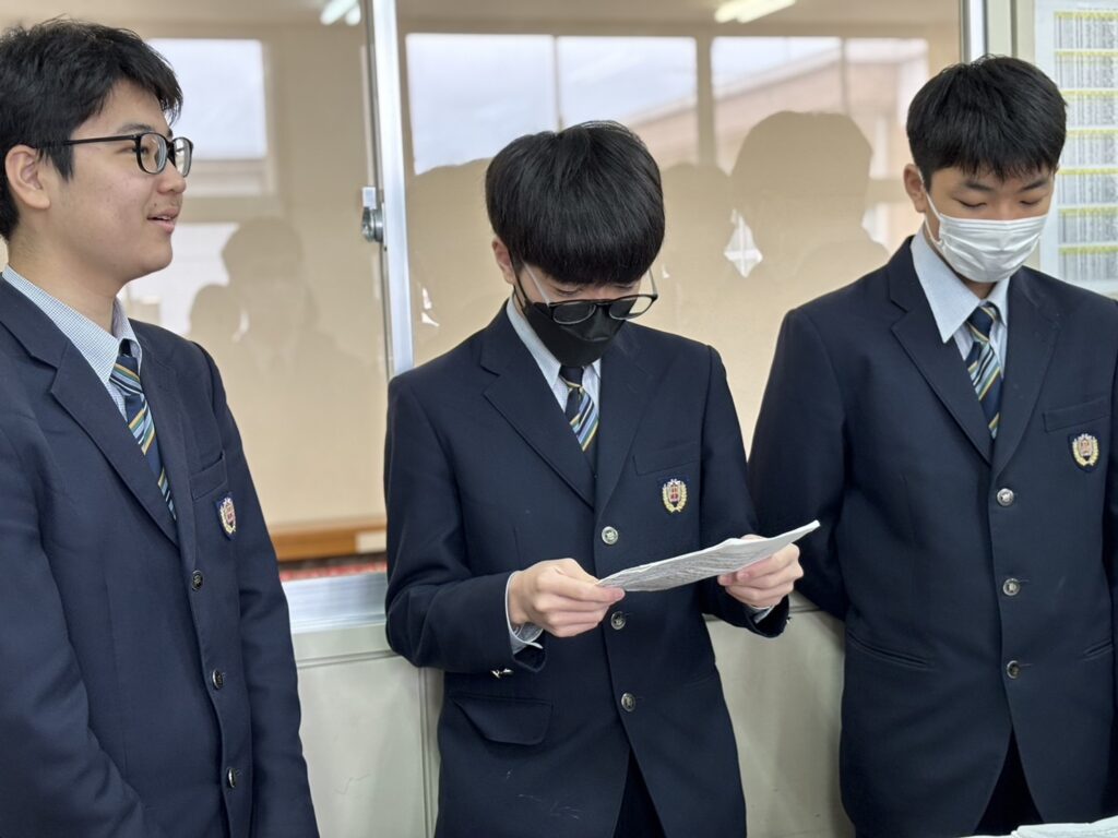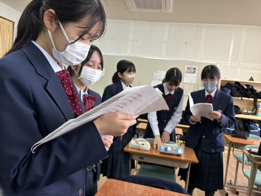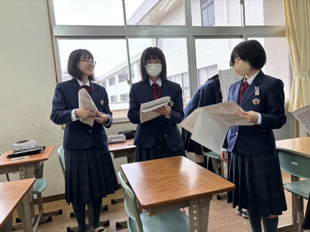 合唱の練習が始まった当初は、うまく音がとれなかったり、隣のパートに釣られてしまったりとたくさんの苦労を味わい、決して順風満帆な合唱練習ではありませんでした。しかし、生徒達は自分たちで音源をつくり、昼休みや放課後などたくさんの時間を費やしてきました。その努力が修了証書授与式当日の演奏に最高の形で実を結んでくれることを心から願っています。また、その一生懸命な思いが聴いてくれる後輩達や保護者の方へ届いてくれるといいなと思います。