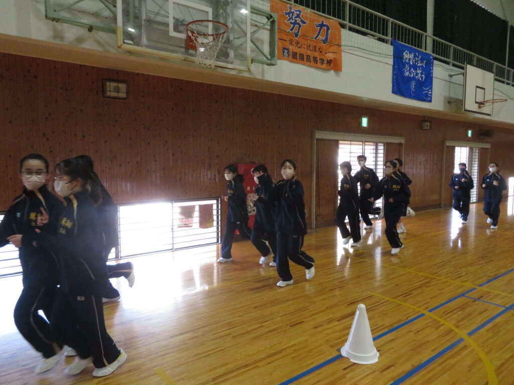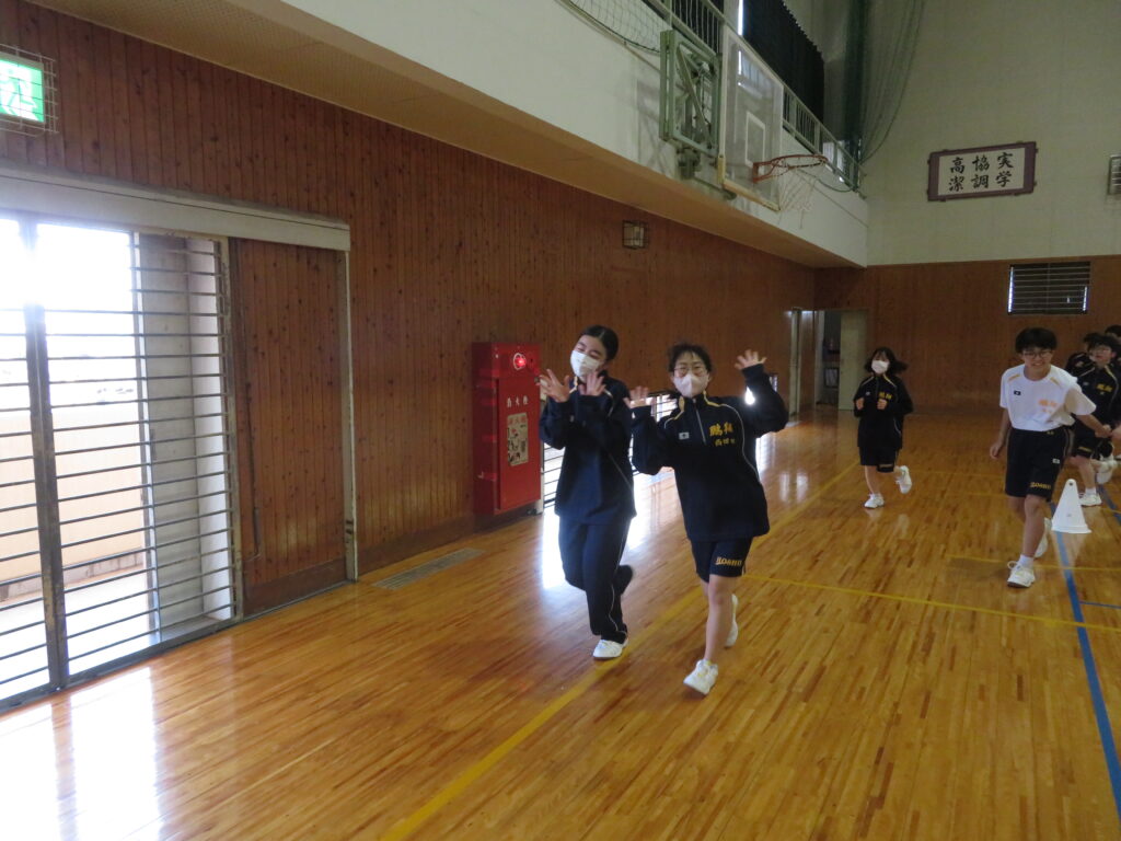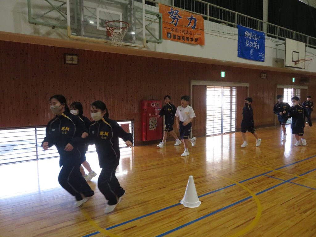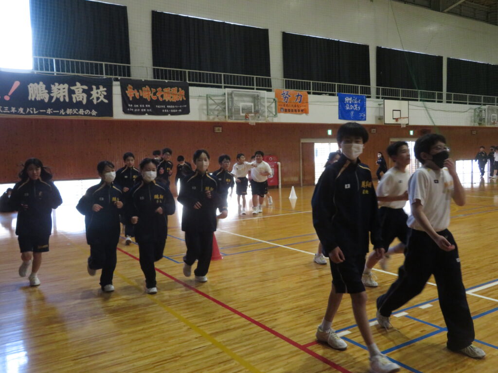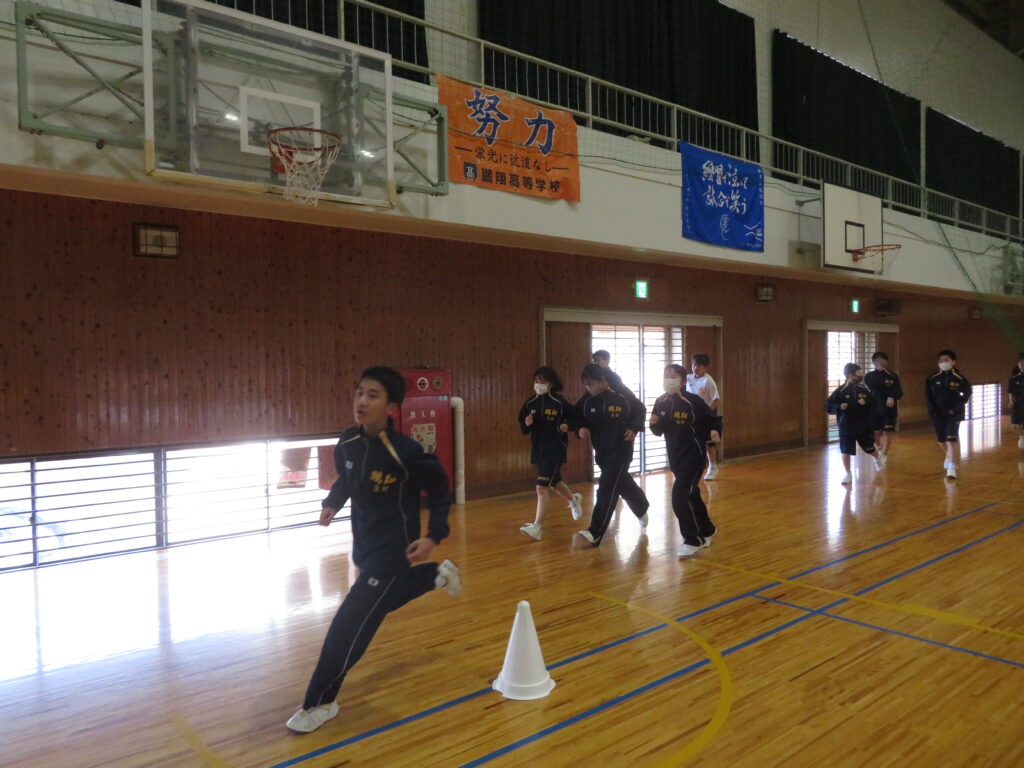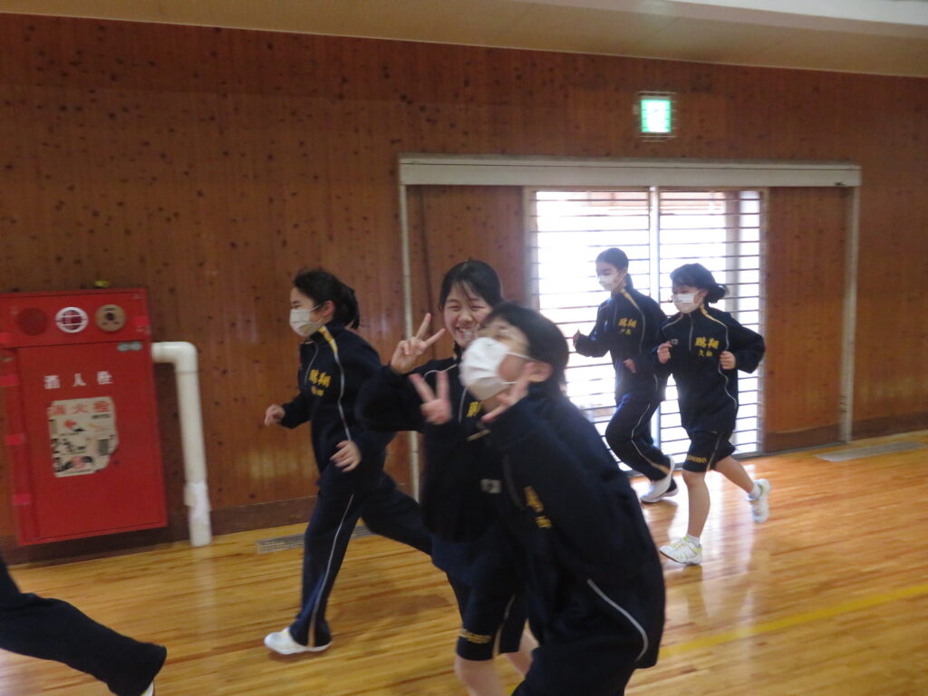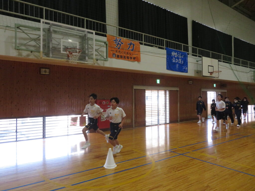 明日のマラソン大会に向けて、J1生は最後の時間走に挑戦していました。この写真は、10分間走の様子です。