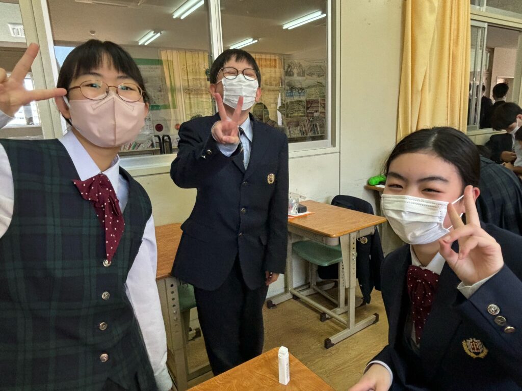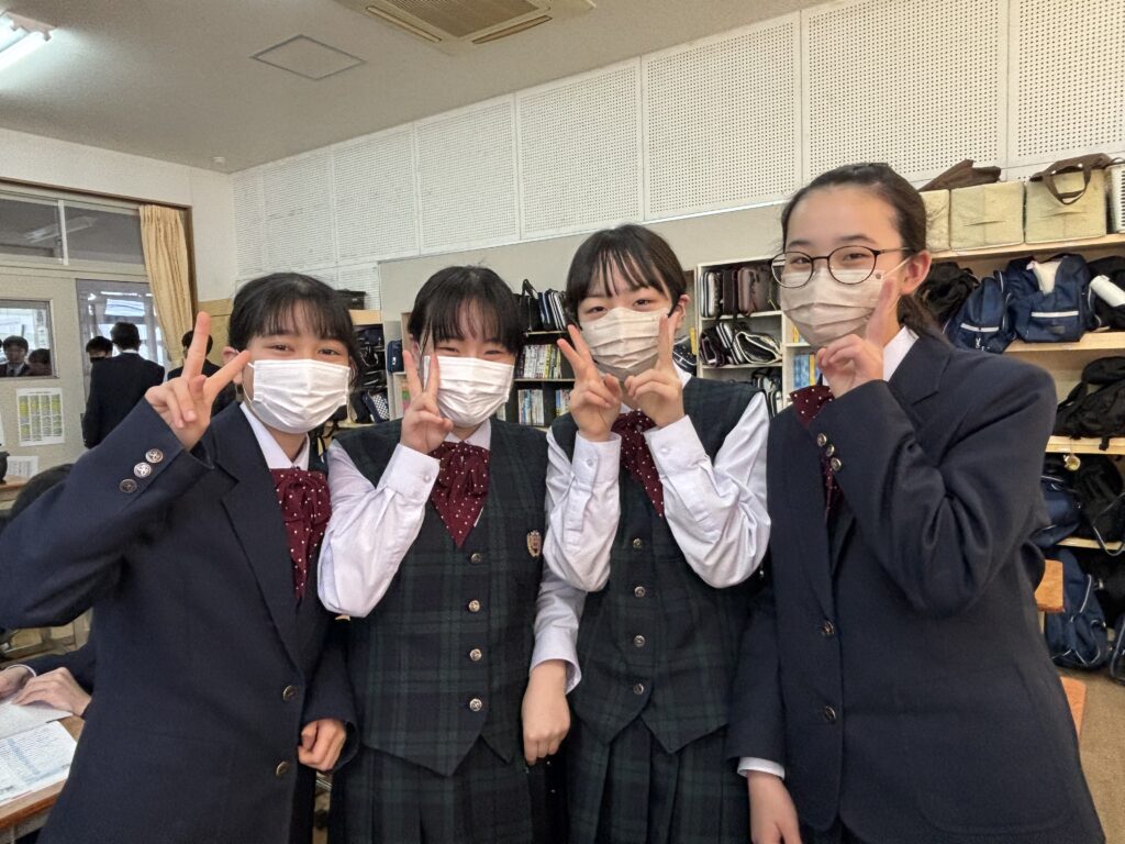 さて、第3学期修了式まで残り3日となりました。校舎内は毎日、きらきらとたくさんの笑顔が溢れ、カメラを向けると、いつも駆け寄ってきてくれます。鵬翔中生全員が今の学年を笑顔で終えることができますように!